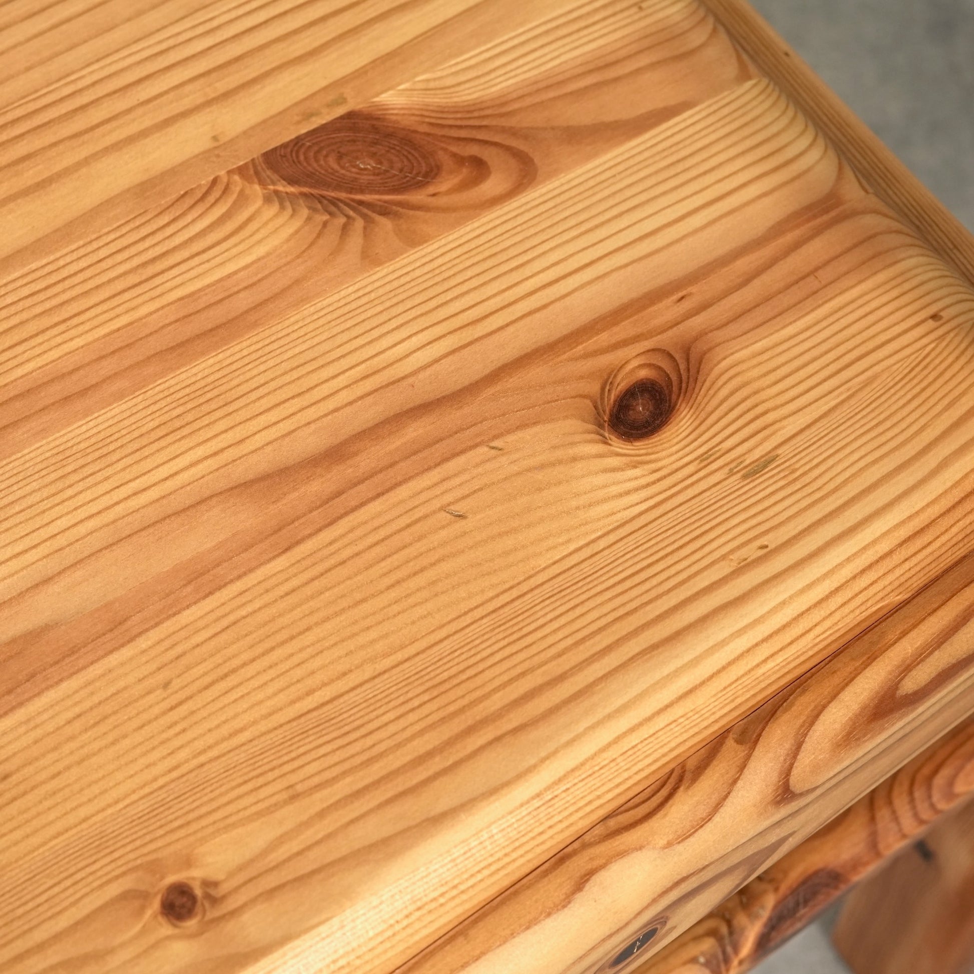 高品質のパイン無垢材を贅沢に使用しており、角のない丸みを帯びたフォルムはどの角度から見ても絵になる流石のデザインです。