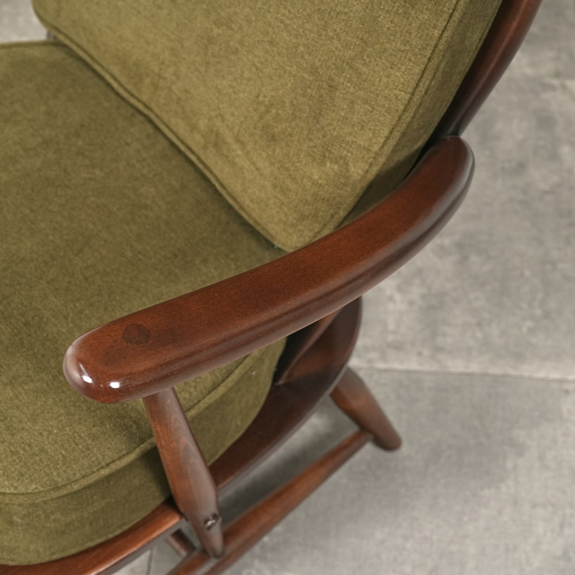 人気の高いERCOLのチェアたちと同様に背もたれやアームの流れるような美しい曲線が魅力的で、現代の住宅に違和感なく馴染む秀逸なデザイン。