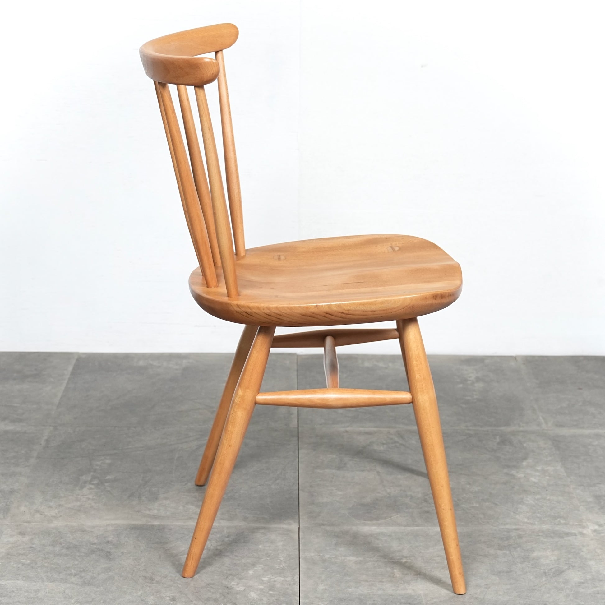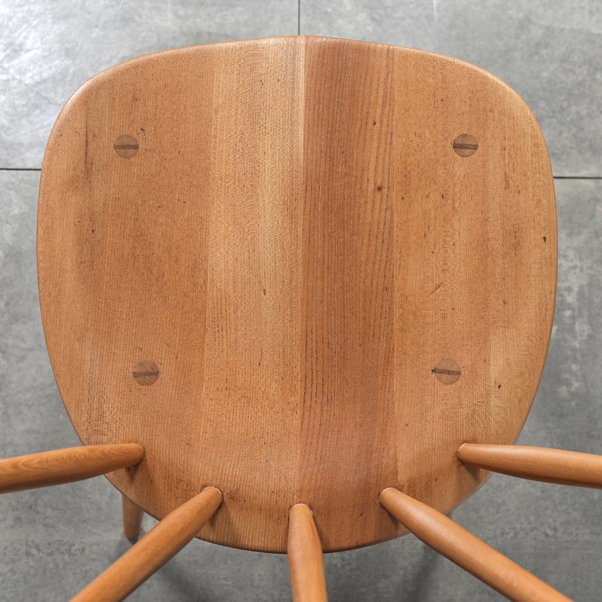 ファンバックチェアは背もたれの笠木が弓に似ていることから"ボウトップチェア"とも呼ばれ、数あるERCOLチェアの中でも比較的シンプルなデザインで現代の住宅に違和感なく馴染んでくれるアイテムです。