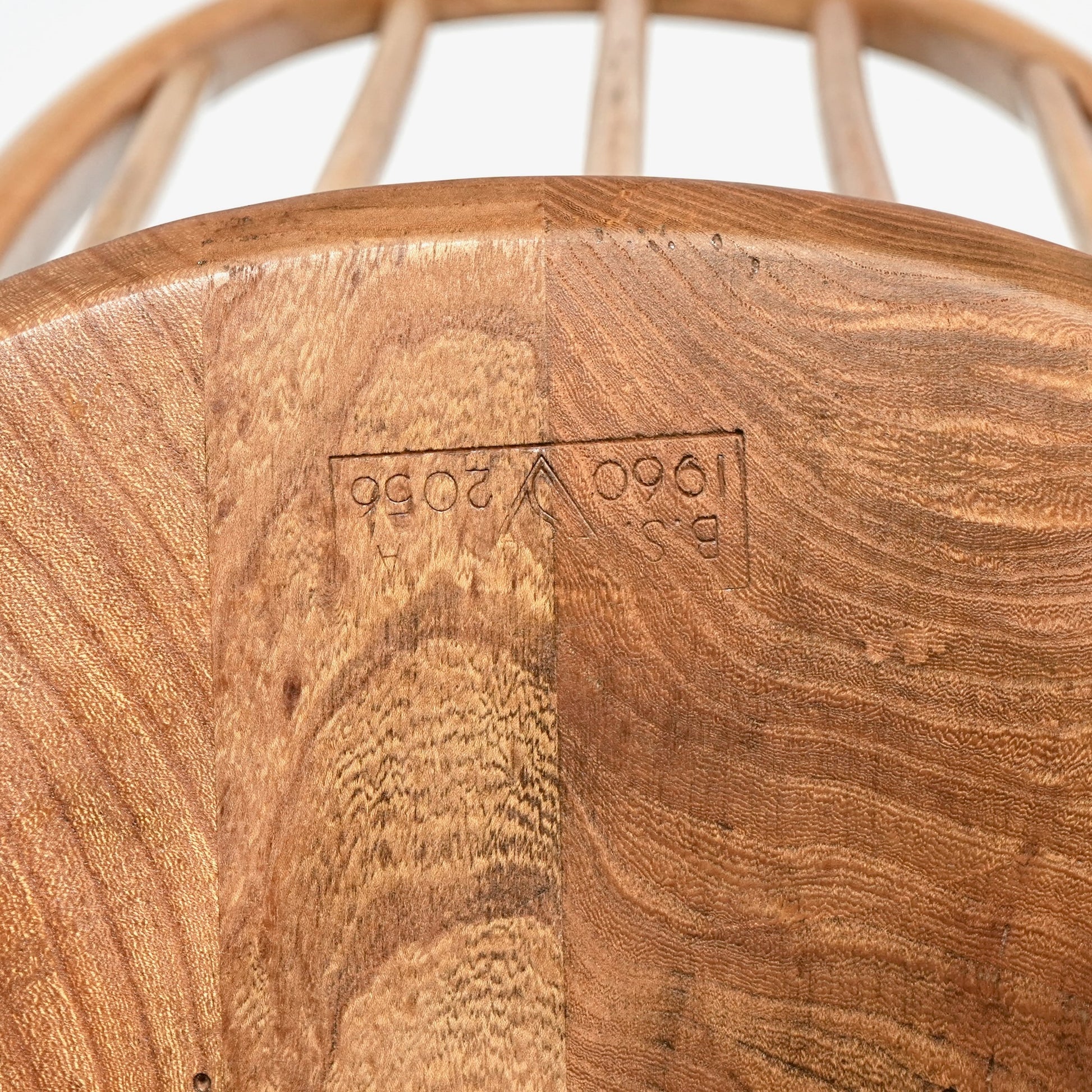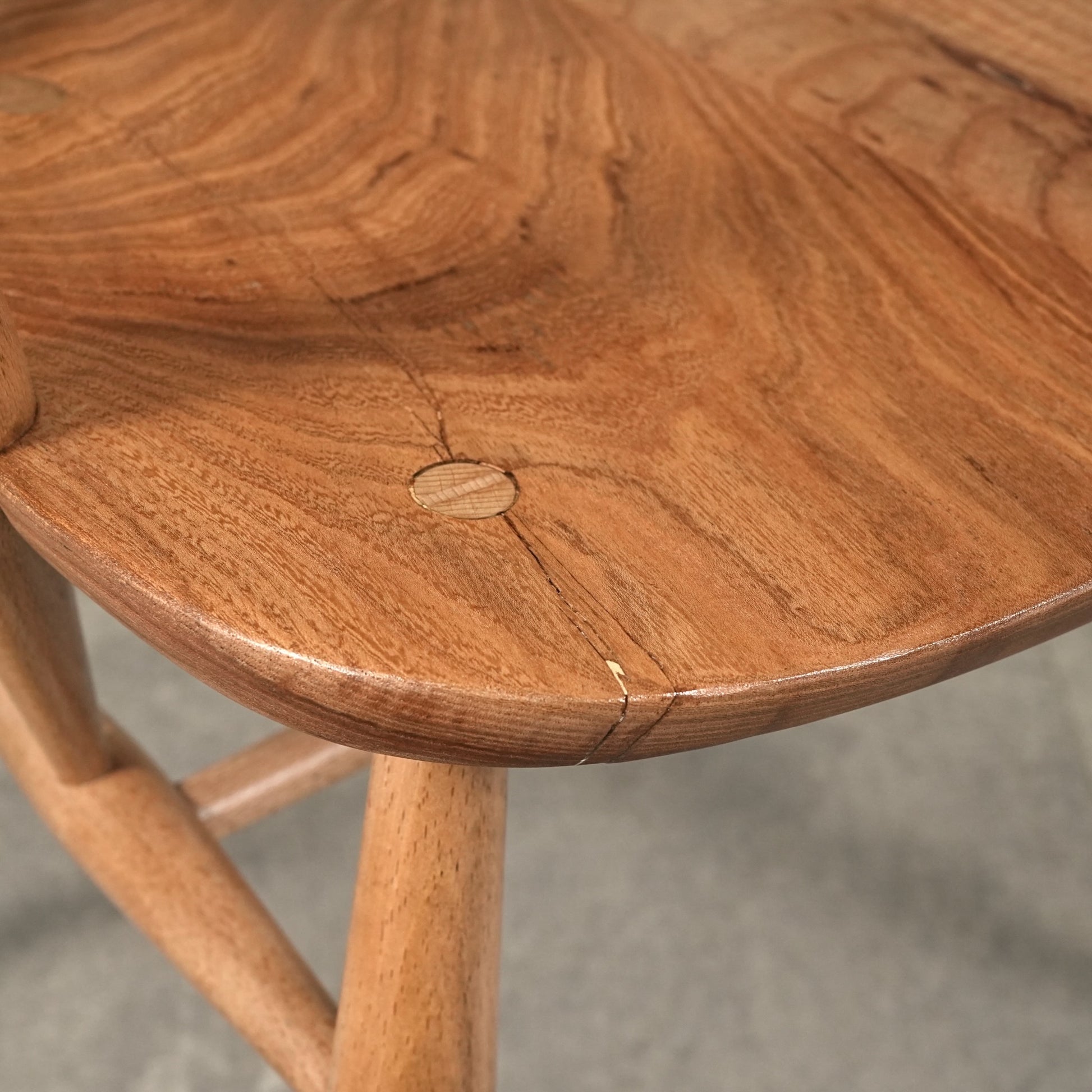 ・座面に補修跡があり、座面裏には割れ止め金具(波釘)を埋め込んでいます。