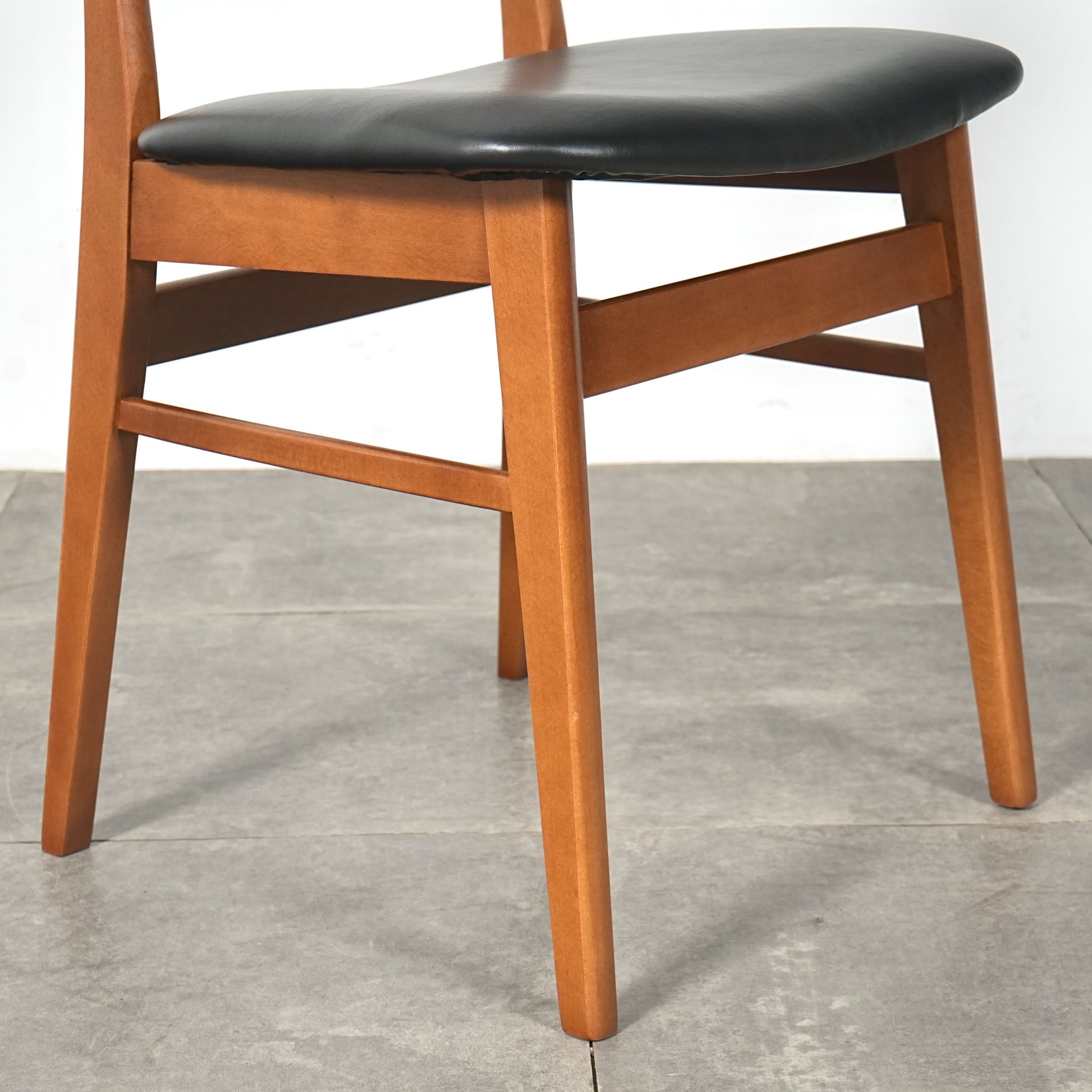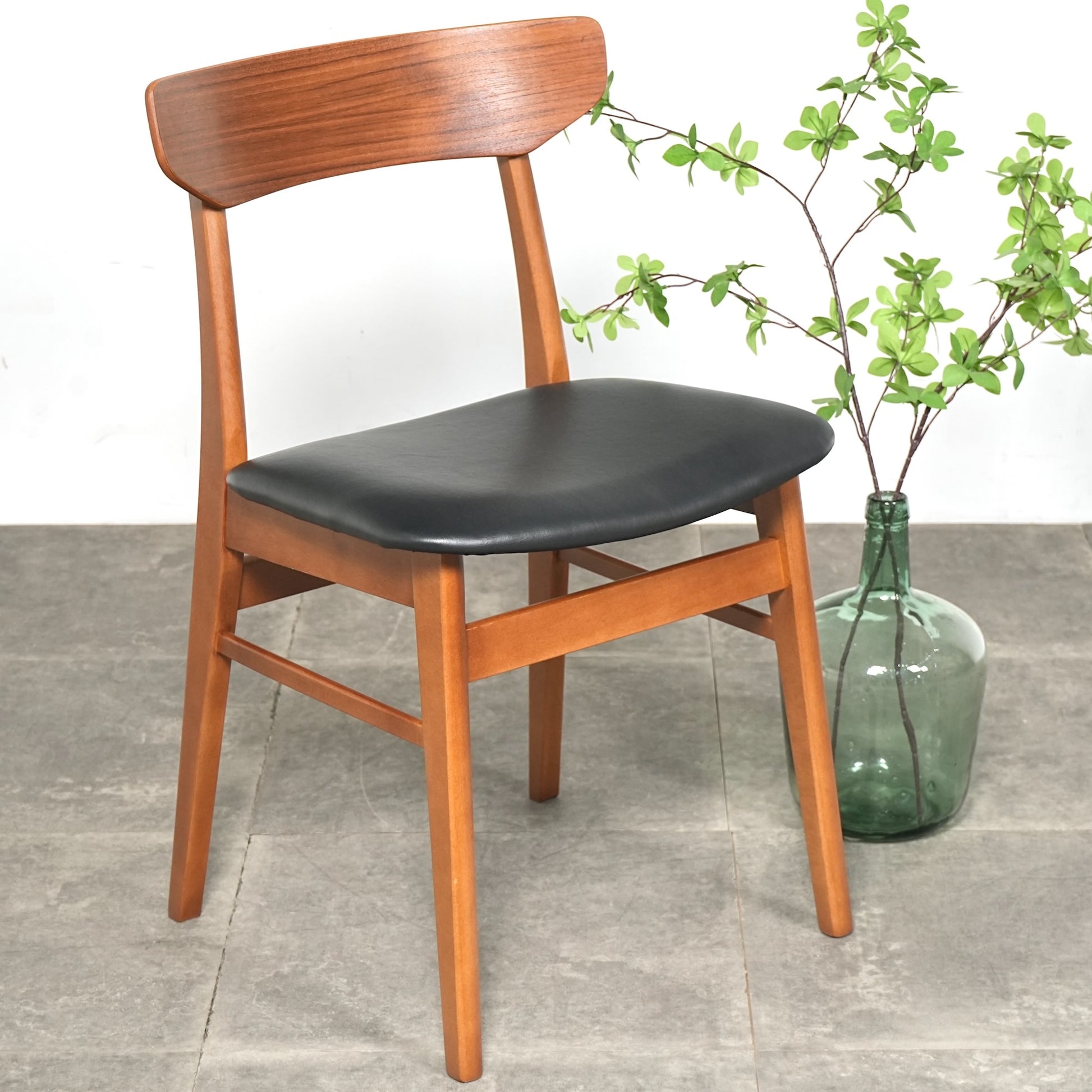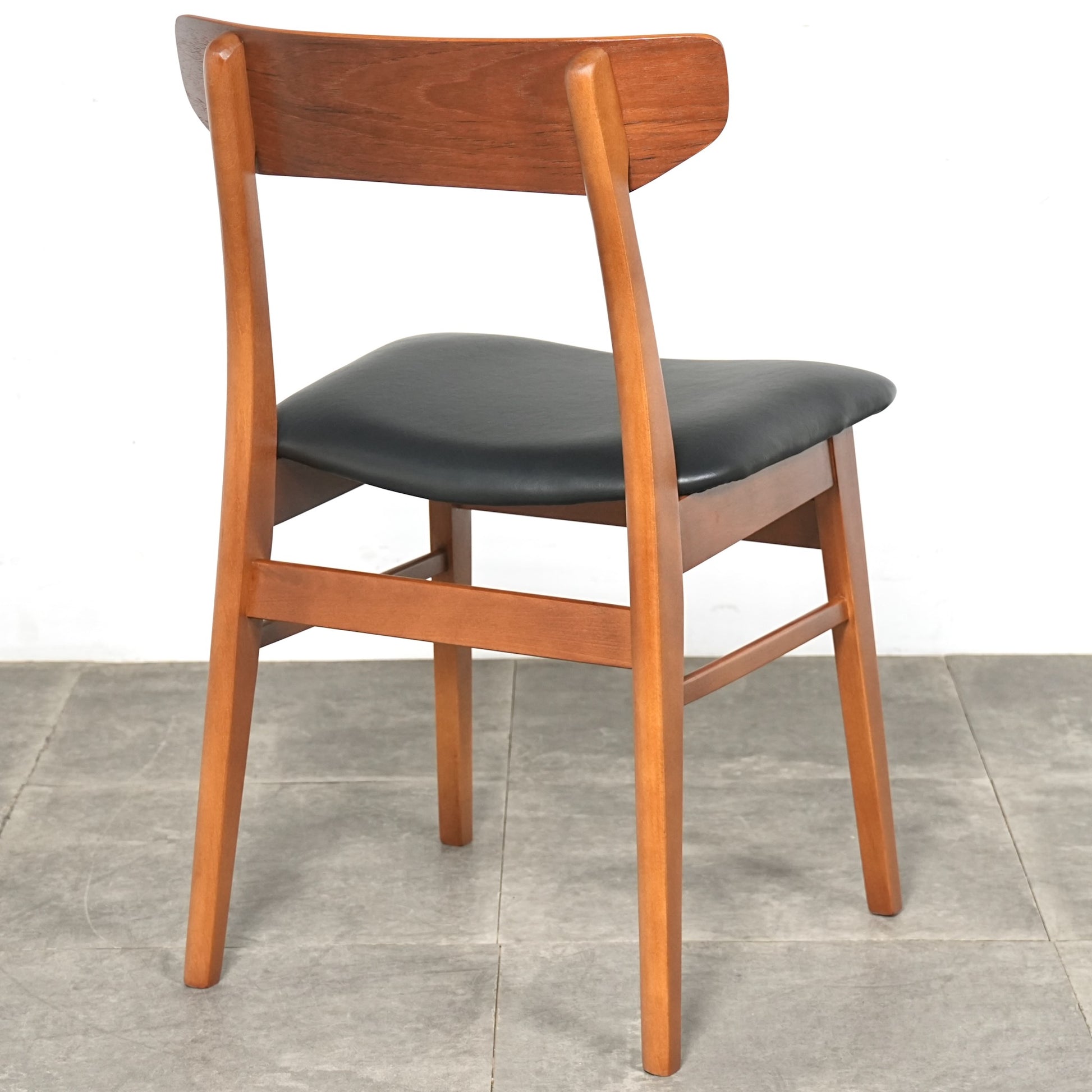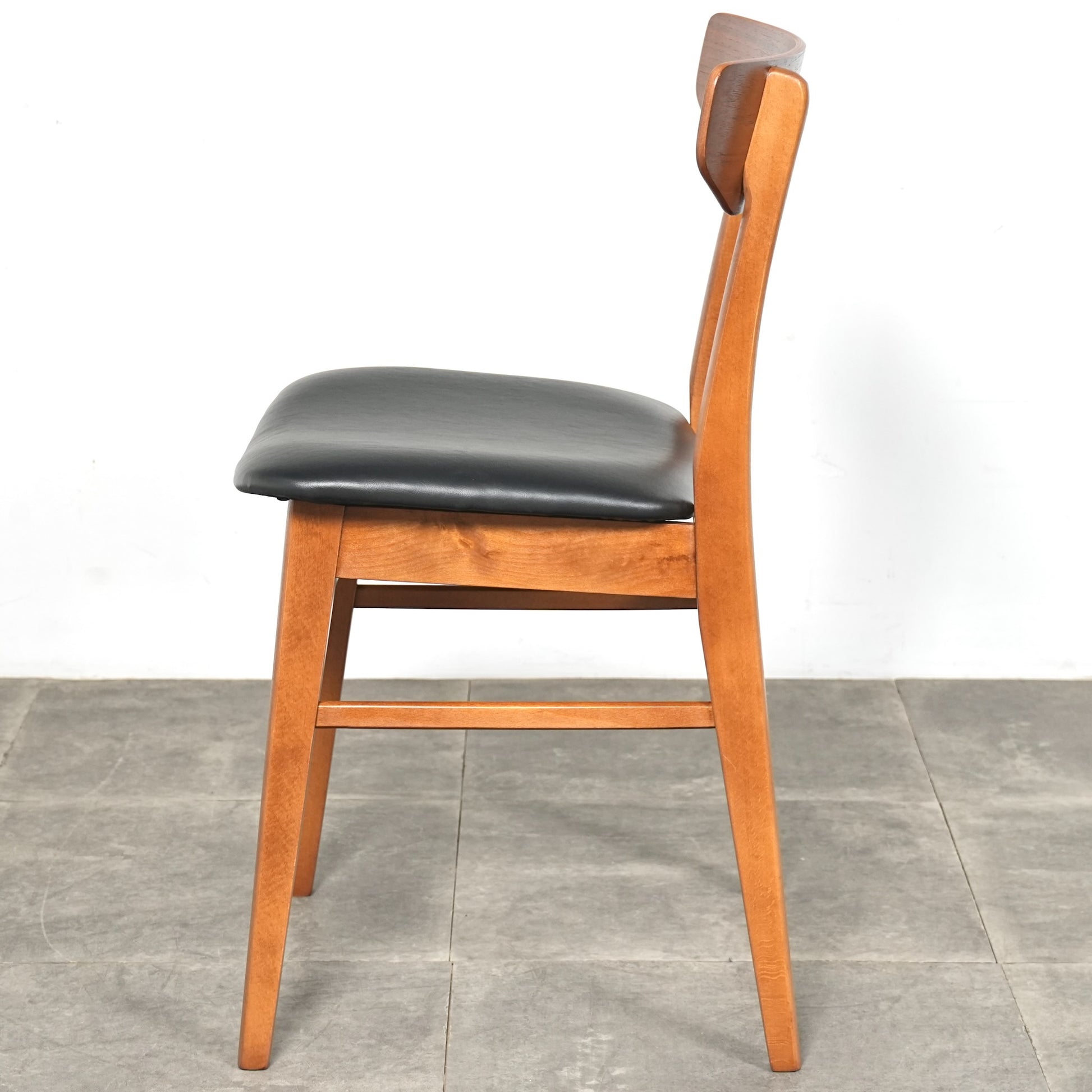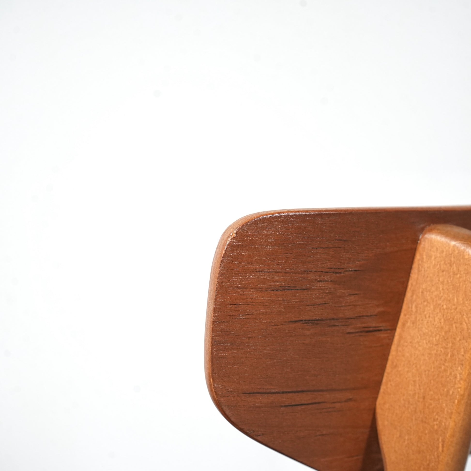 背もたれのチーク材×フレームのビーチ材という組み合わせが絶妙なコントラストを生み出しており、背もたれのさり気ないデザインも良いアクセントとなっています。
