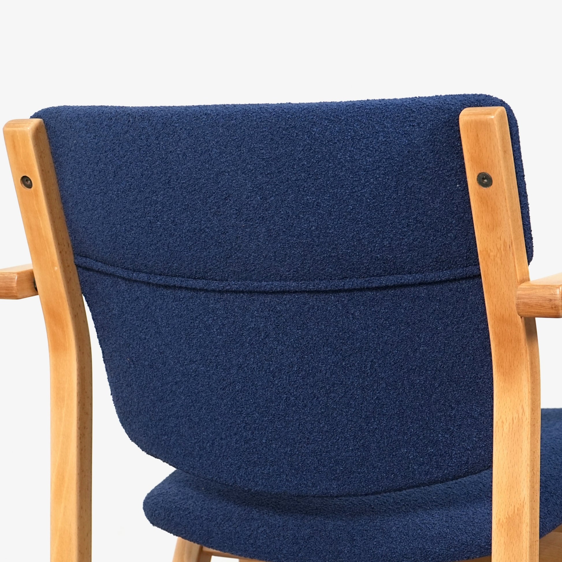曲木の特性を最大限活かしたアームと脚部の美しい構造は、軽やかでありながらも耐久性にも優れたデザイン。