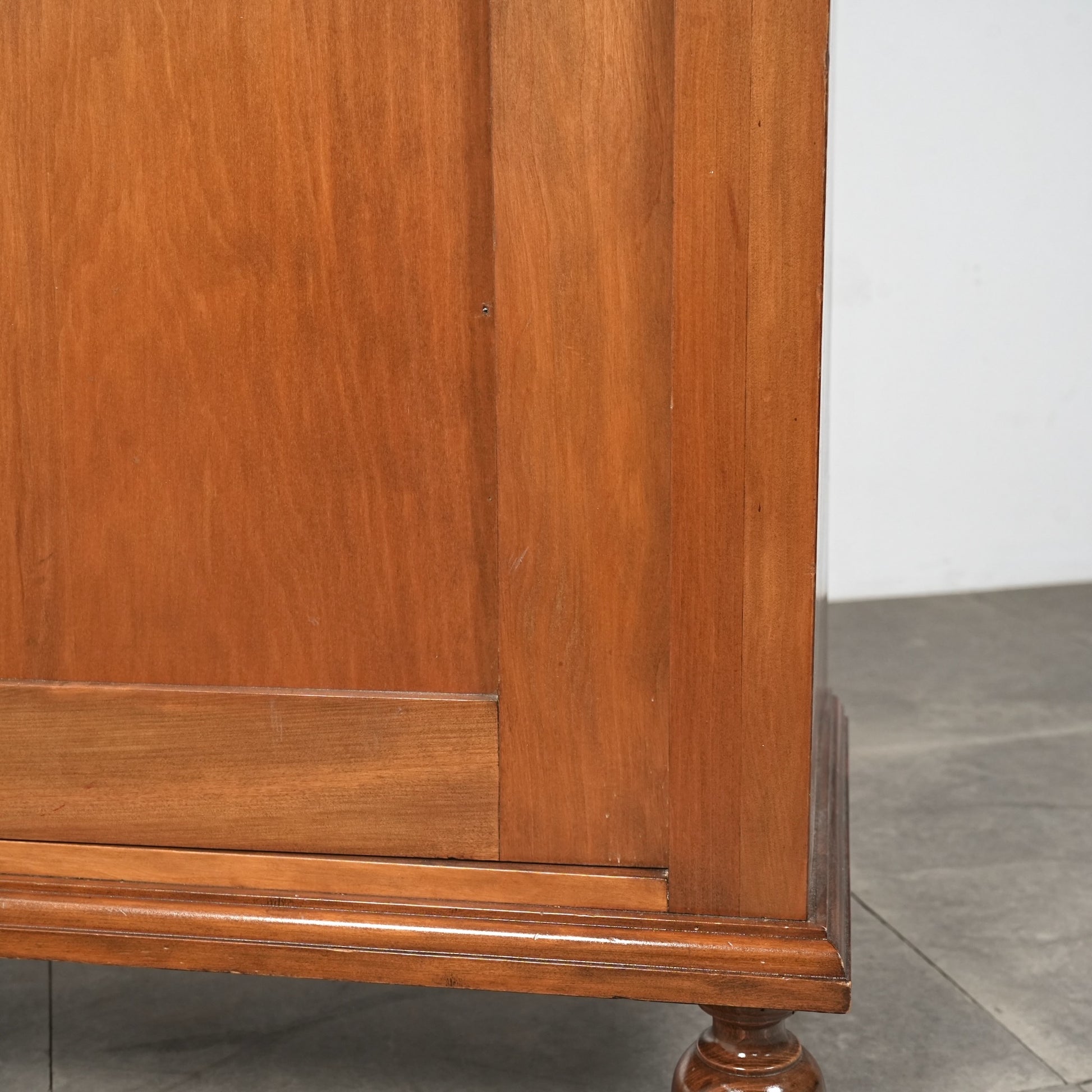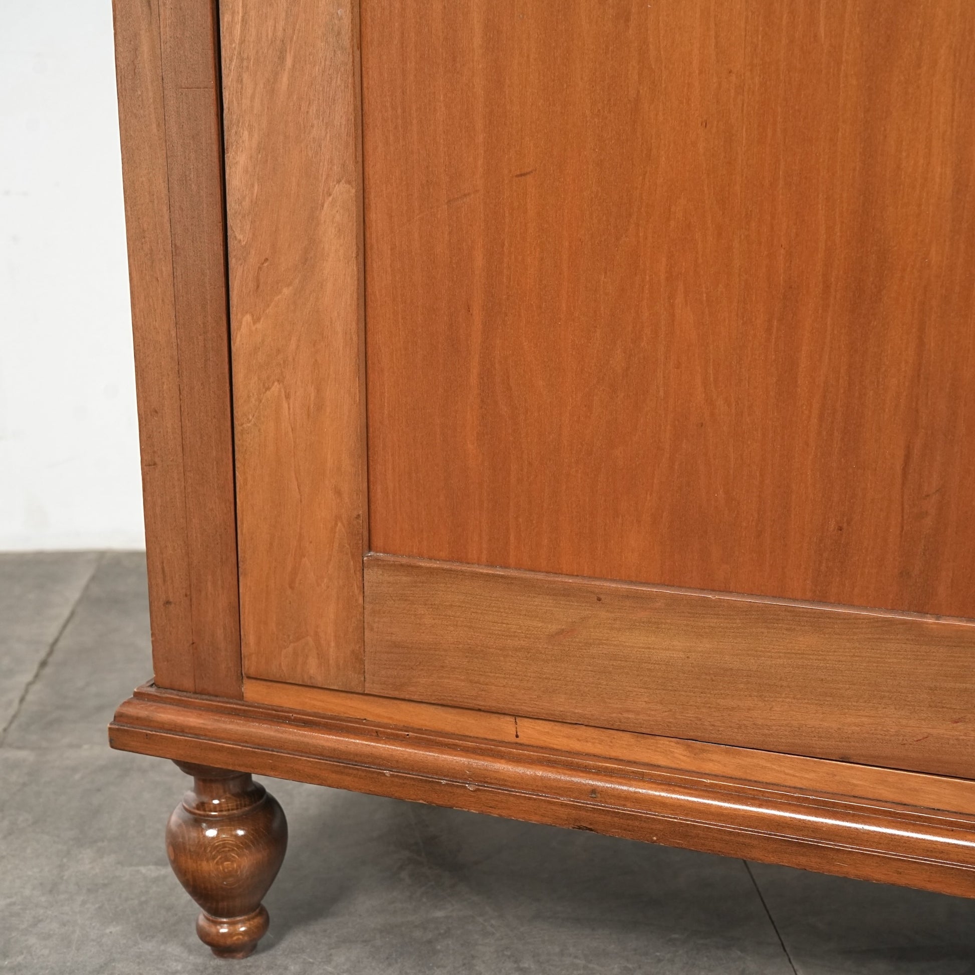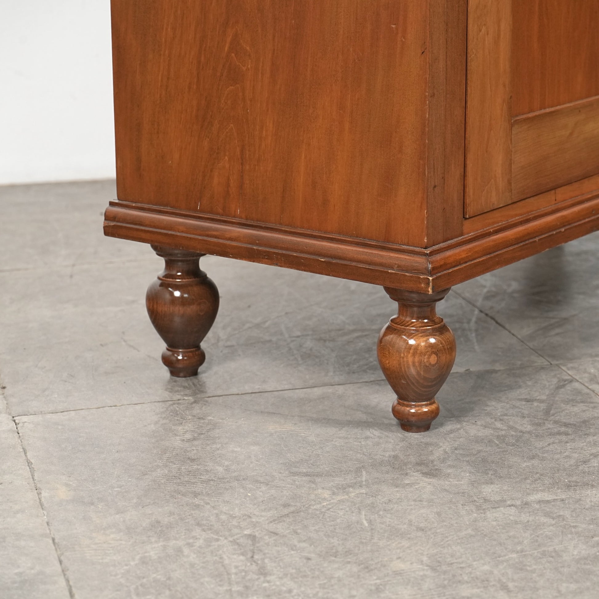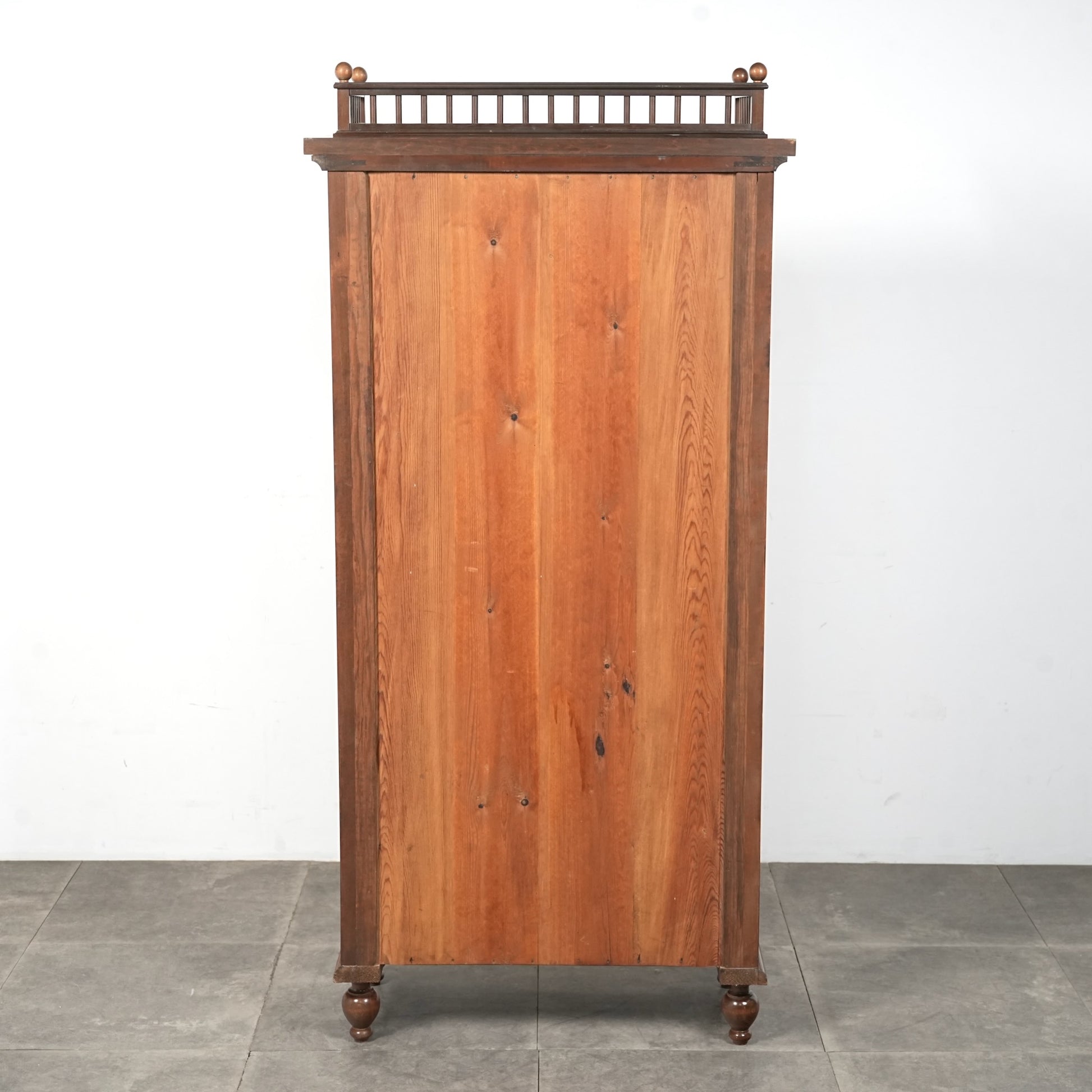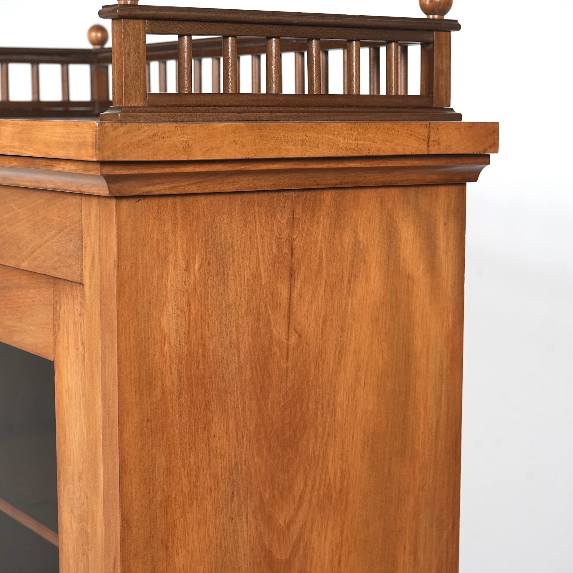 主張しすぎないシンプルかつ上品な佇まいの中に、ろくろ脚や上部のさりげない装飾が程よいアクセントとなった見事なデザイン。