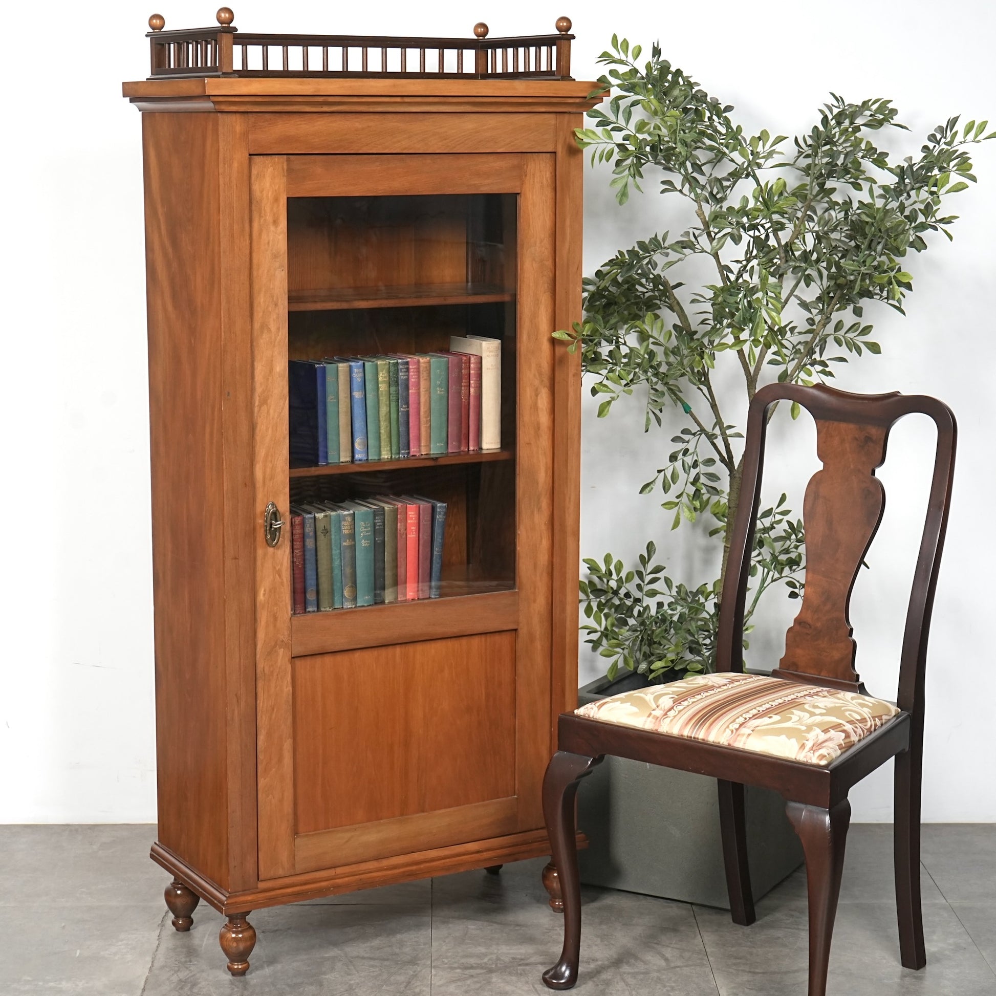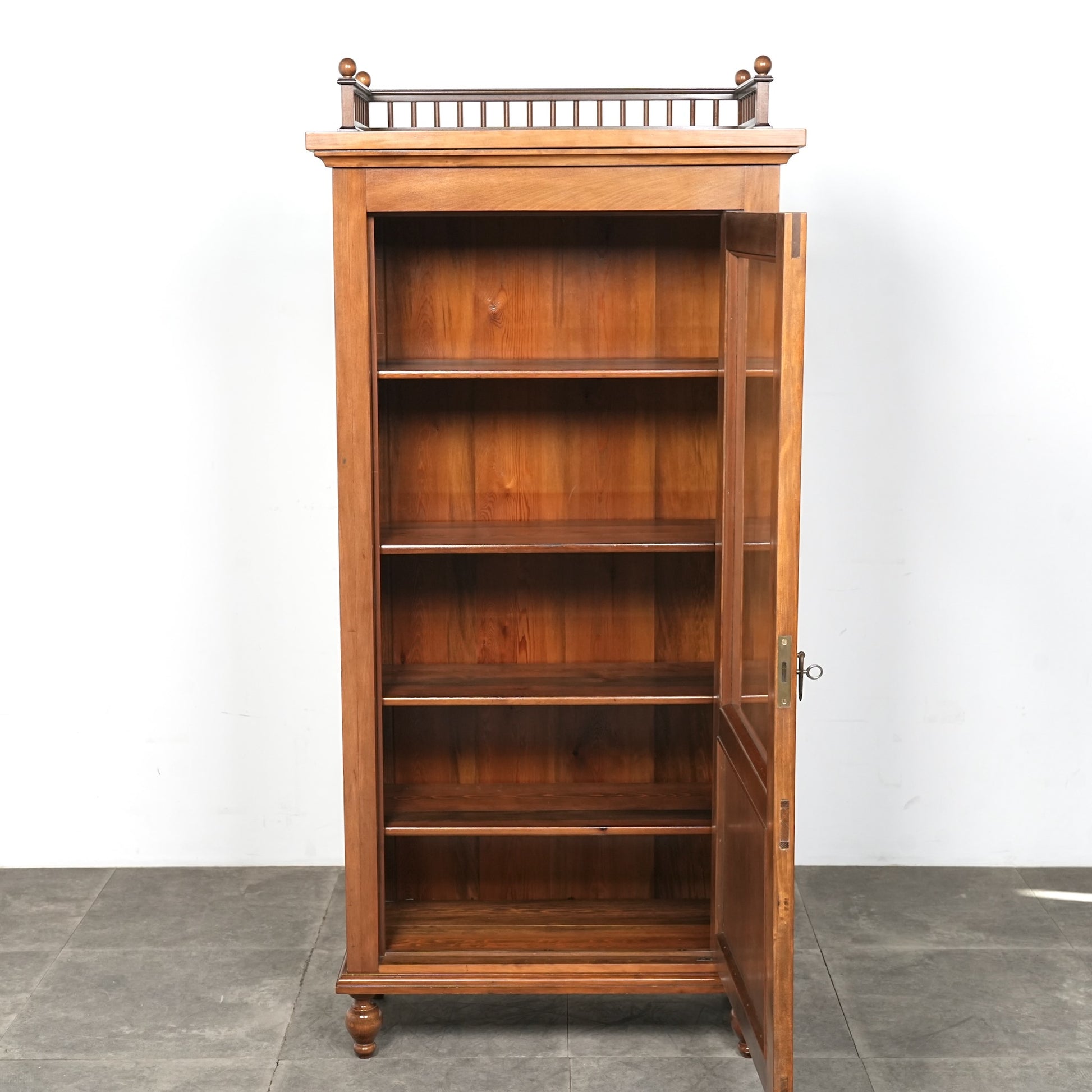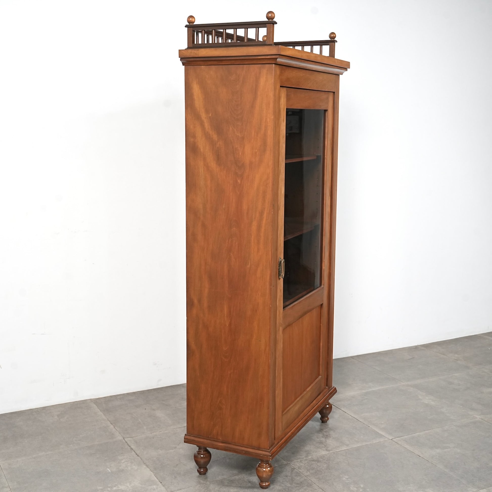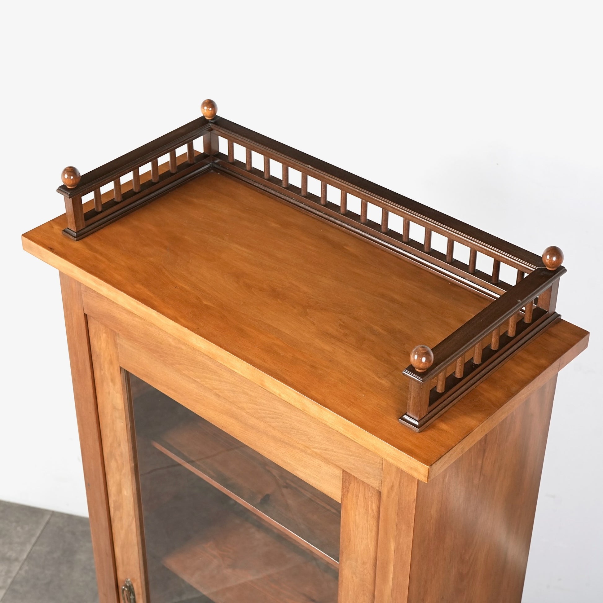 主張しすぎないシンプルかつ上品な佇まいの中に、ろくろ脚や上部のさりげない装飾が程よいアクセントとなった見事なデザイン。