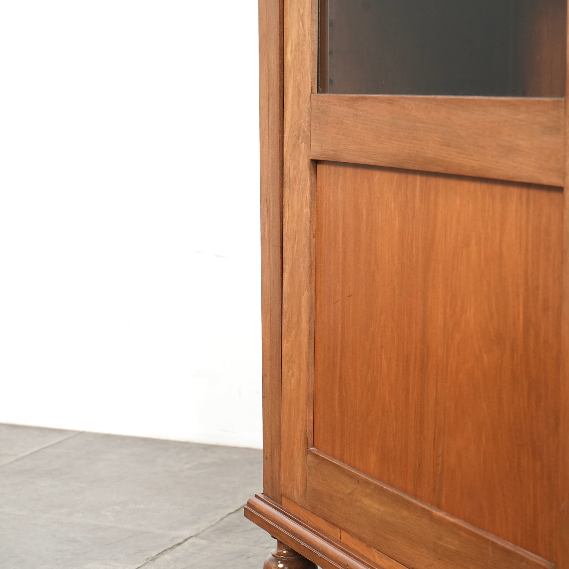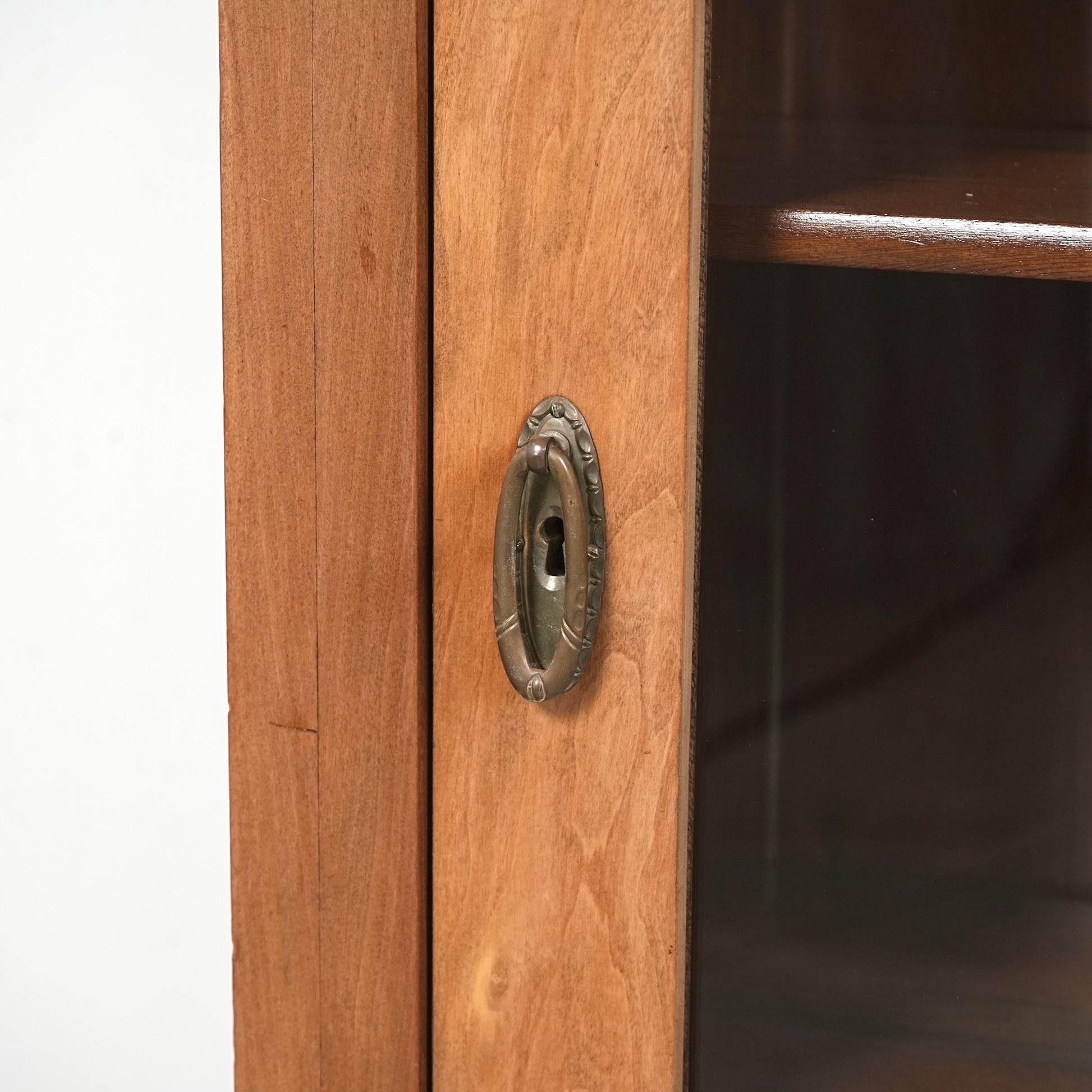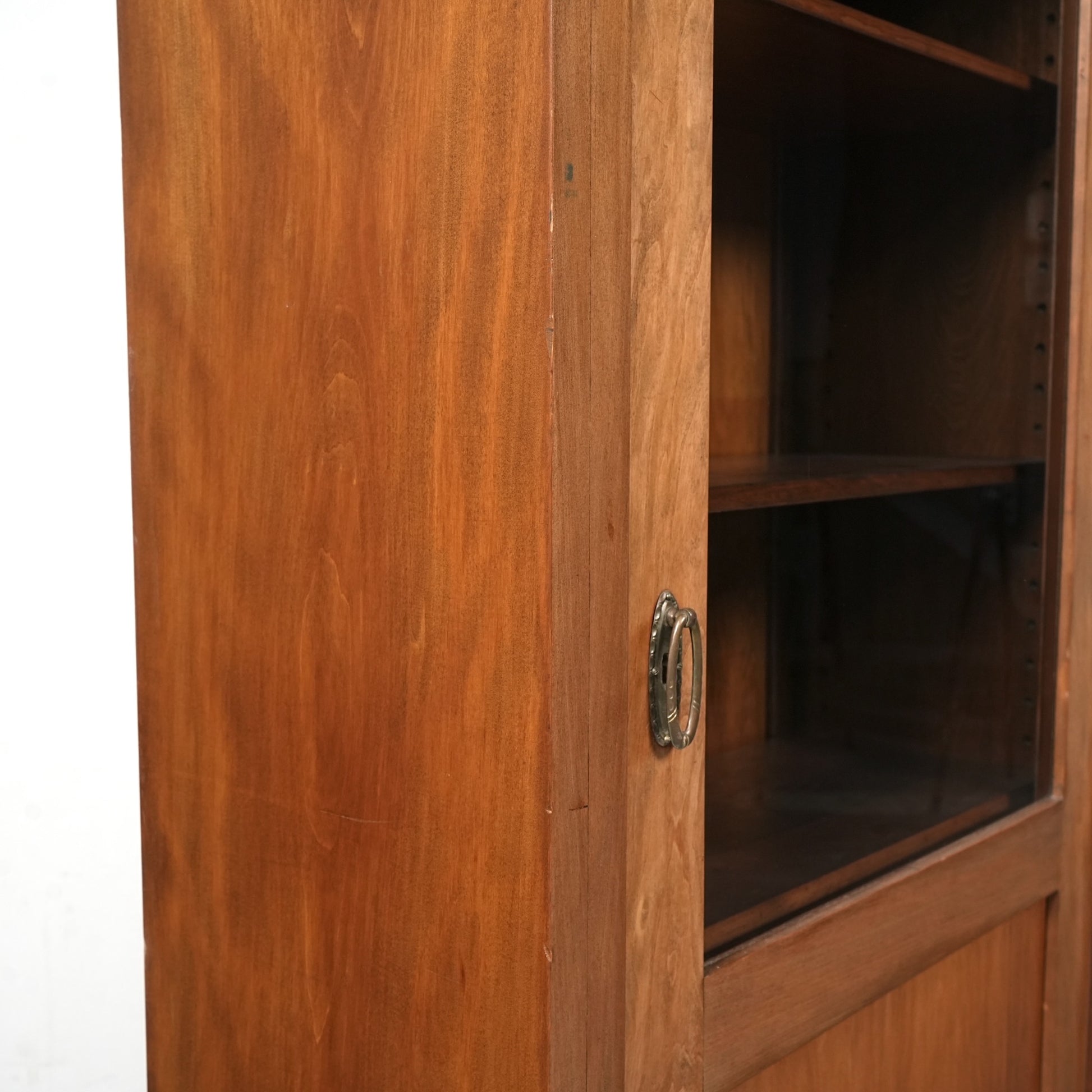 ・扉と棚板に経年による若干の反り、ガラスに細かな傷がございます。