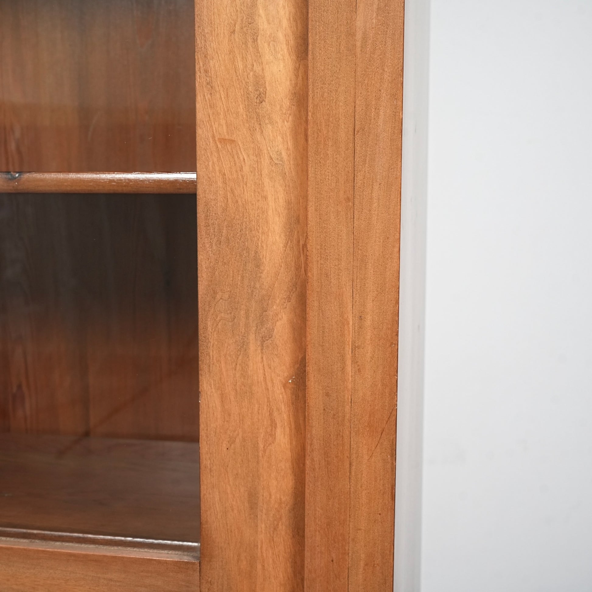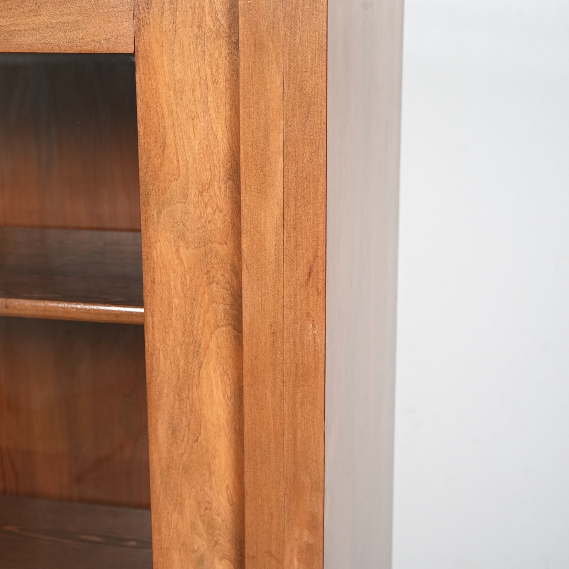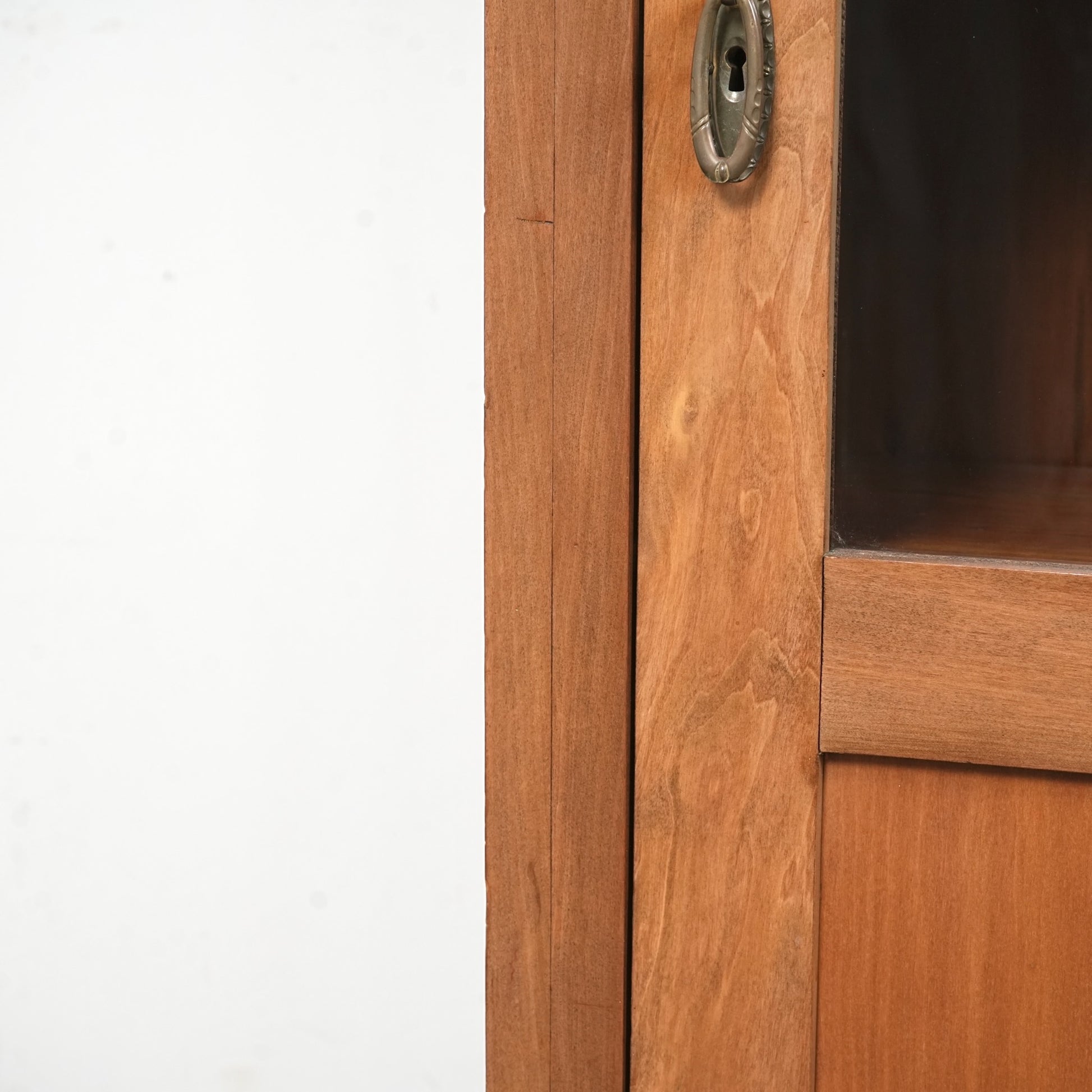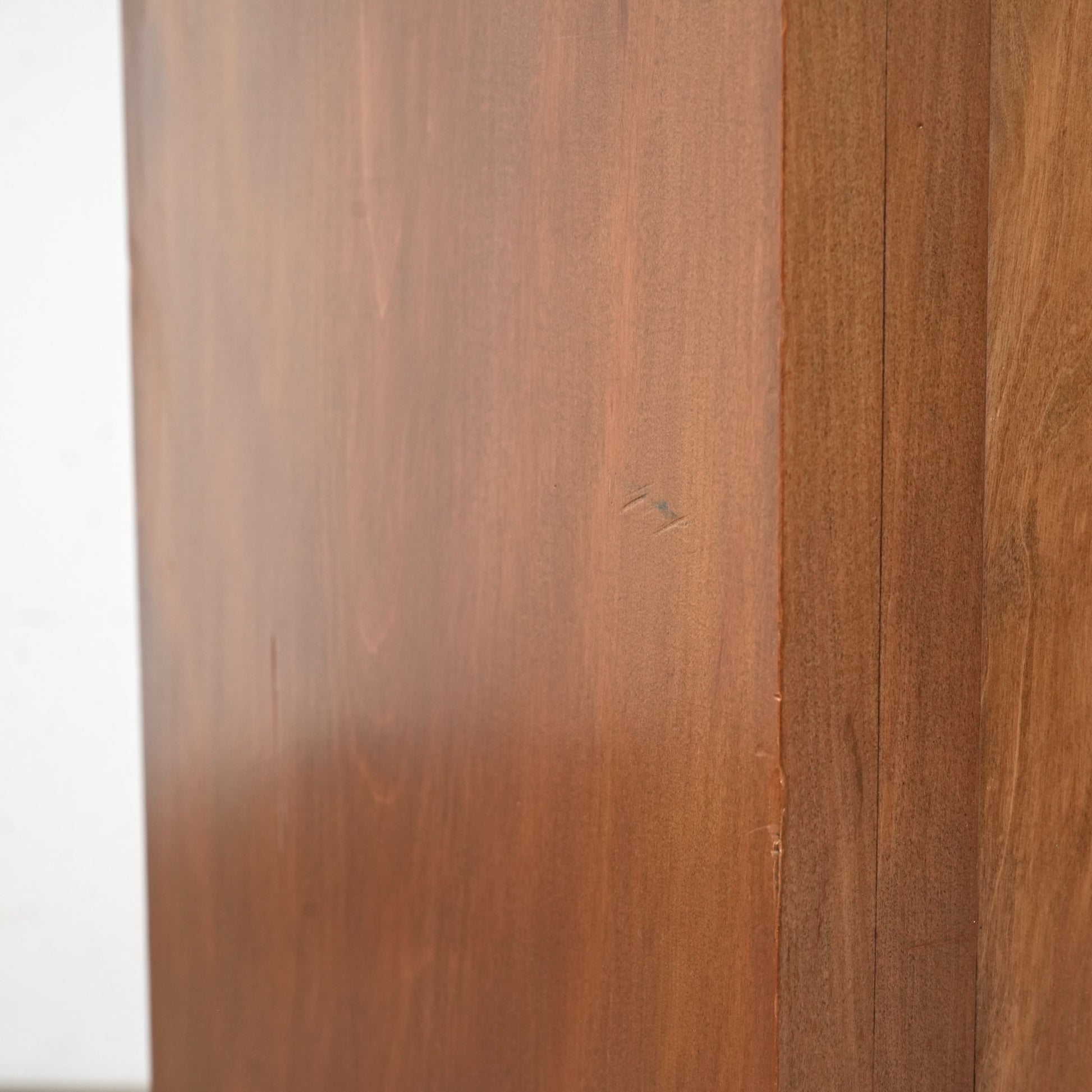 ・扉と棚板に経年による若干の反り、ガラスに細かな傷がございます。