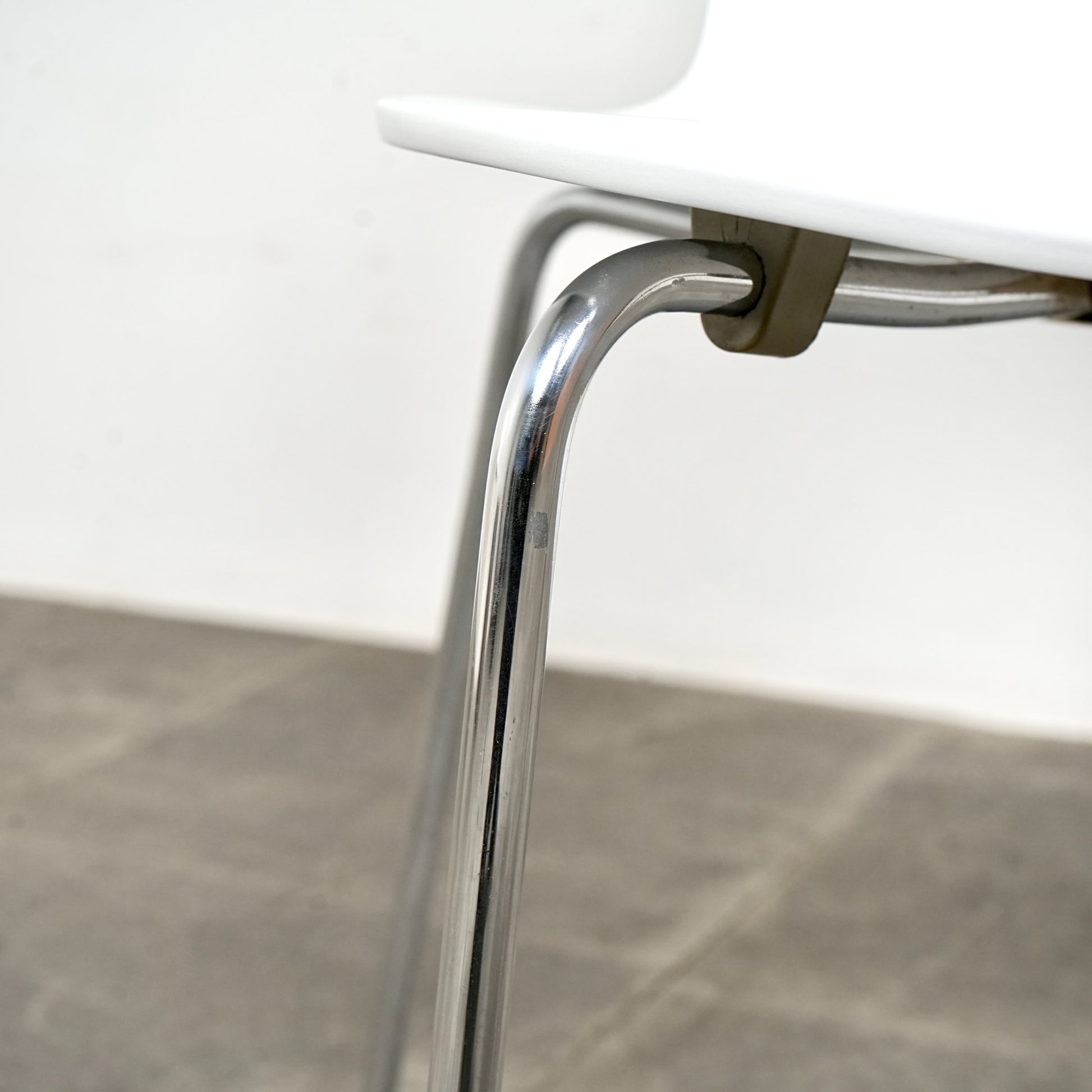 スリムな脚部との組み合わせも秀逸で、こちらの4本脚モデルはArne Jacobsenの存命中は限定的に製造されるのみでしたが、1971年からはFRITZ HANSENのベーシックアイテムの1つとして製造され続けています。