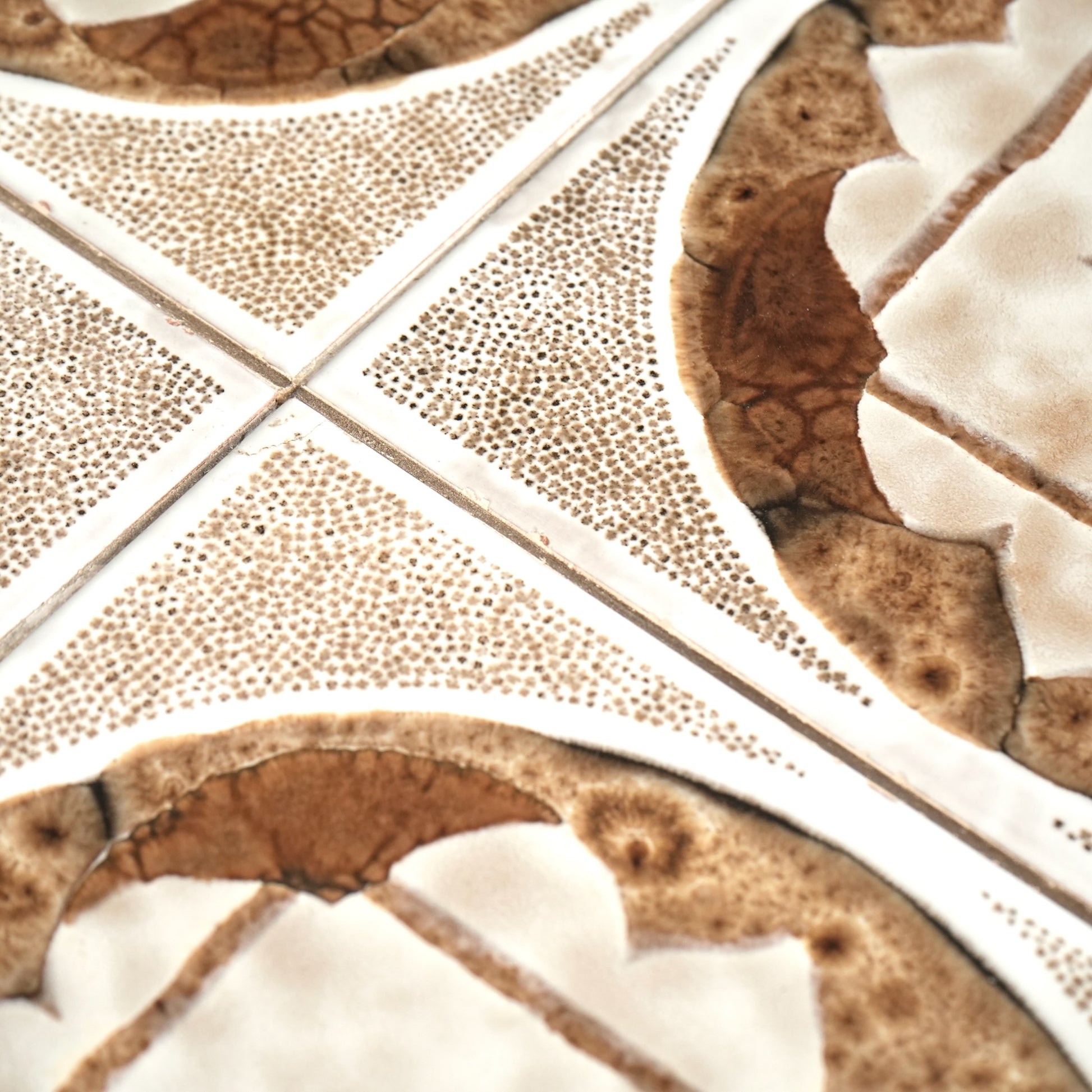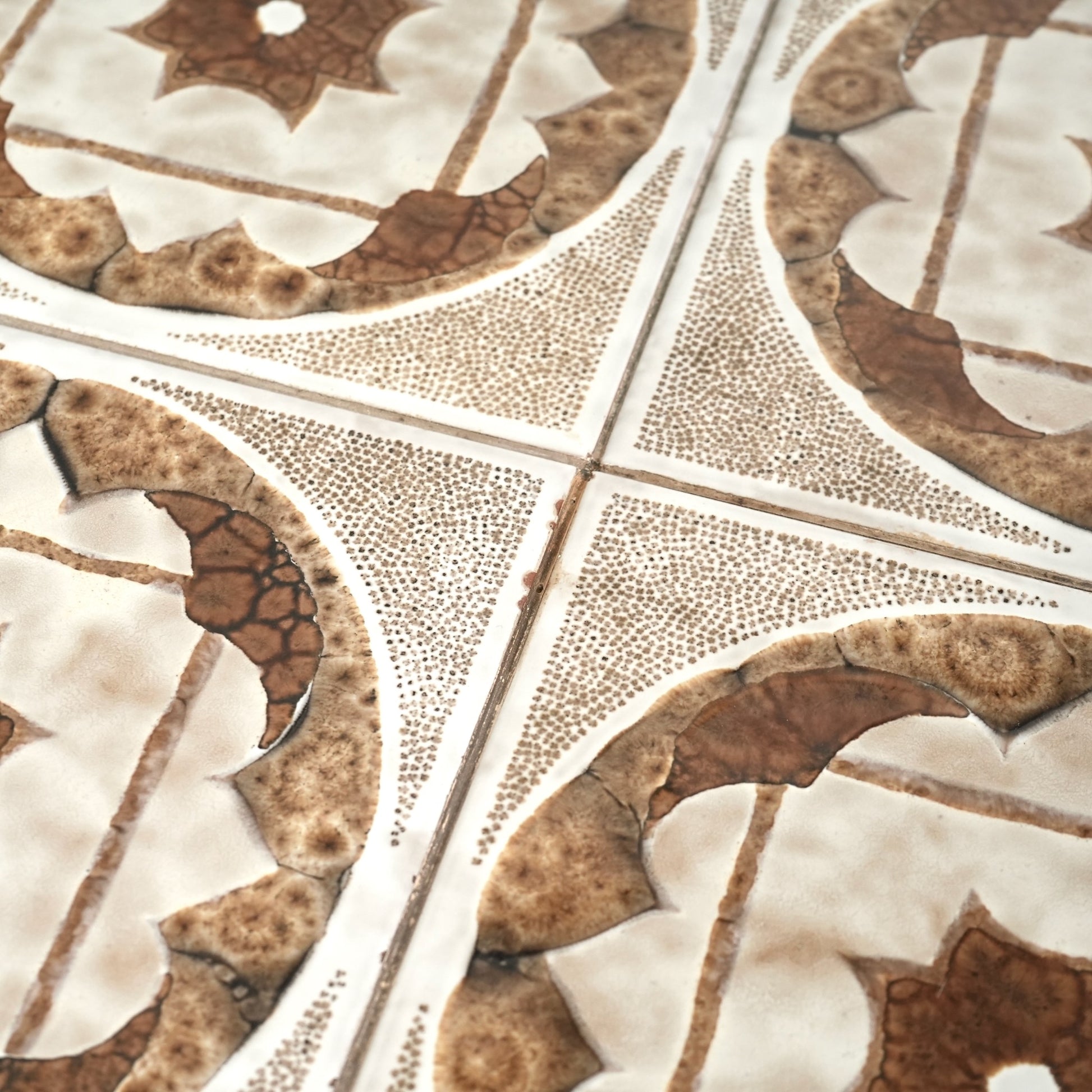 可愛らしい模様のタイルトップはデザイン性だけでなく、耐熱性と耐水性に優れており日常のお手入れも簡単。