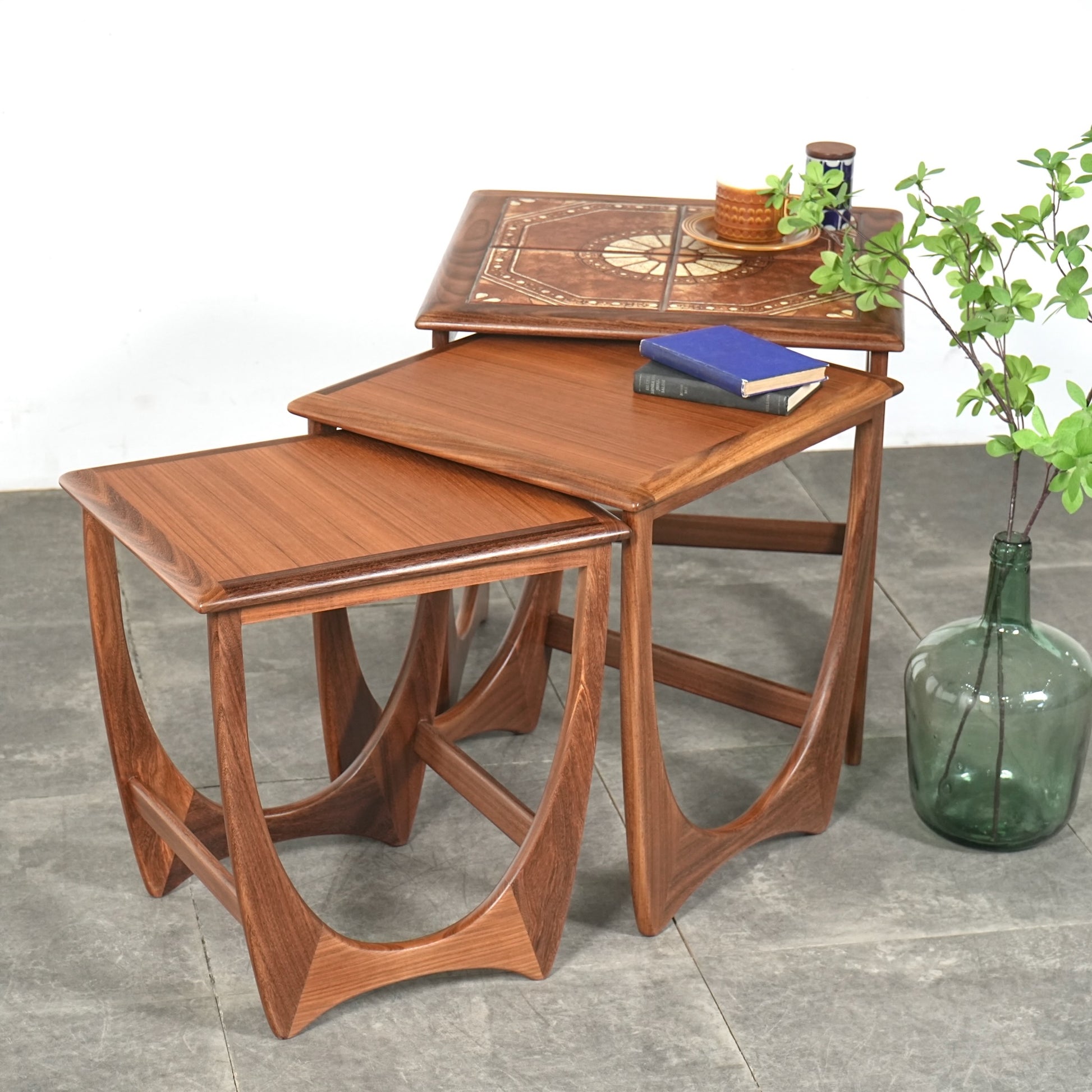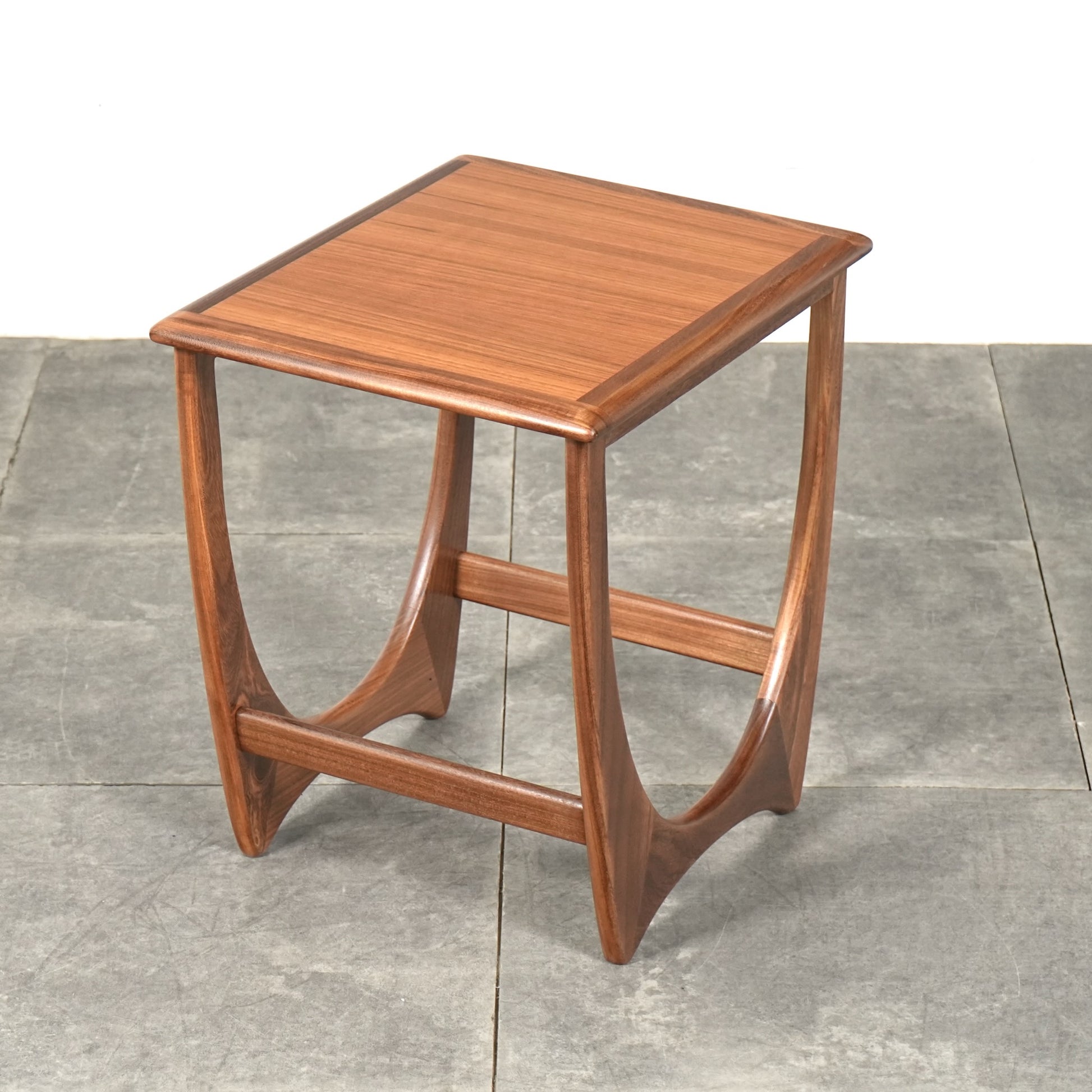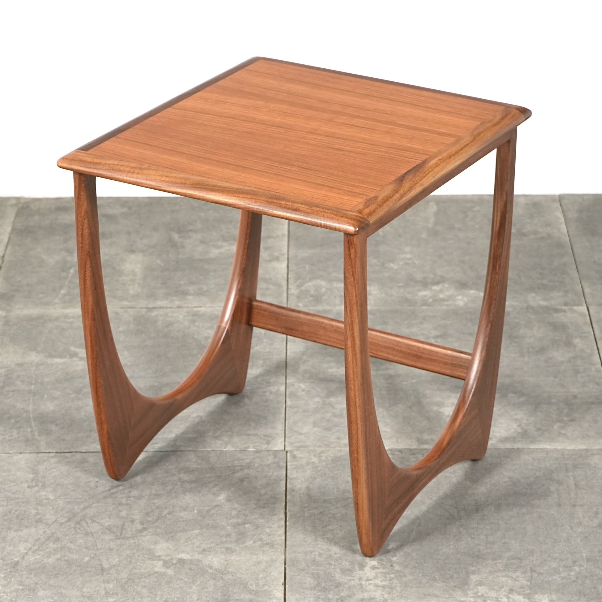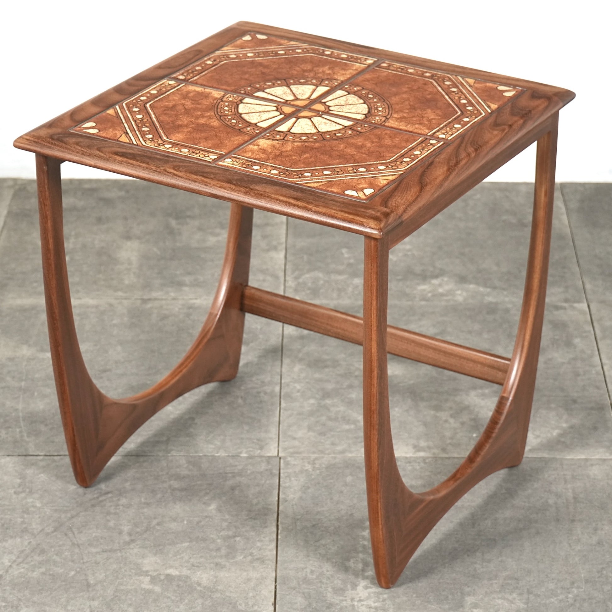こちらはG-PLANの不朽の名作とも言えるサーキュラー ローテーブルと同様に脚部の曲線美が印象的で、濃淡のはっきりとした高品質のチークと美しいタイルのデザインも相まって本当に見事なバランス。