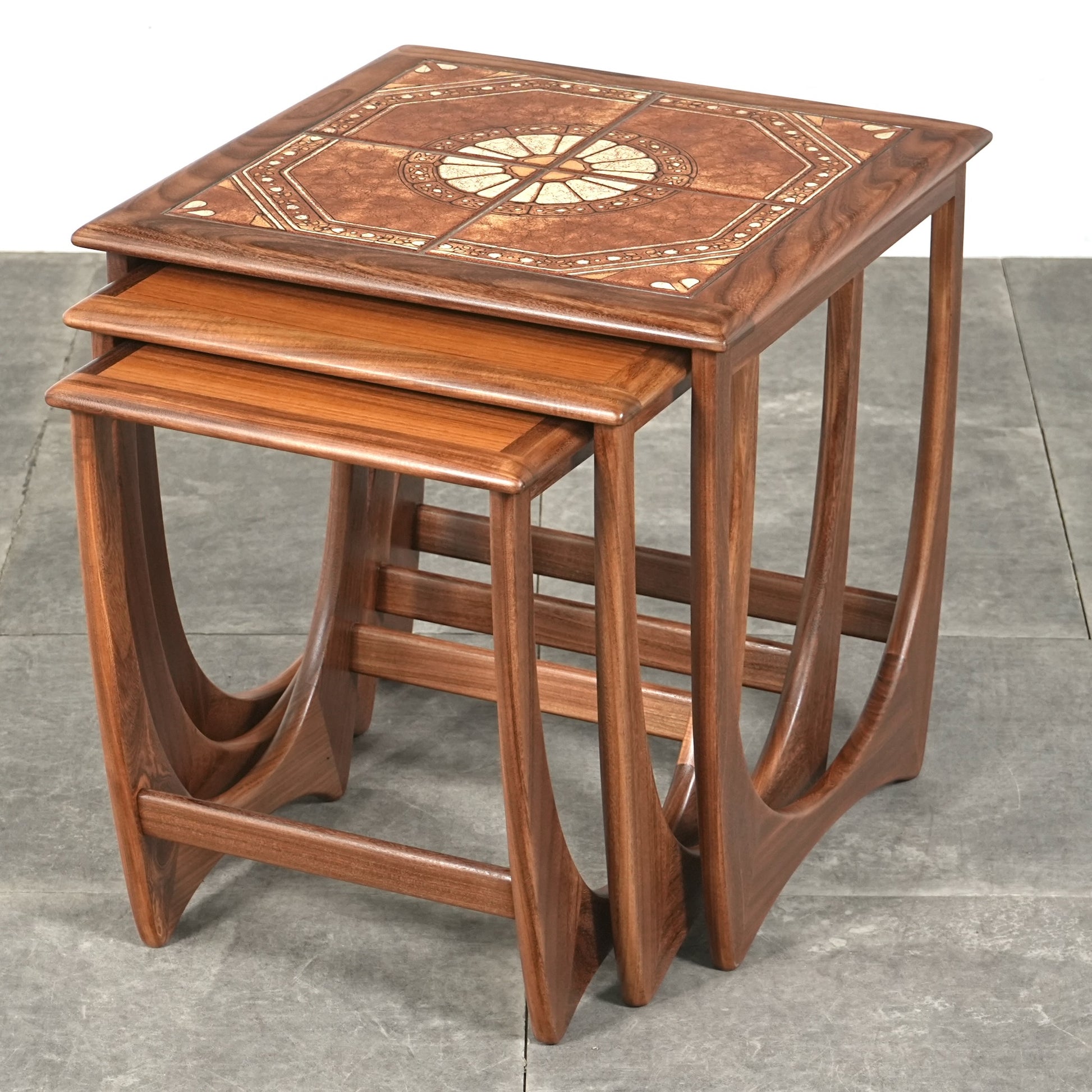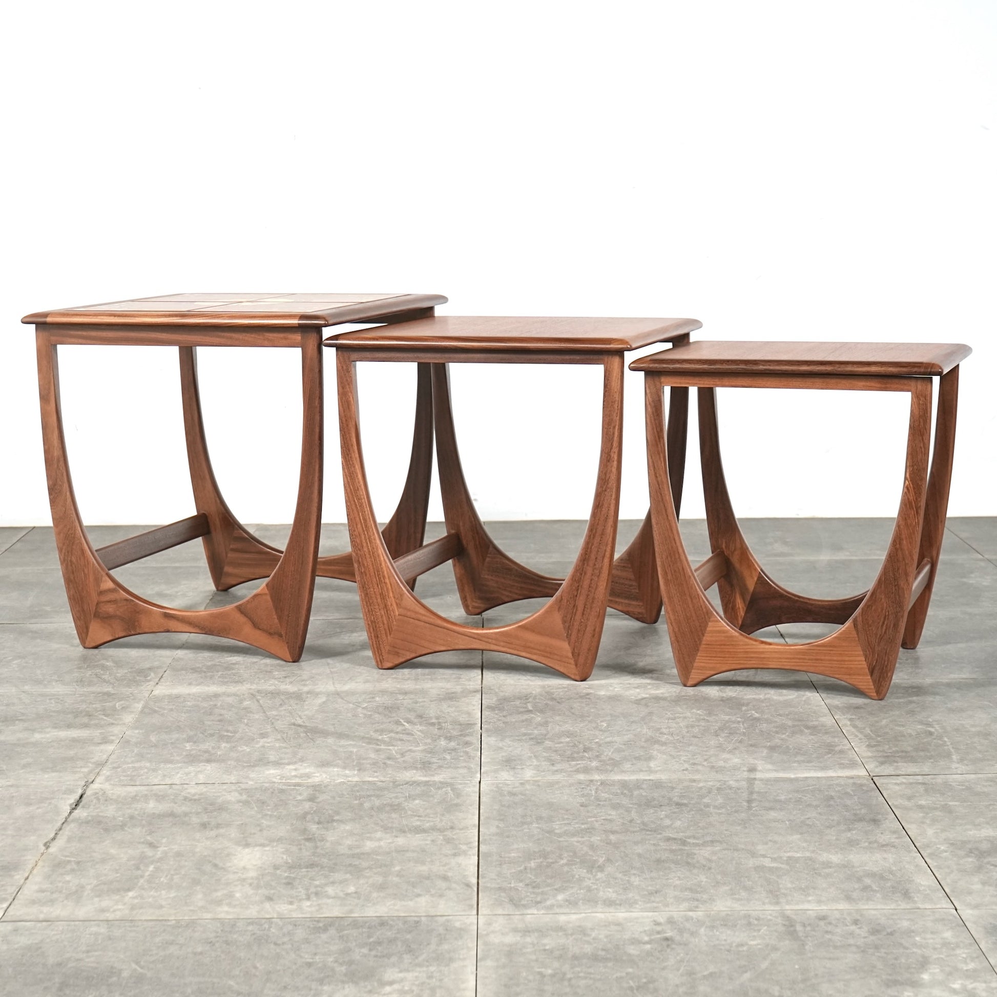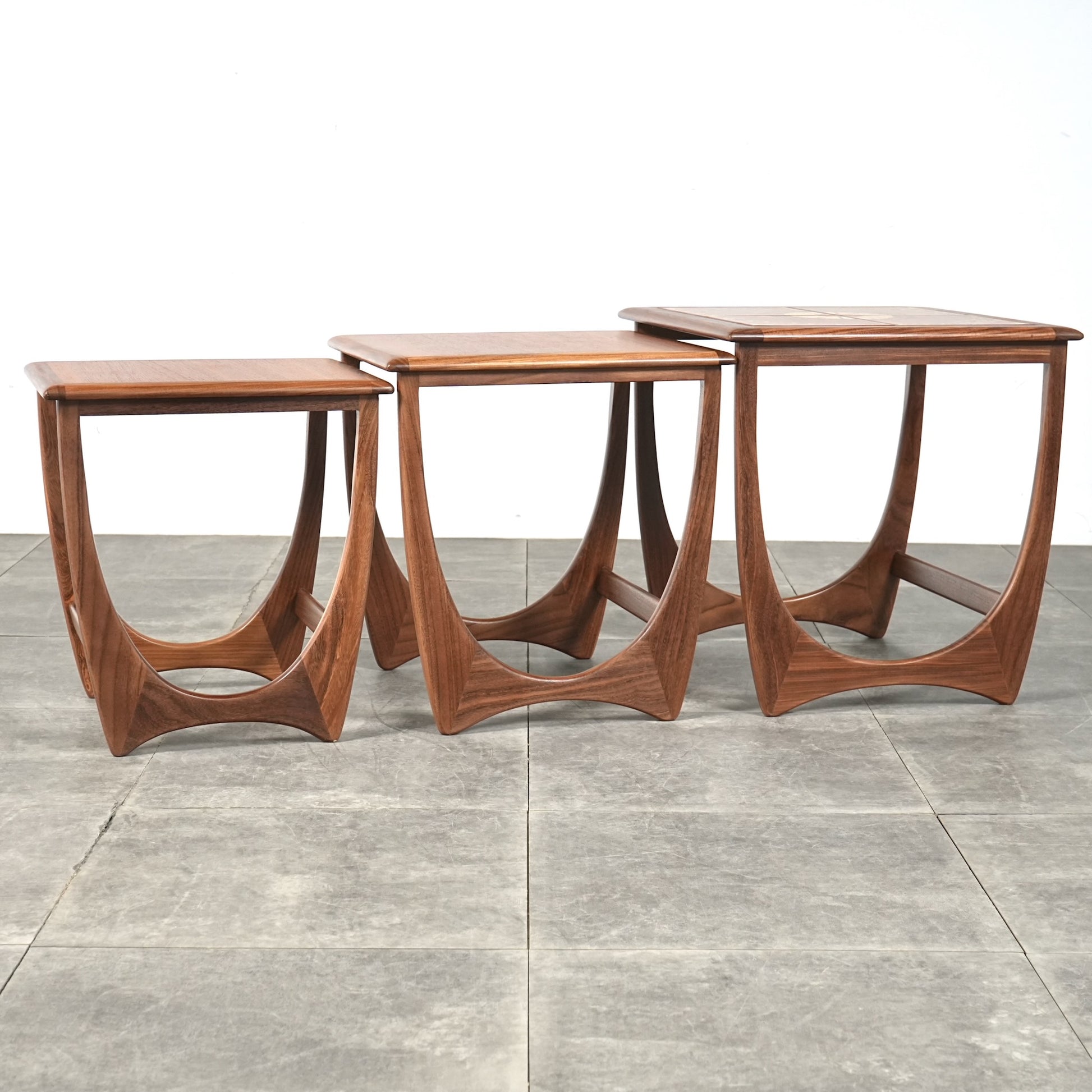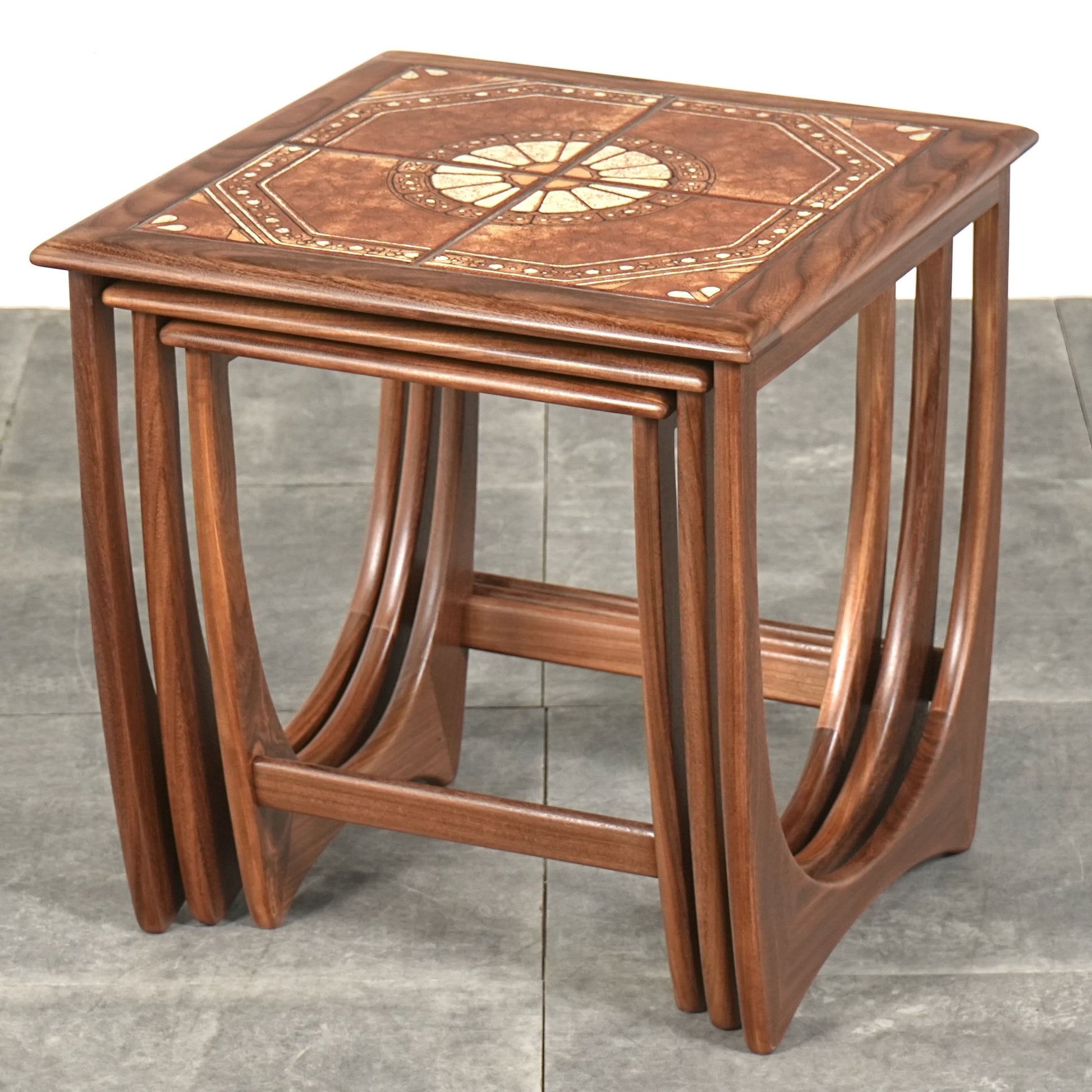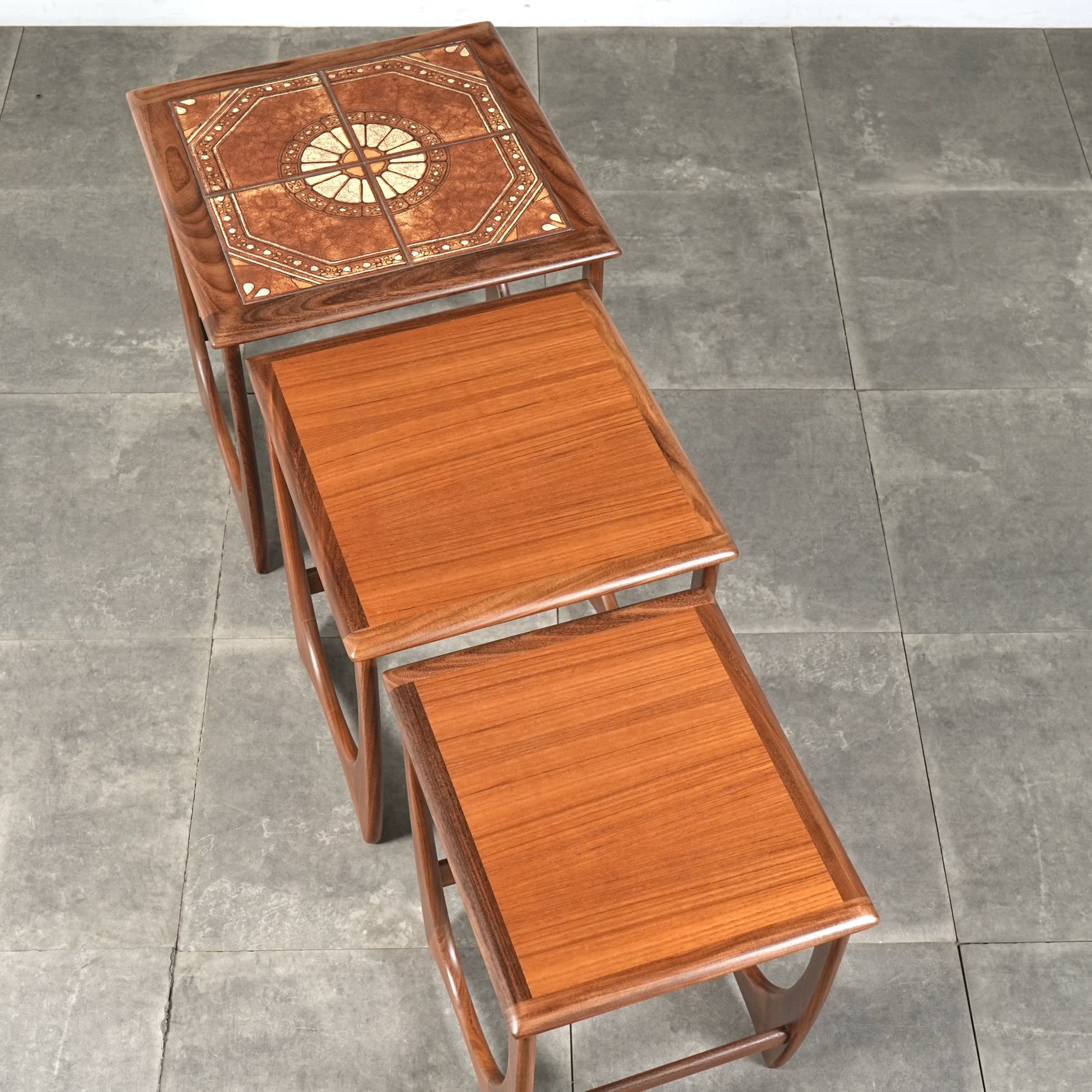 こちらはG-PLANの不朽の名作とも言えるサーキュラー ローテーブルと同様に脚部の曲線美が印象的で、濃淡のはっきりとした高品質のチークと美しいタイルのデザインも相まって本当に見事なバランス。