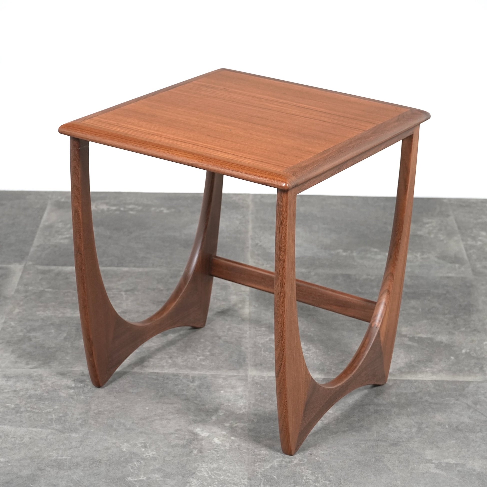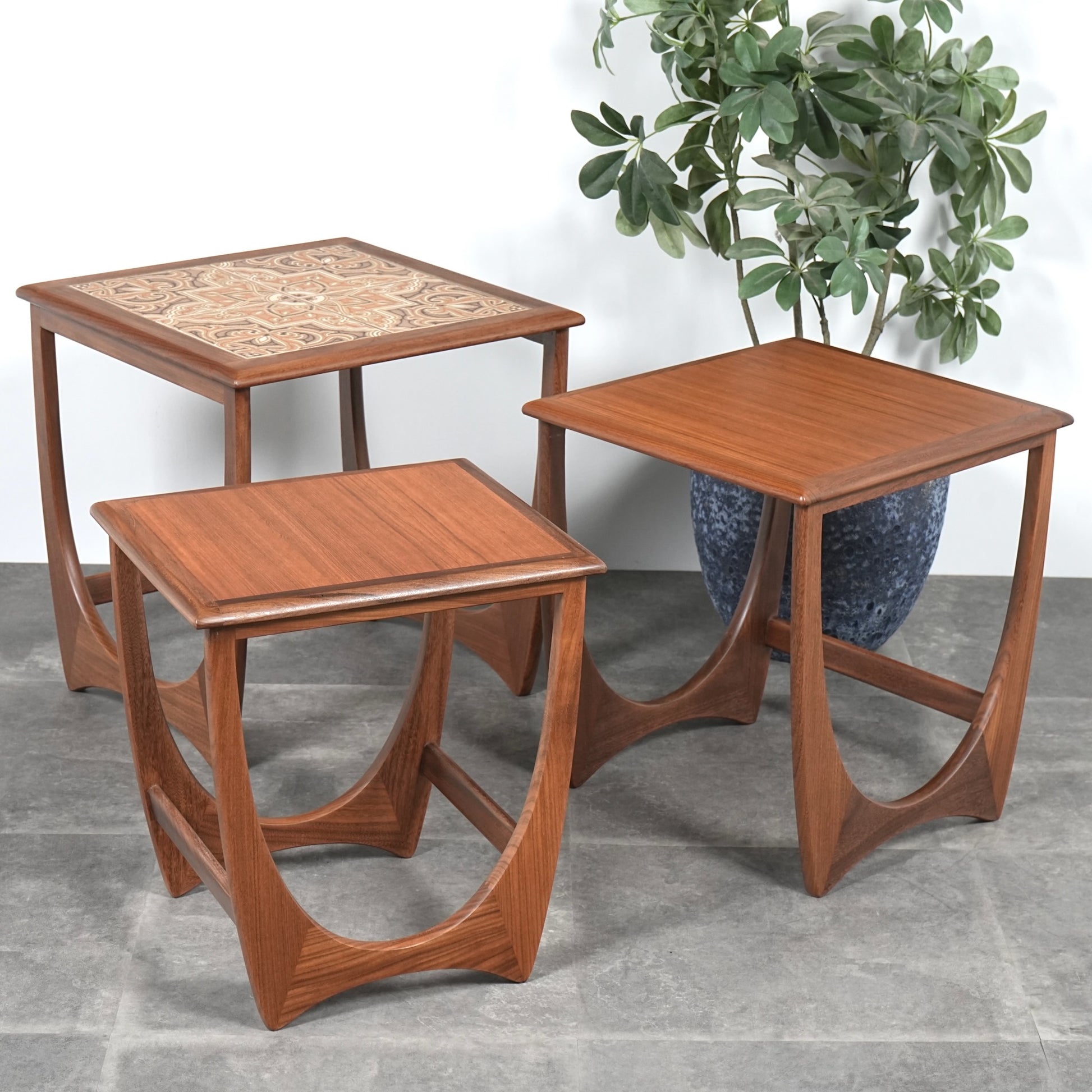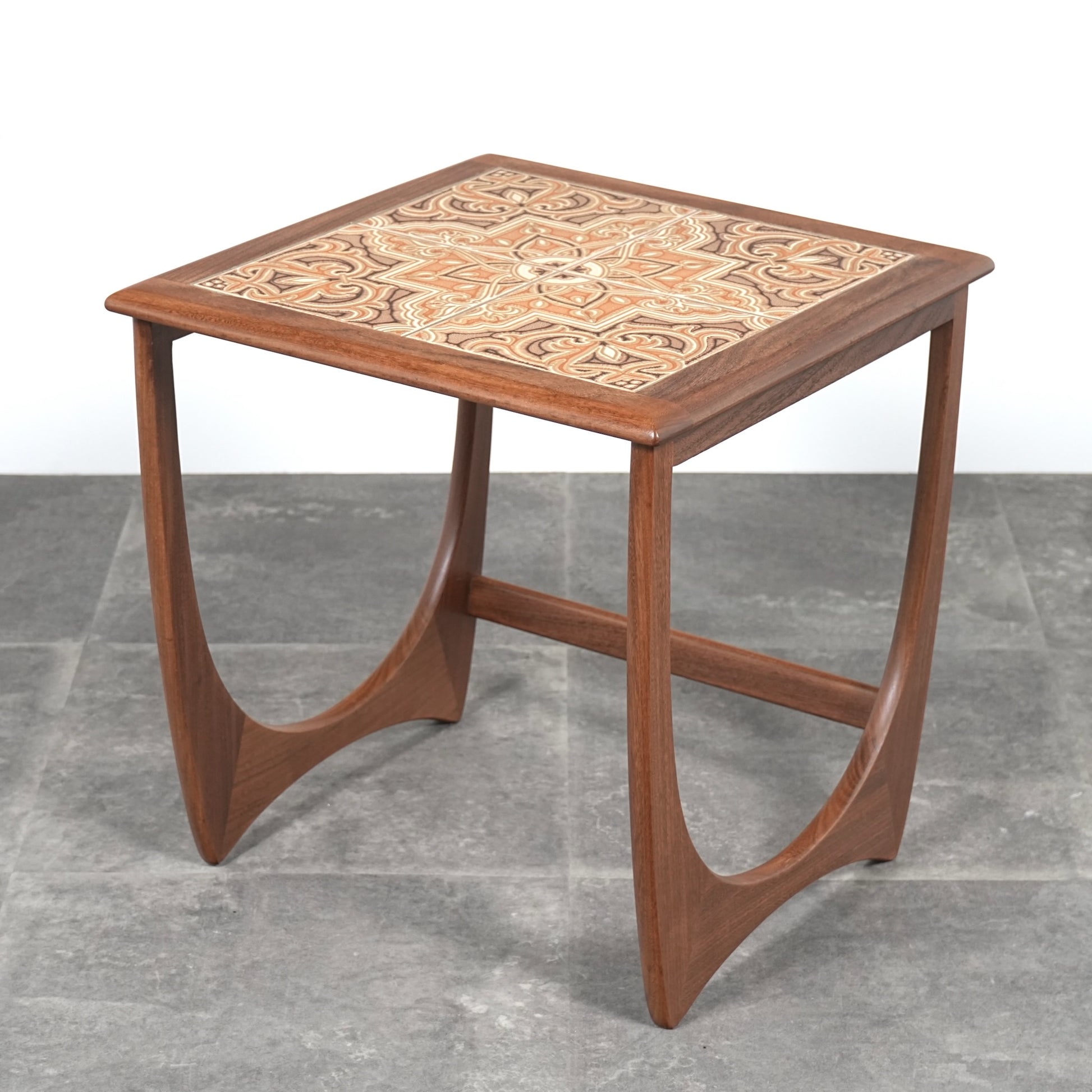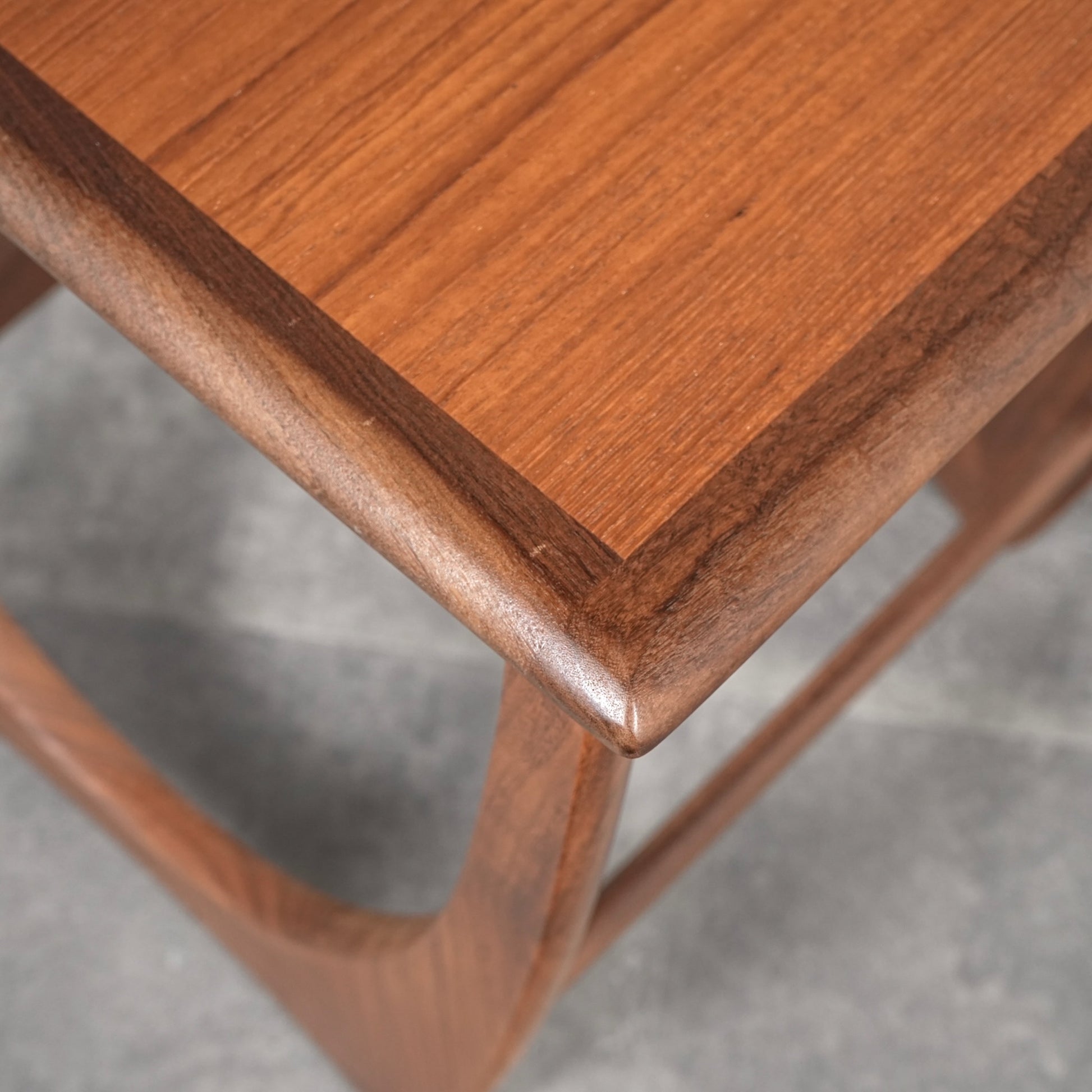 こちらはG-PLANの不朽の名作とも言えるサーキュラー ローテーブルと同様に脚部の曲線美が印象的で、濃淡のはっきりとした高品質のチークと美しいタイルのデザインも相まって本当に見事なバランス。