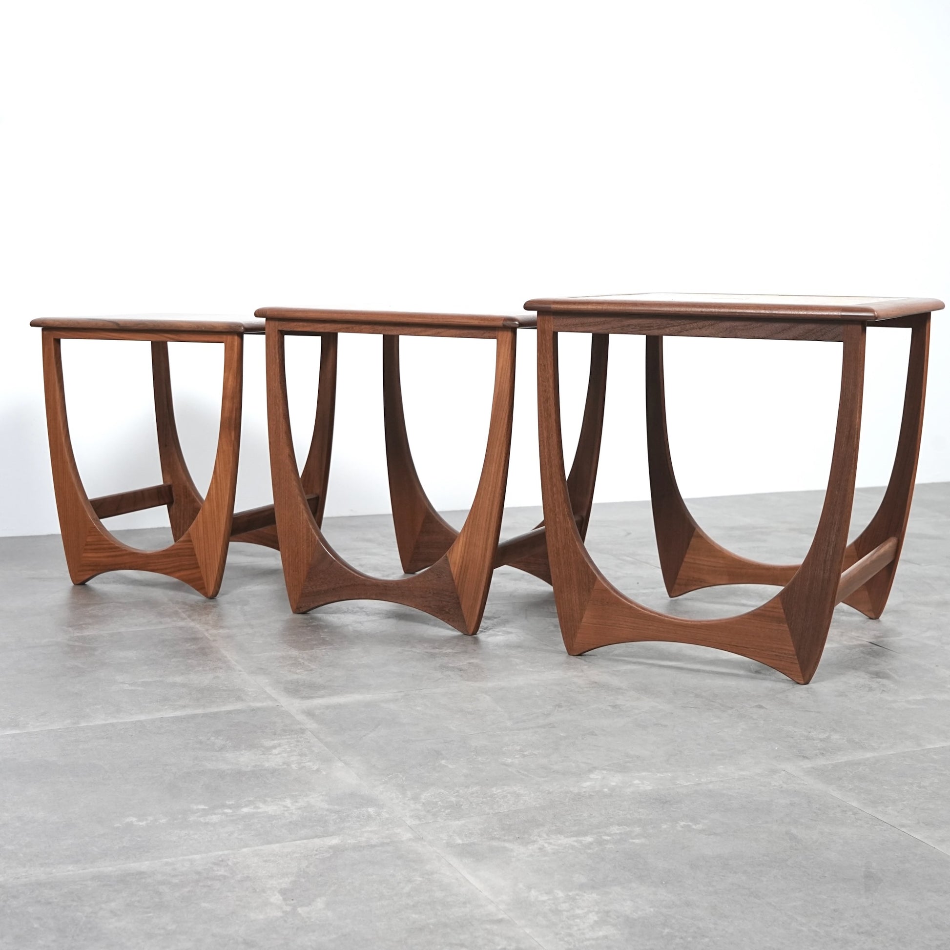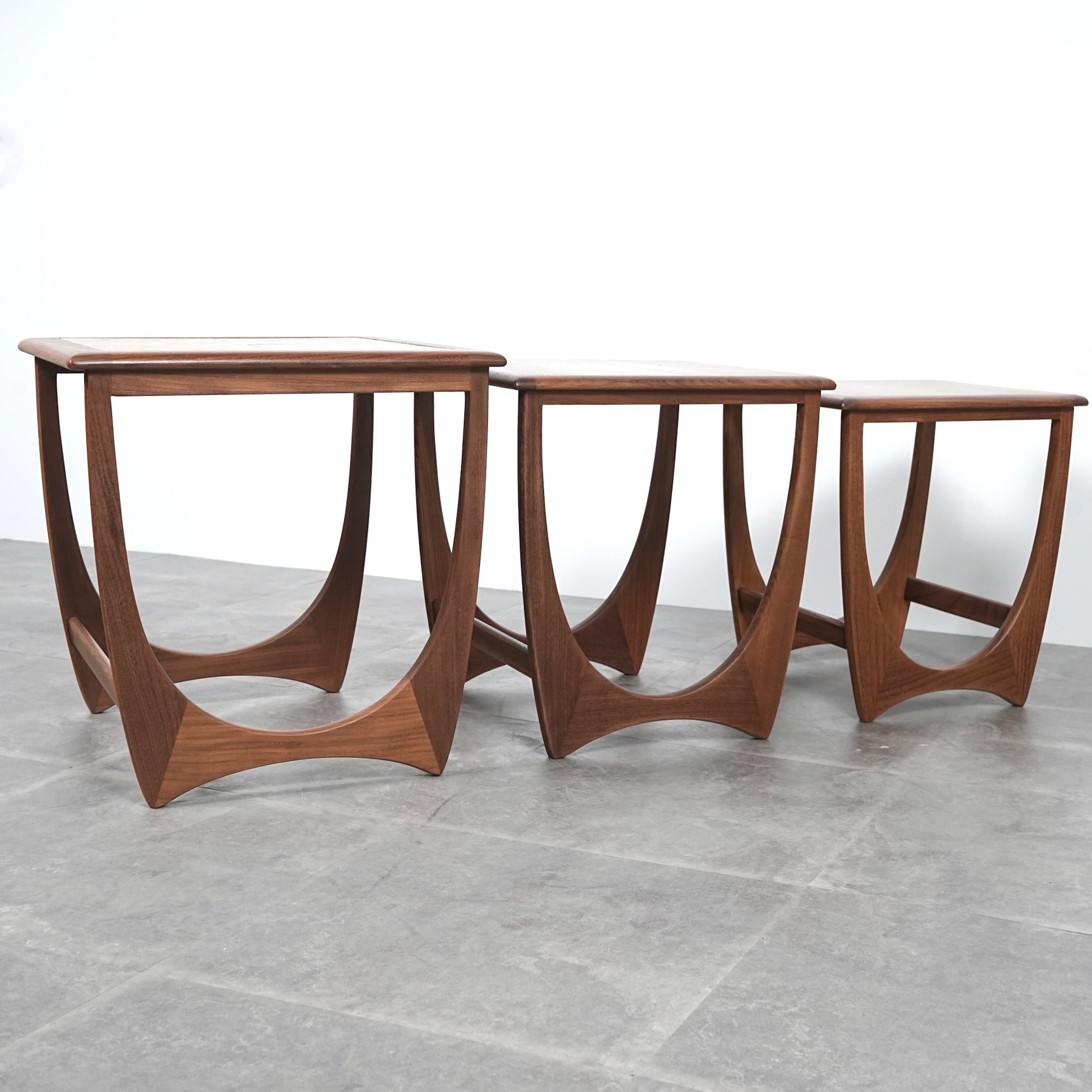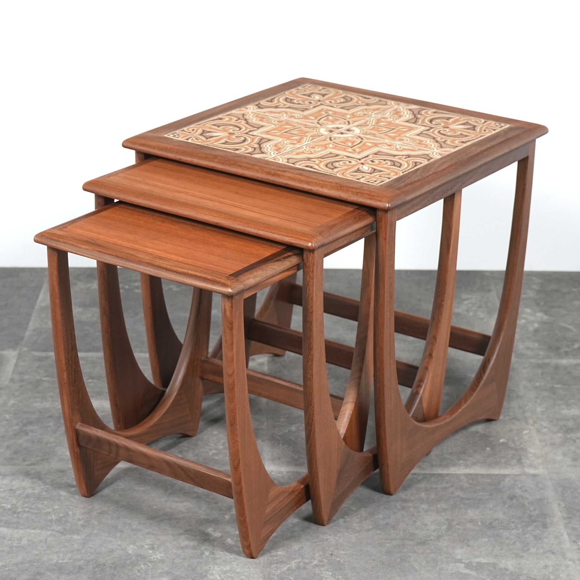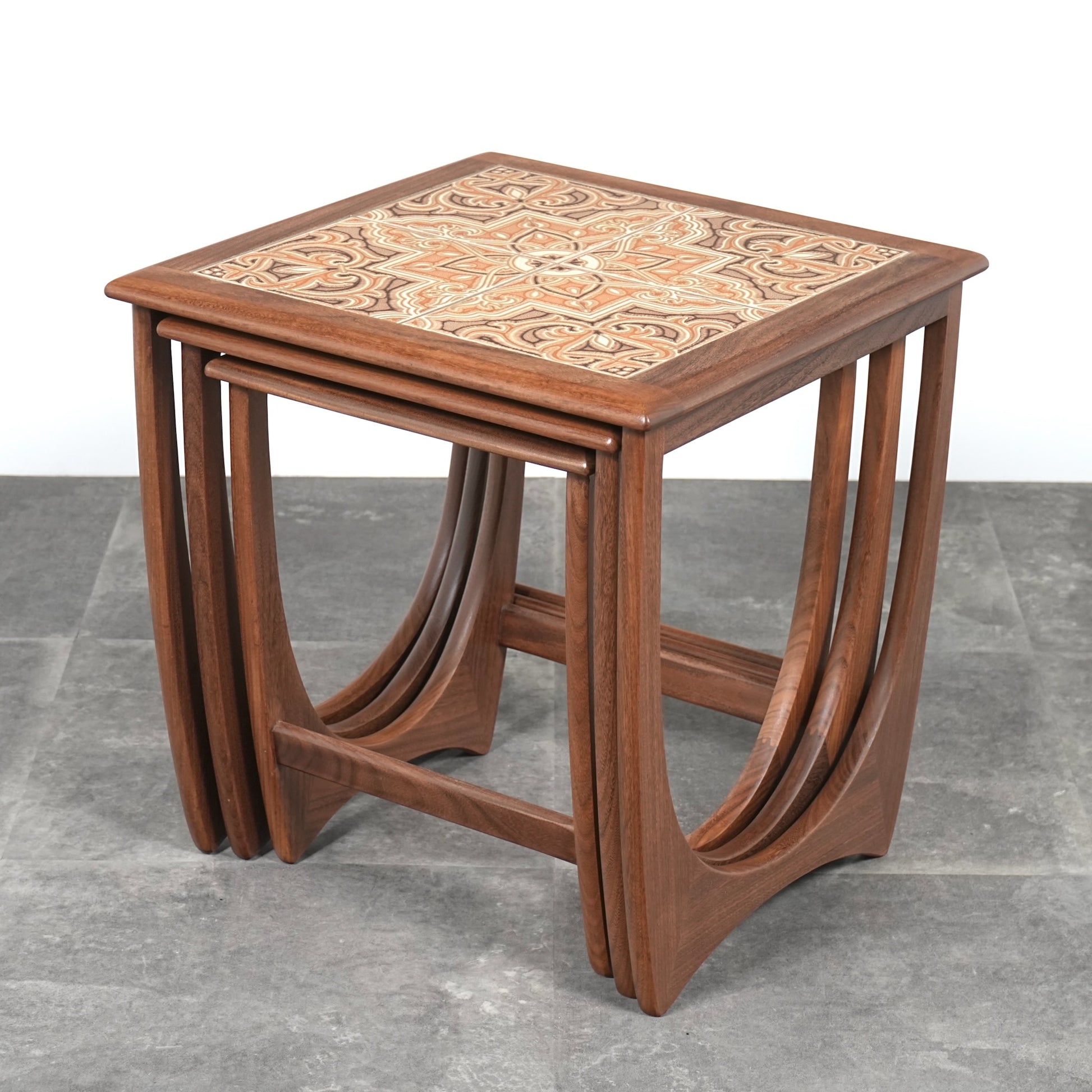 こちらはG-PLANの不朽の名作とも言えるサーキュラー ローテーブルと同様に脚部の曲線美が印象的で、濃淡のはっきりとした高品質のチークと美しいタイルのデザインも相まって本当に見事なバランス。