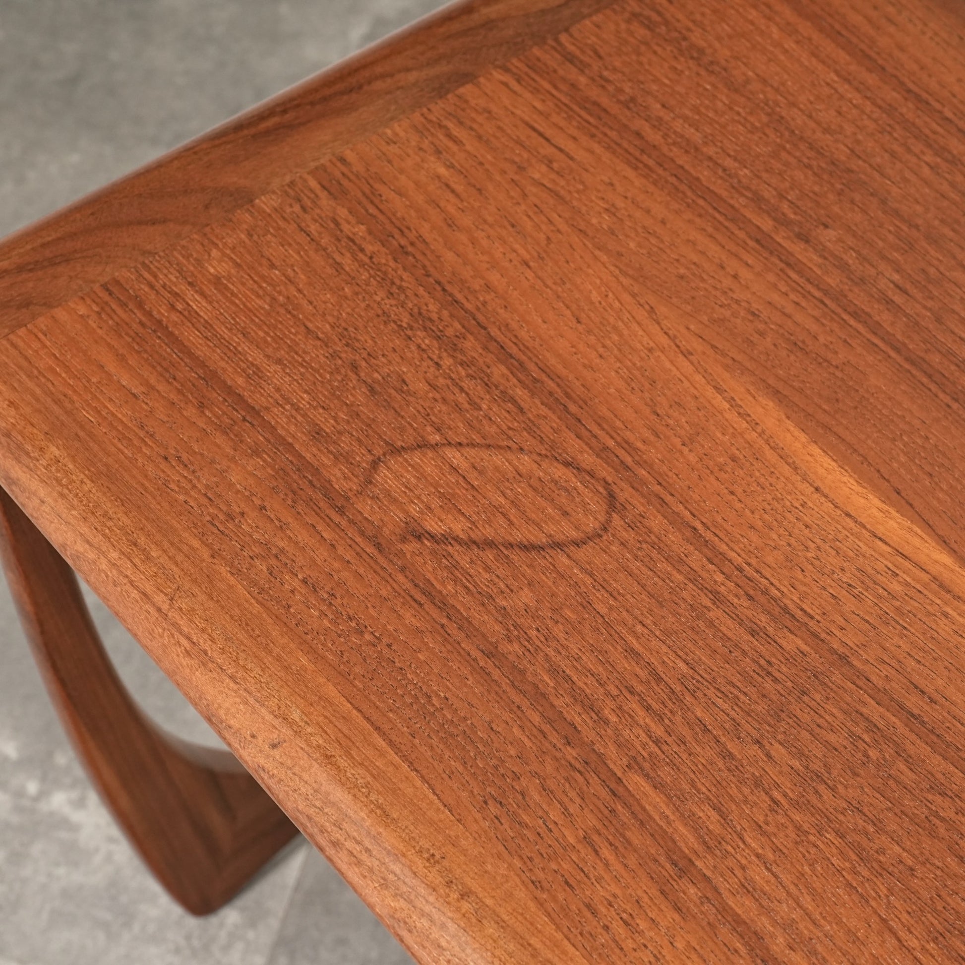 こちらはG-PLANの不朽の名作とも言えるサーキュラー ローテーブルと同様に脚部の曲線美が見事で、濃淡のはっきりとした高品質のチーク材の質感も相まって本当に美しいバランスにまとまっています。