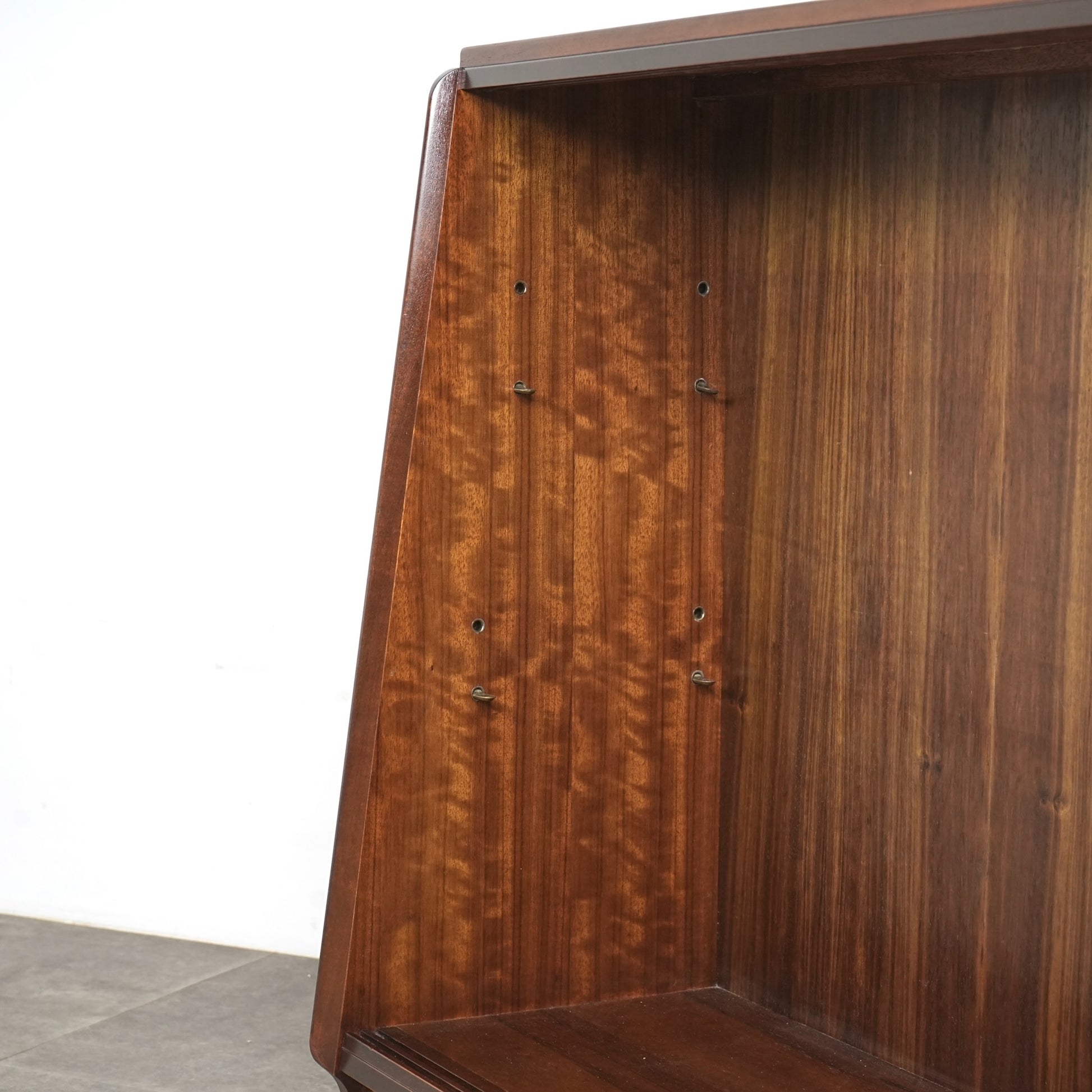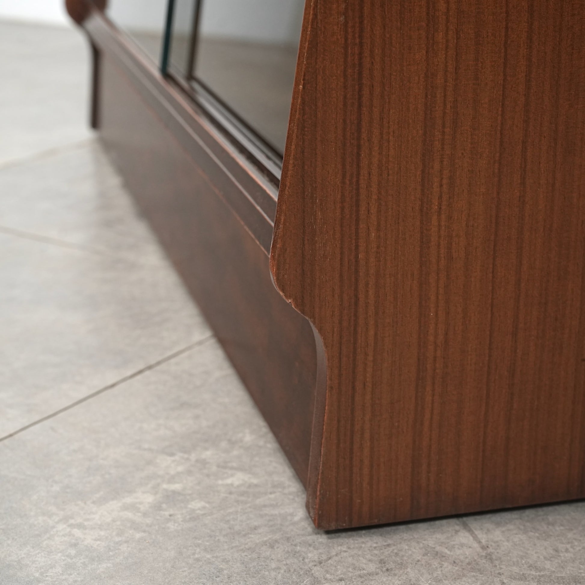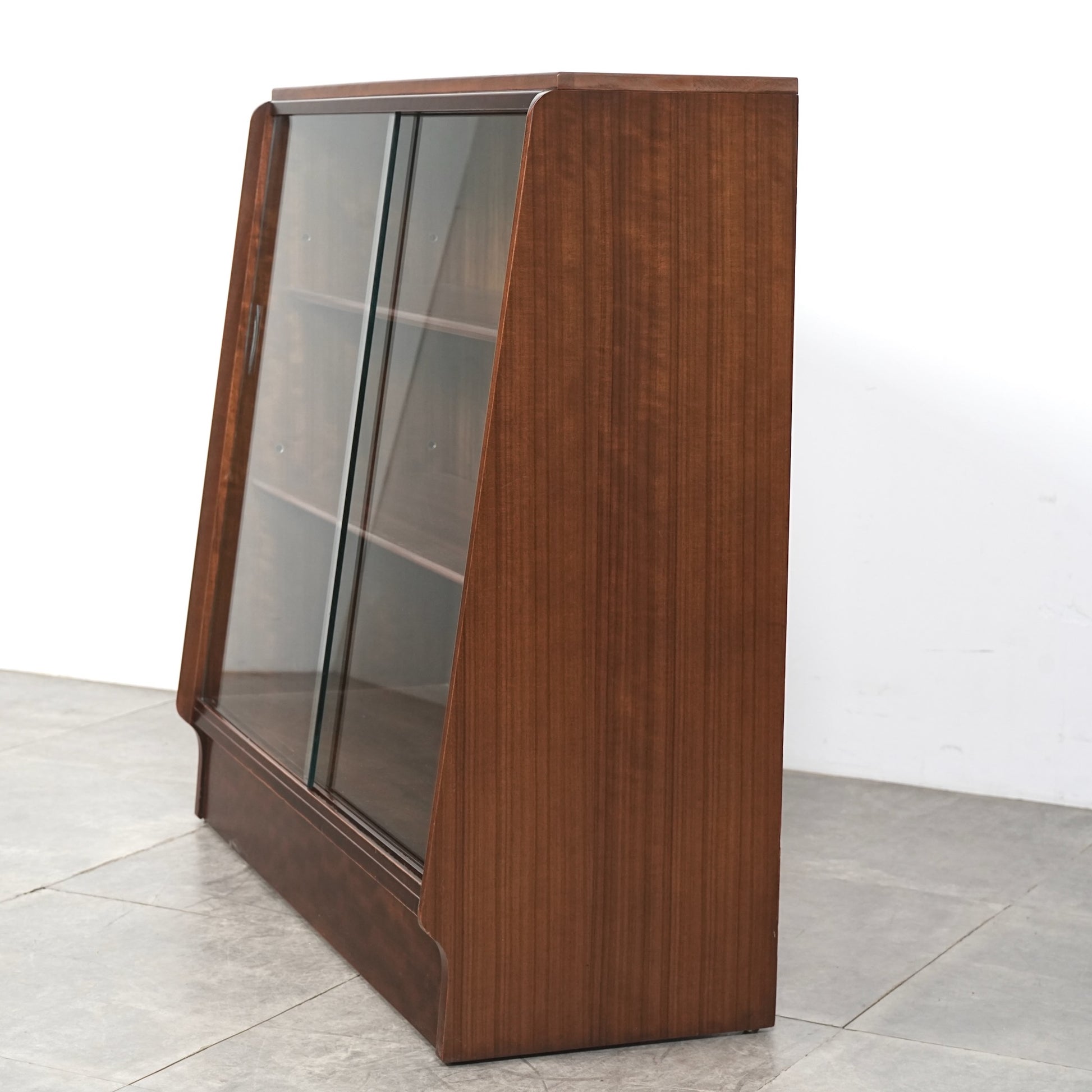 こちらのガラスキャビネットはトラー材のユニークな木目が印象的で、比較的シンプルで現代の住環境にも取り入れやすいデザインではないでしょうか。