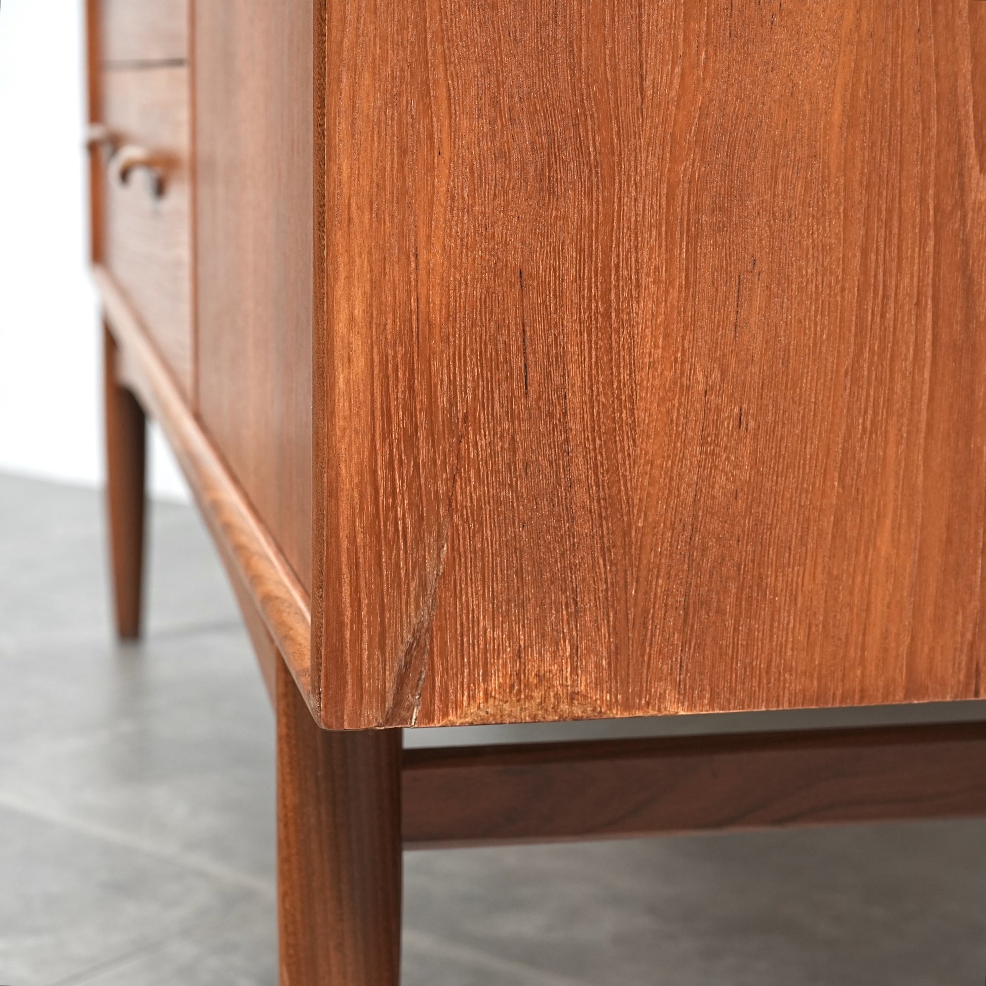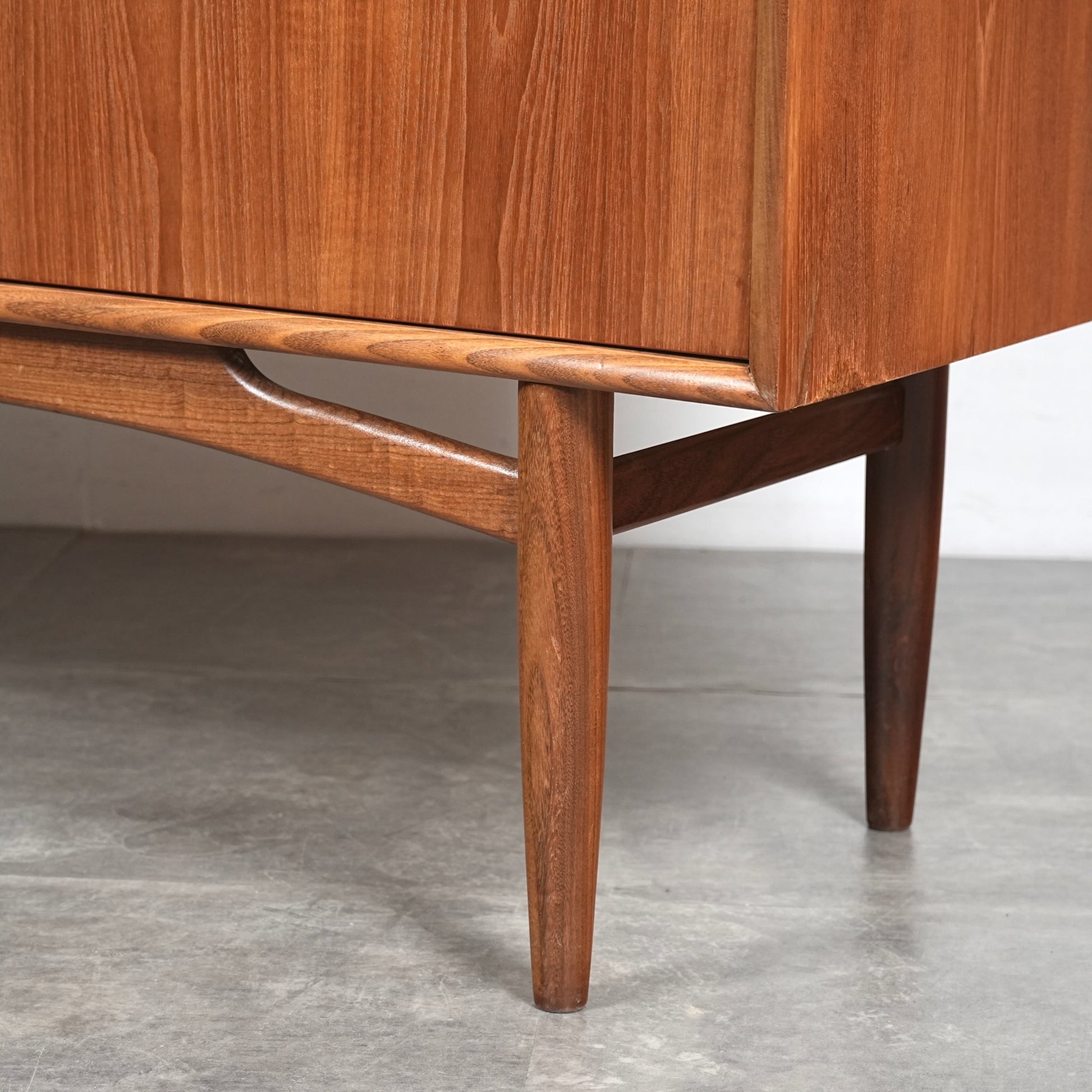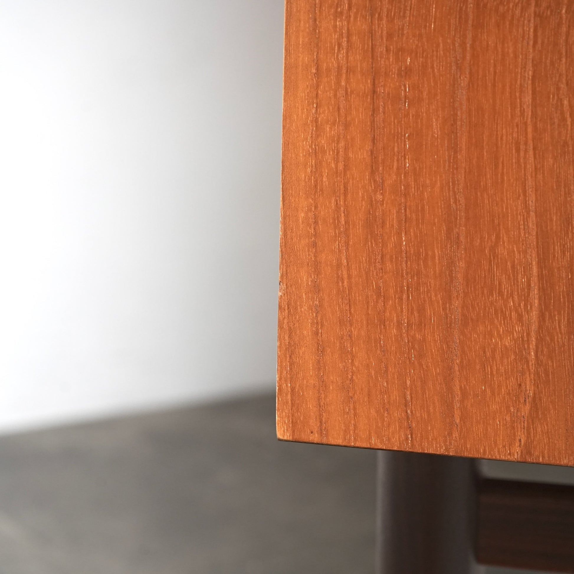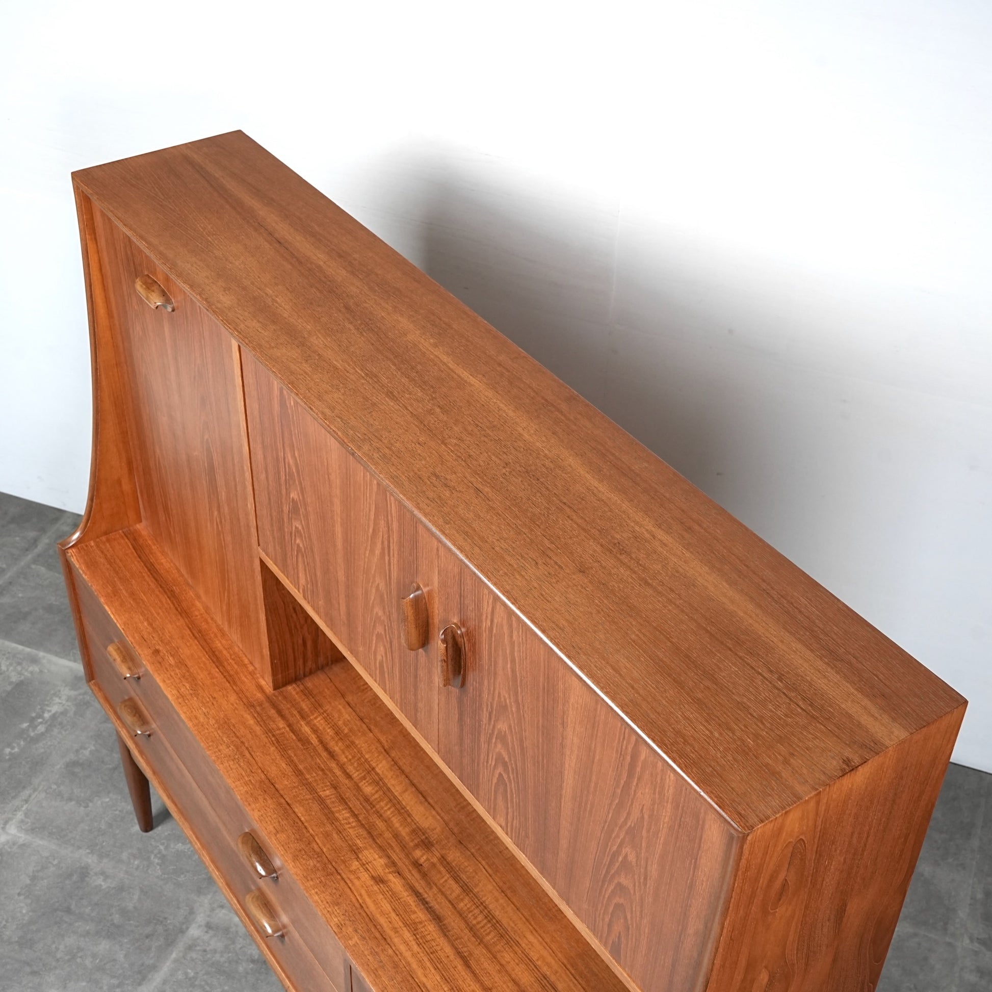 良質なチーク材を全体に使用しており、取手や脚部のシャープかつ美しいフォルムは、英国ミッドセンチュリーの名作と呼ぶに相応しい見事なデザインです。