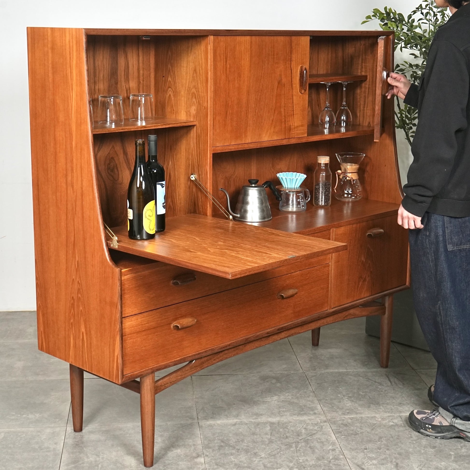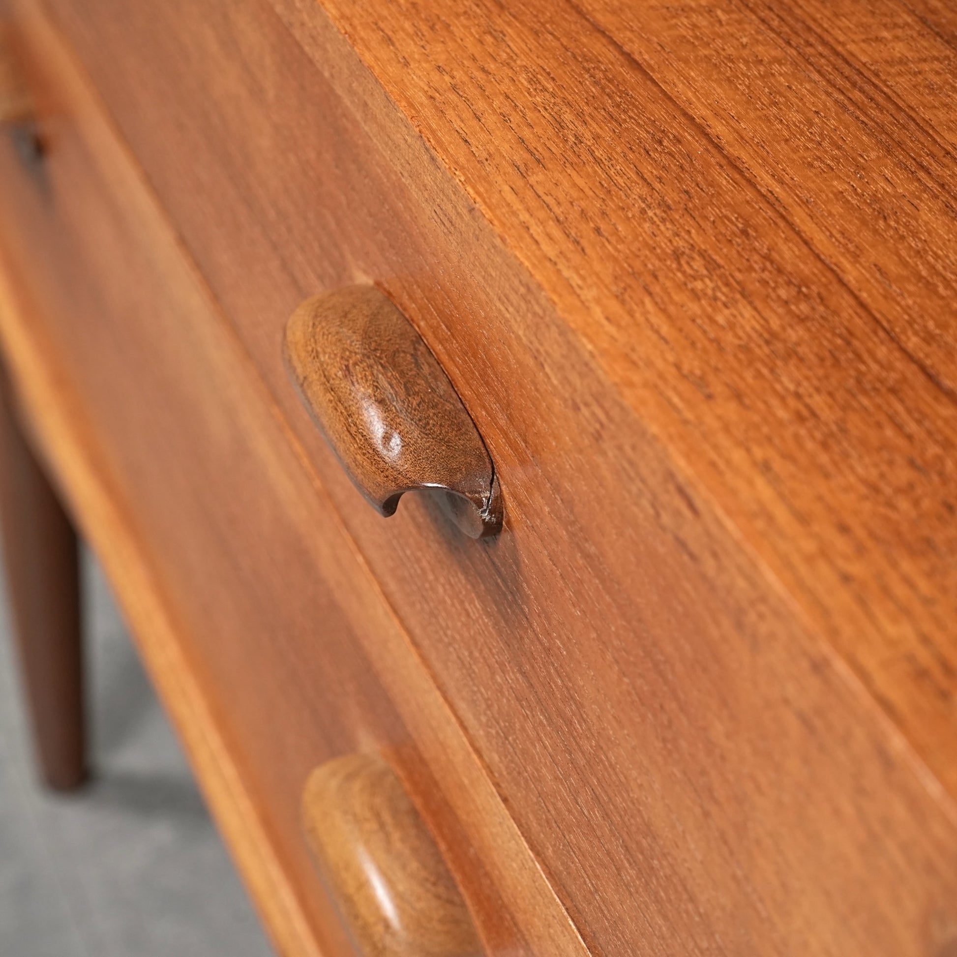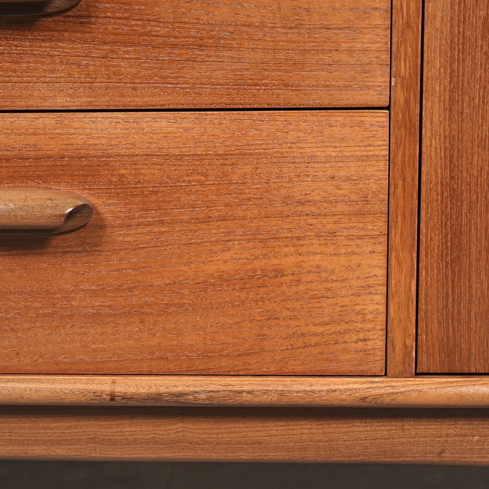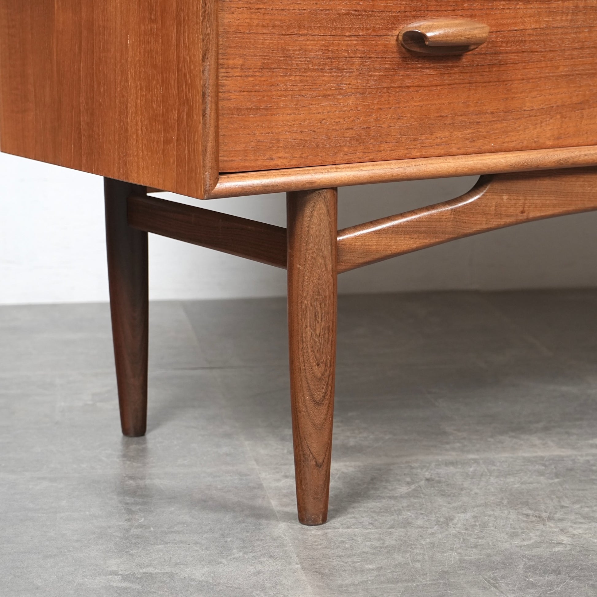 良質なチーク材を全体に使用しており、取手や脚部のシャープかつ美しいフォルムは、英国ミッドセンチュリーの名作と呼ぶに相応しい見事なデザインです。