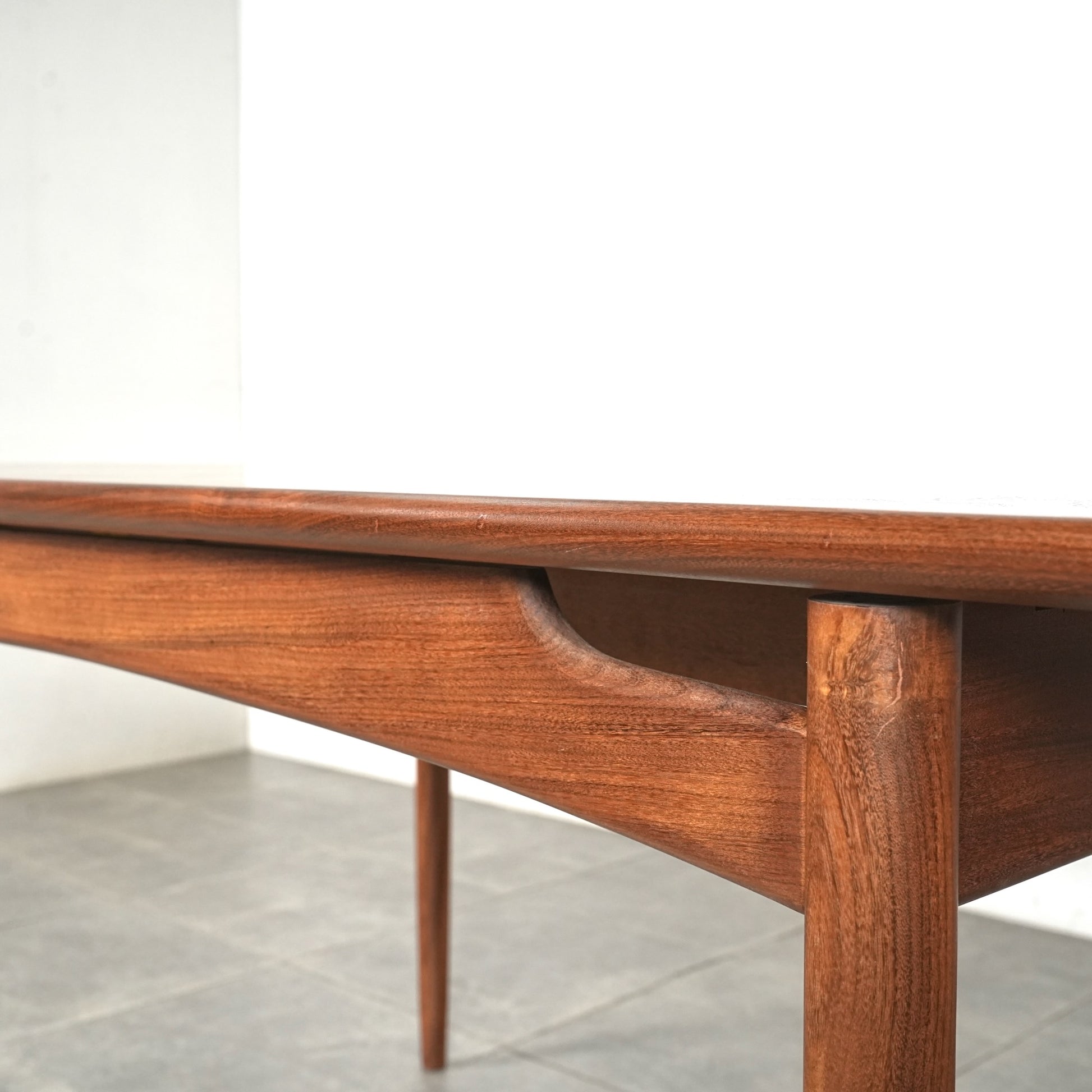 良質なチーク材を全体に使用しており、天板のさり気ない作り込みや脚部のシャープで美しいフォルムなど、英国ヴィンテージの名作と呼ぶに相応しい見事なデザインです。