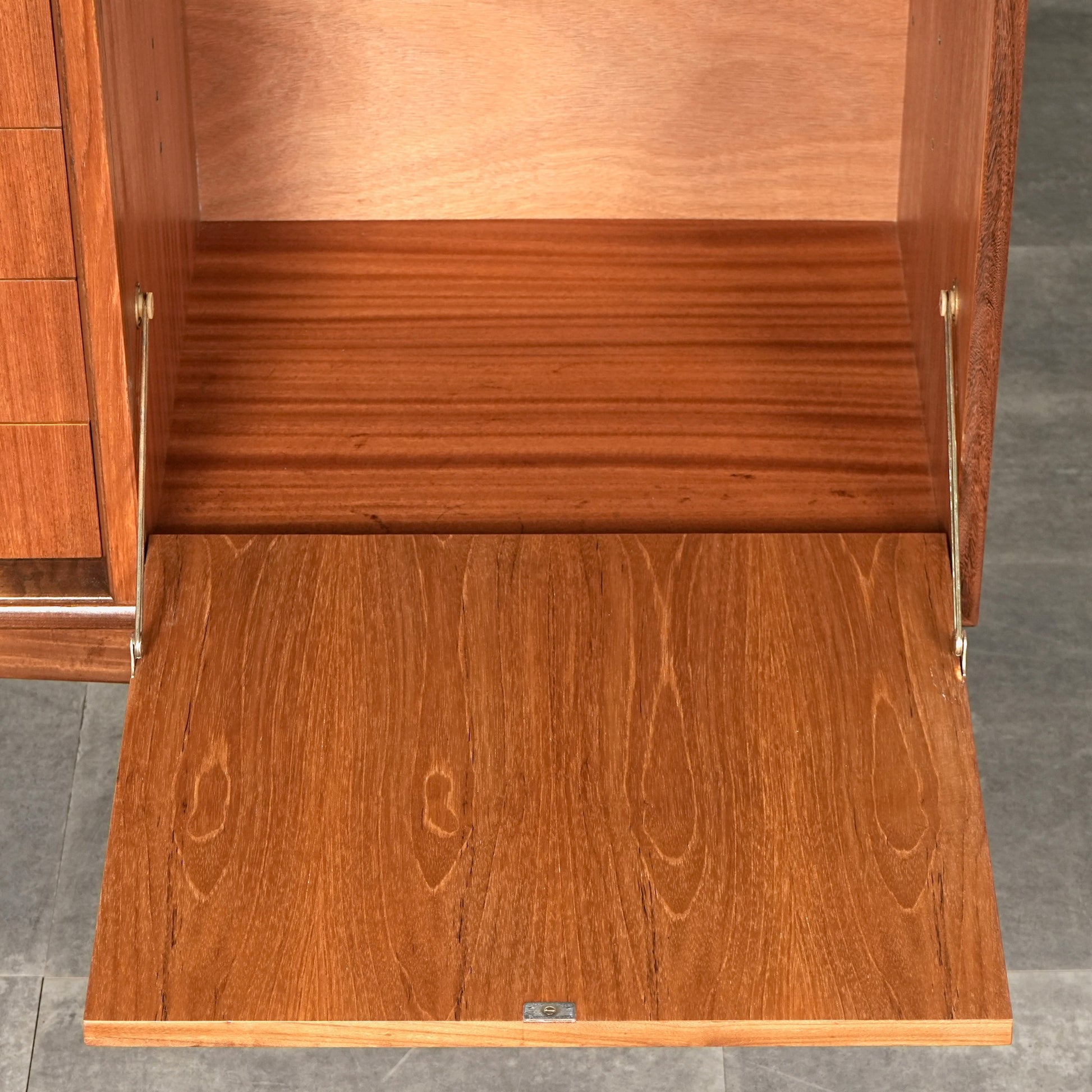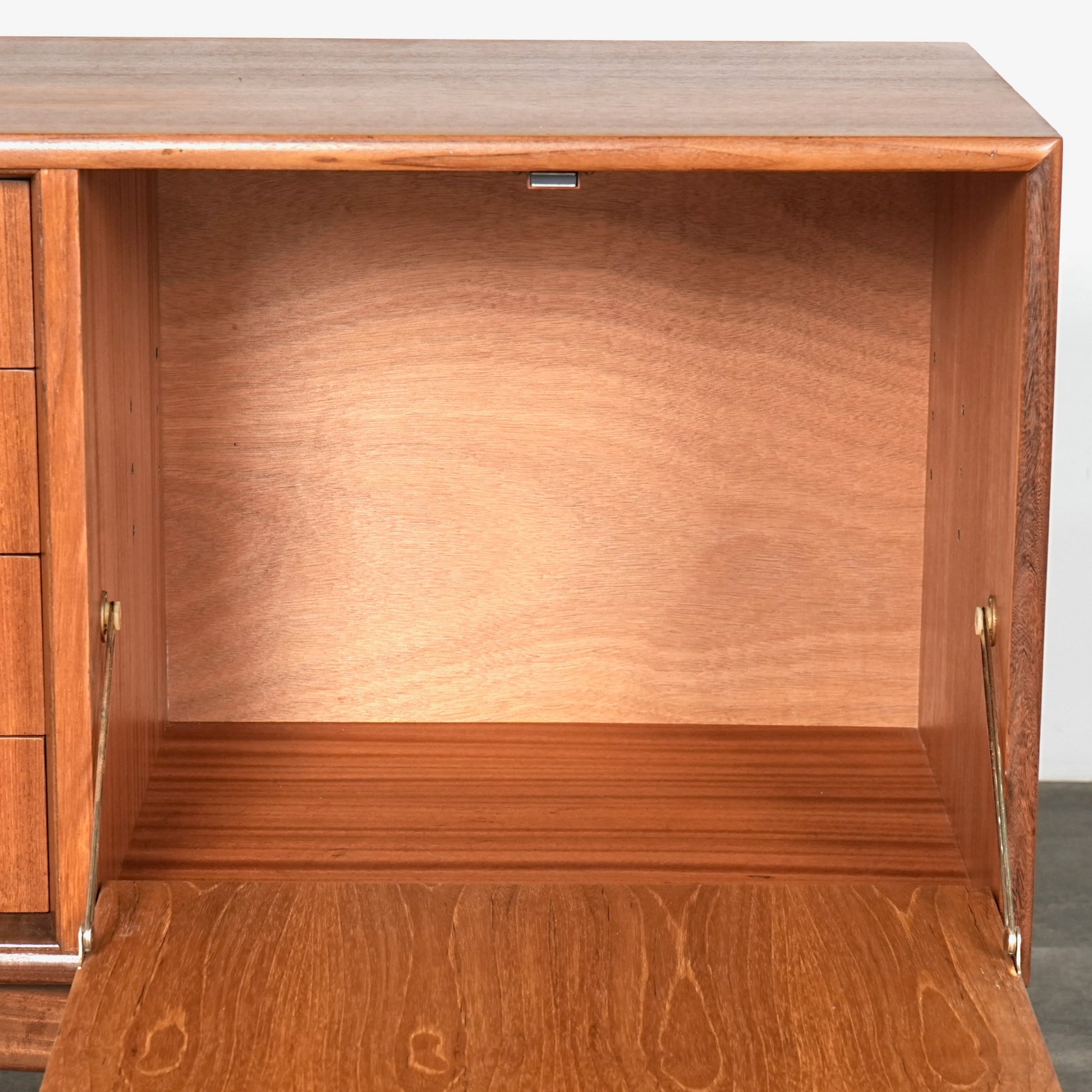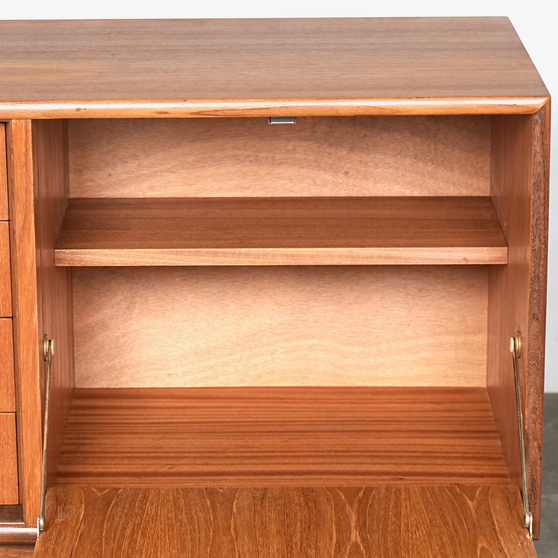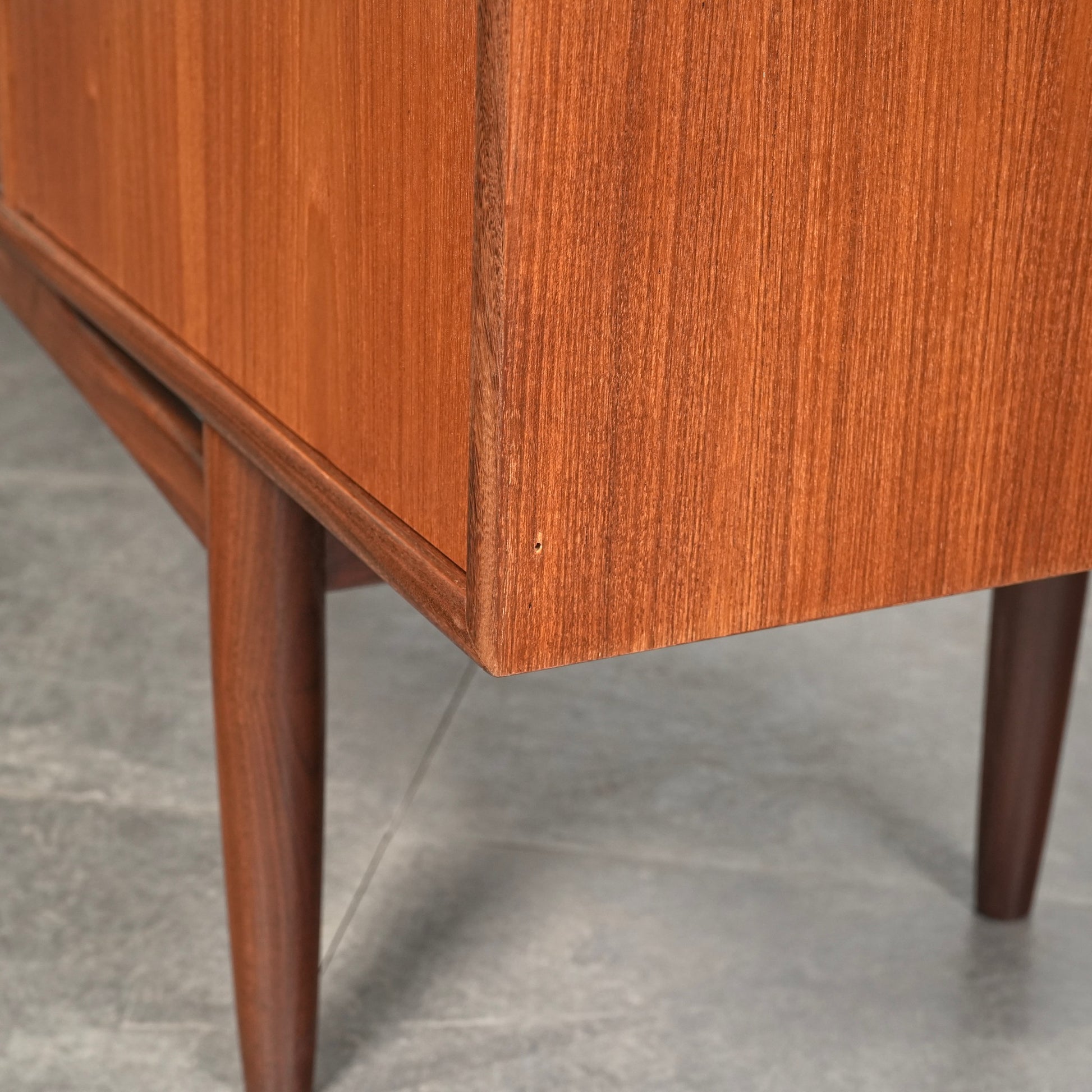 良質なチーク材を全体に使用しており、取手や脚部のシャープで美しいフォルムや細部の丁寧な作り込みなど、英国ヴィンテージの名作と呼ぶに相応しいハイグレードなアイテムです。