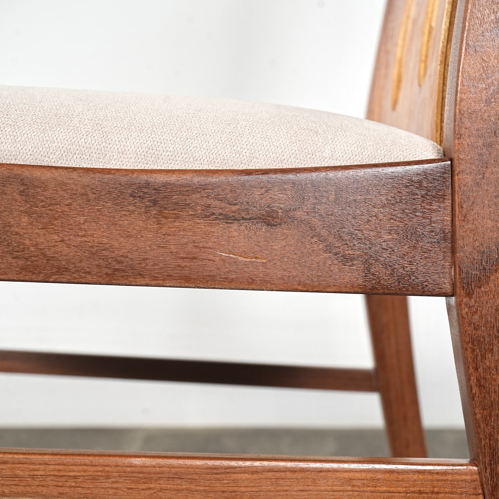 ガタつきやグラつきの修正はもちろんのこと、フレームはしっかりと磨き上げ、座面も張替済みとなりますので快適な座り心地。