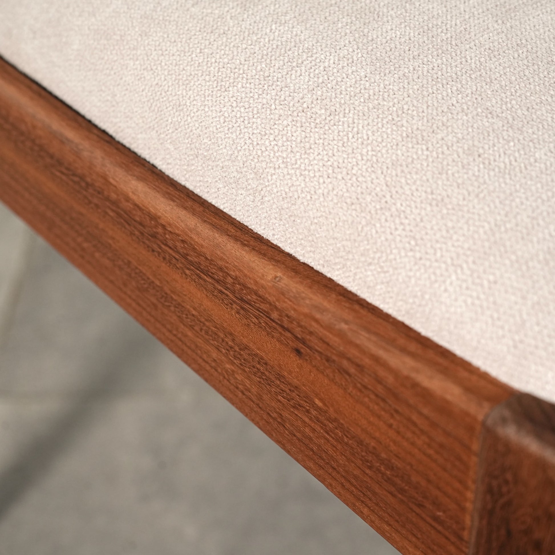 高品質なチーク材のフレームは美しいフォルムで、背もたれはプライウッドを使用したユニークなデザイン。