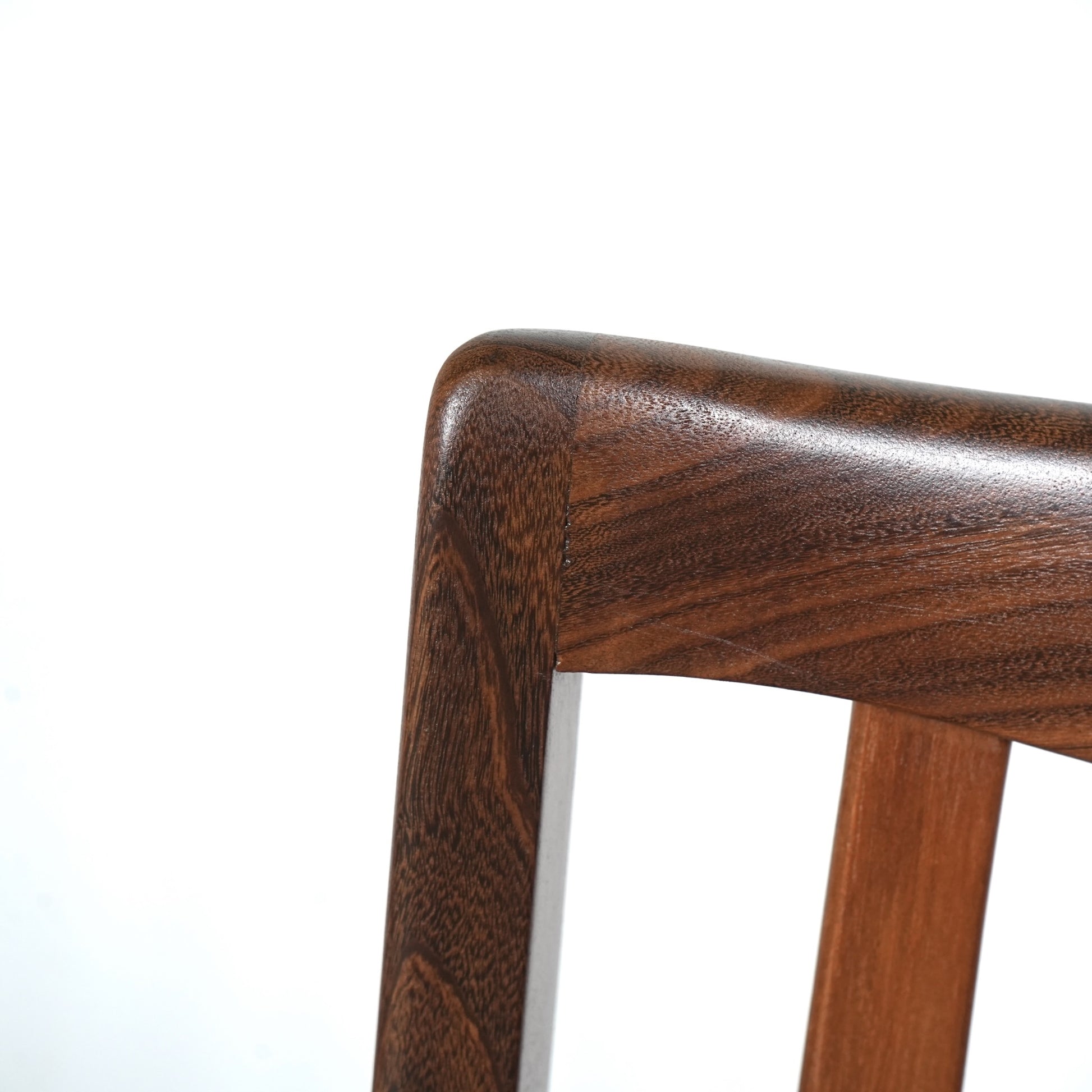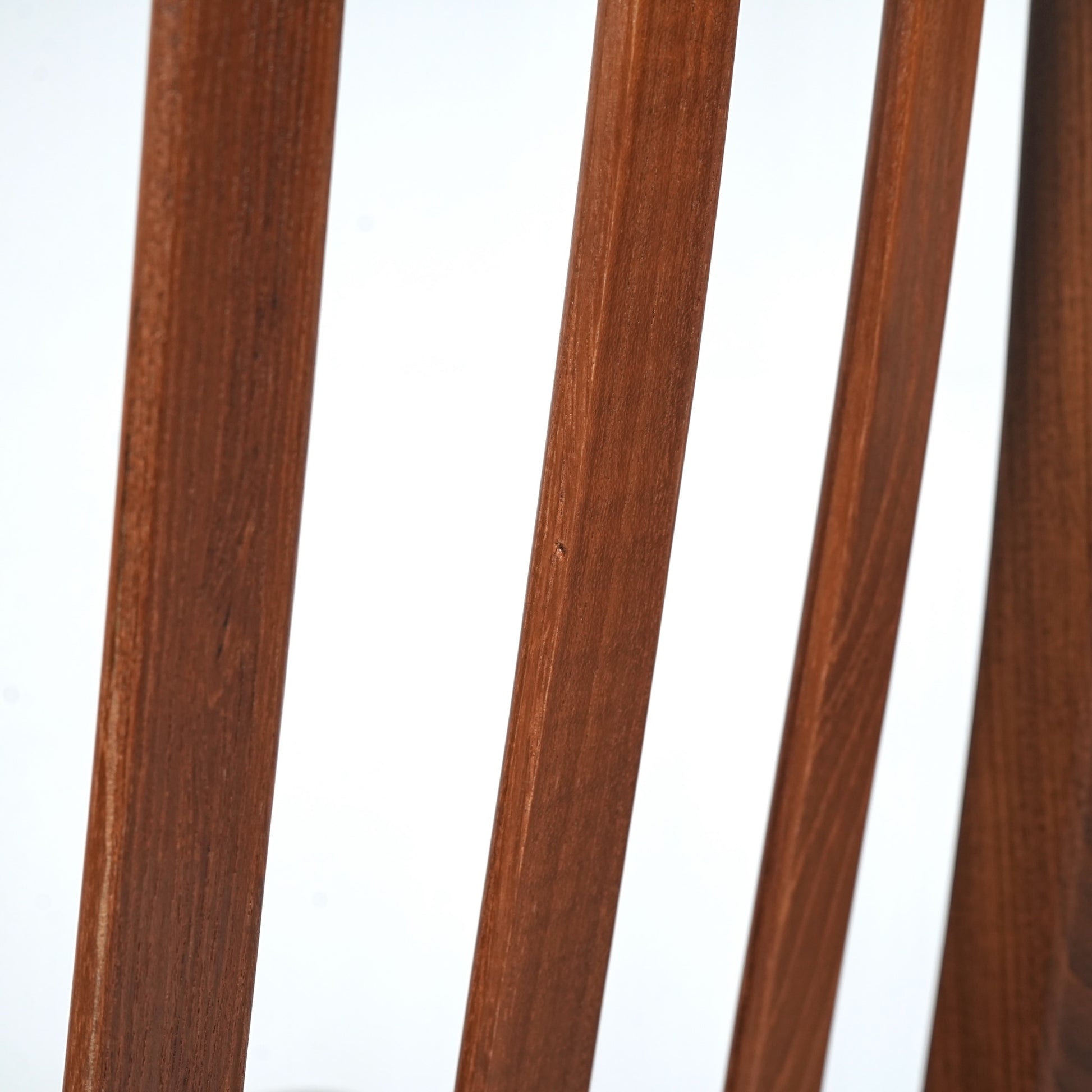 シンプルなデザインだからこそ際立つ上質なチークの質感や、背もたれの美しいラインが印象的です。