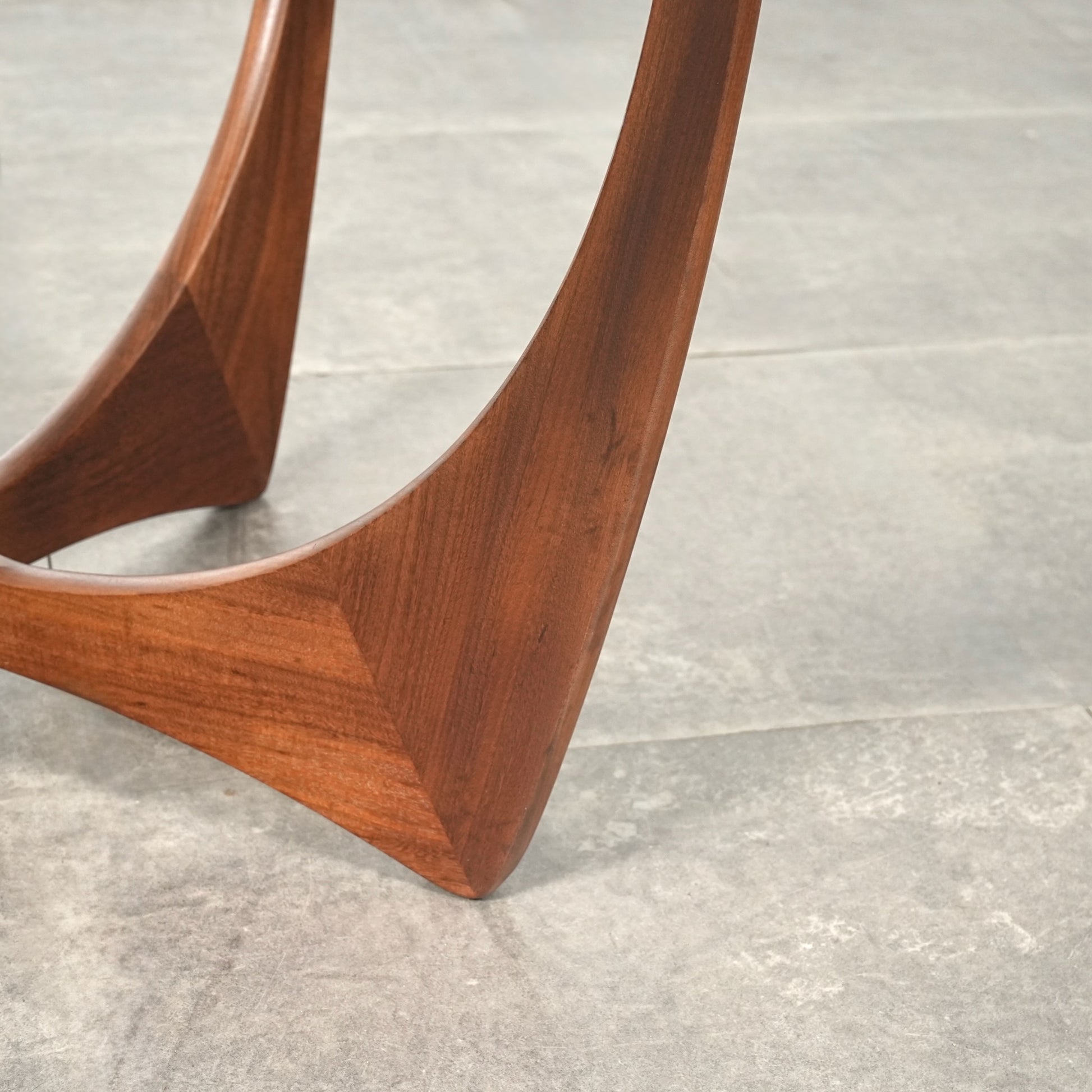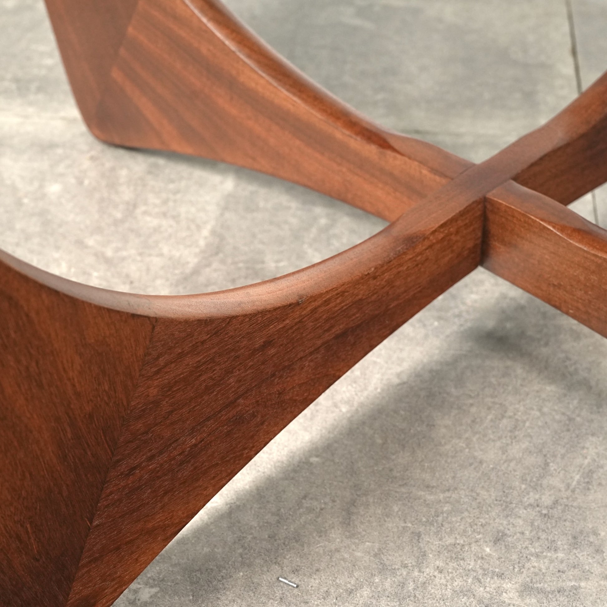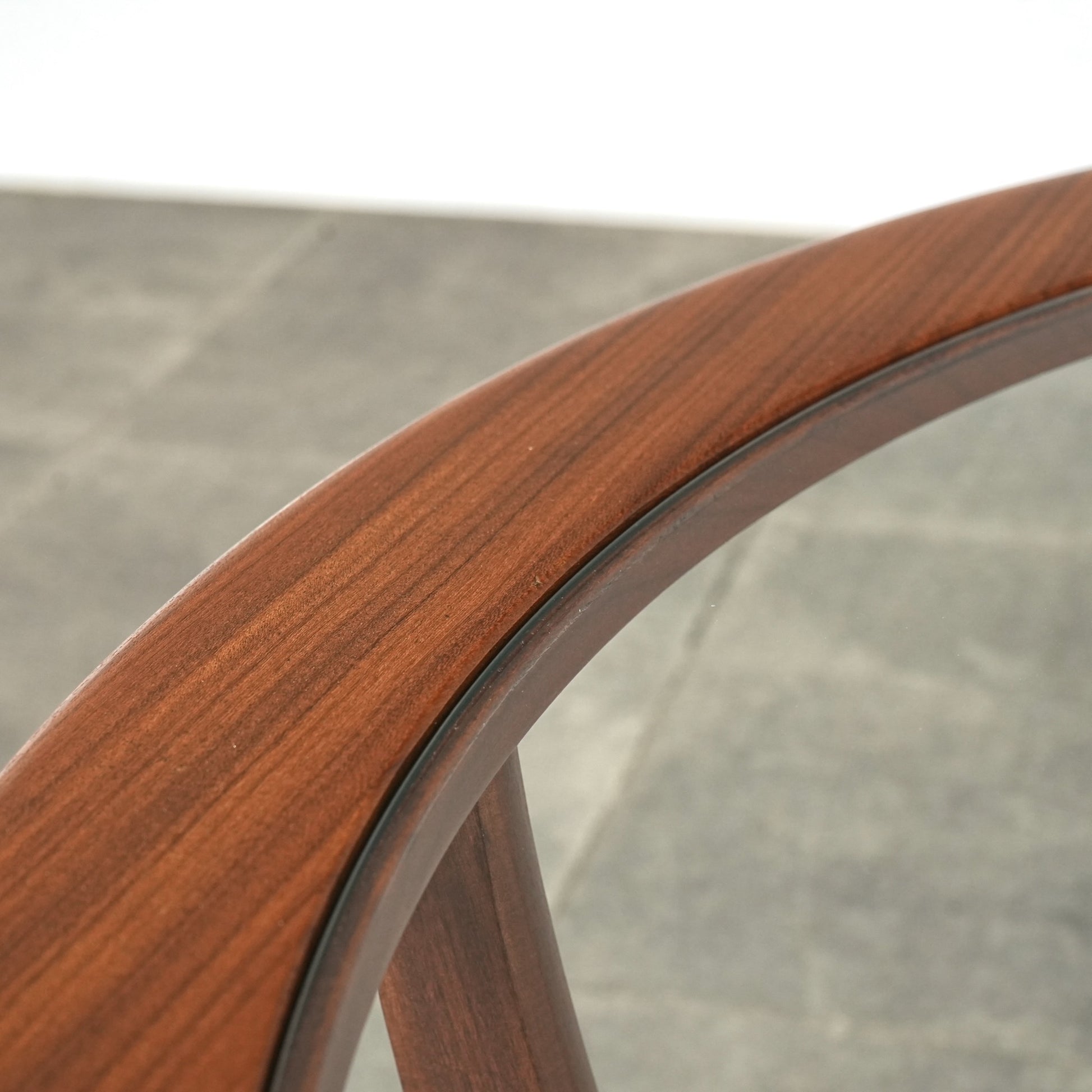 濃淡のはっきりとした高品質のチークを使用したフレームは全体の美しい曲線が印象的で、特に脚部はまさに圧巻のデザイン。