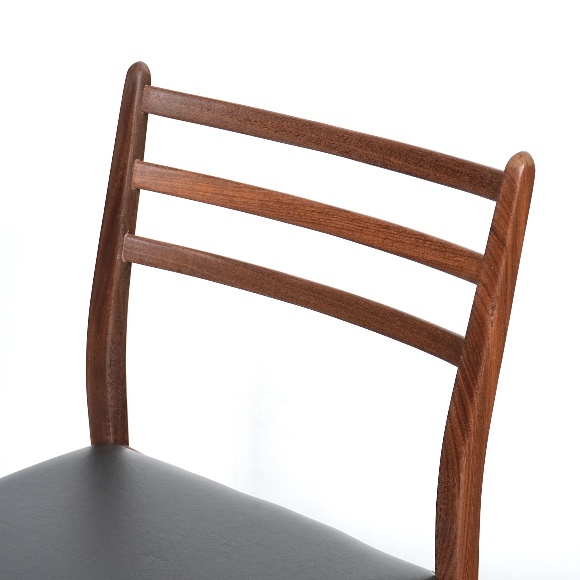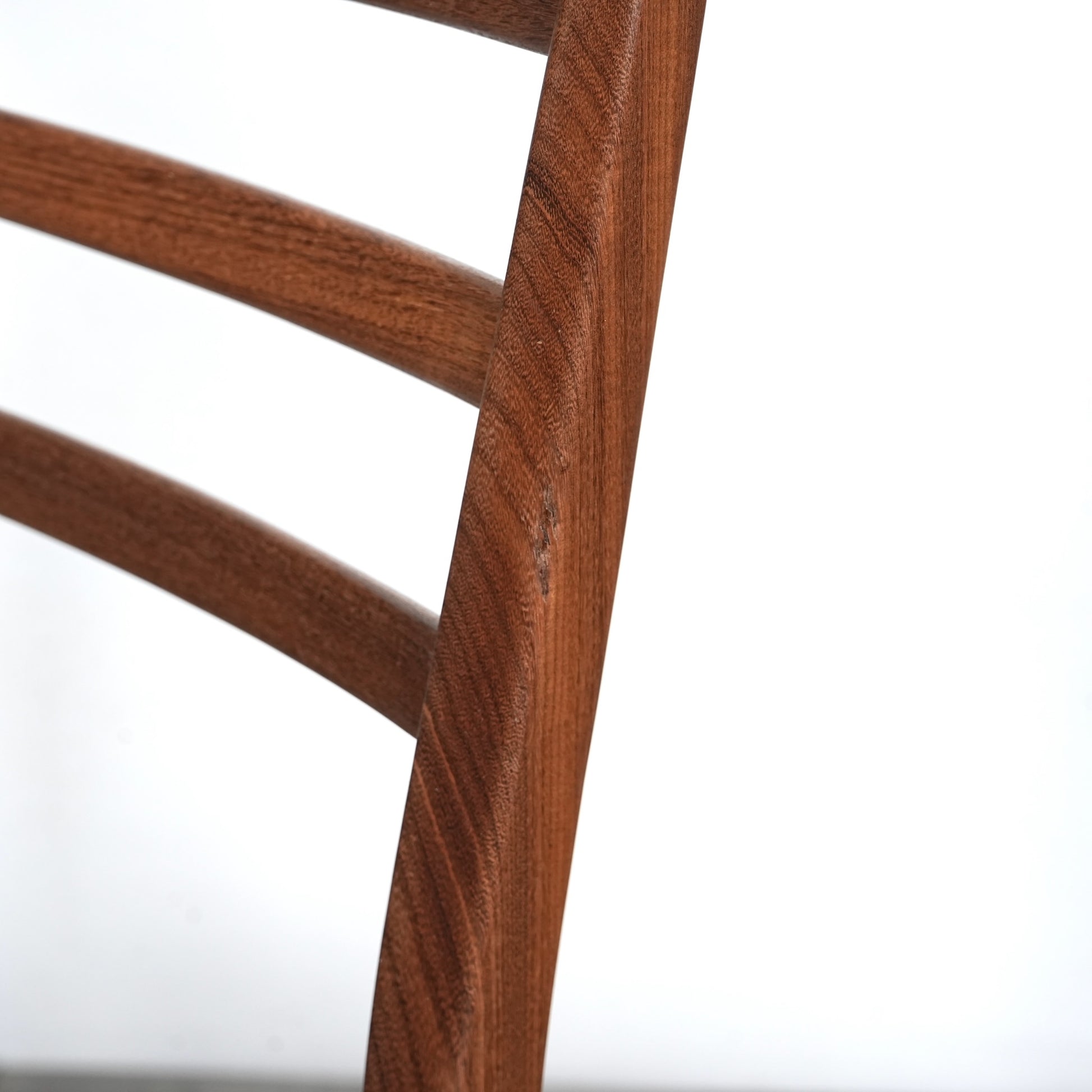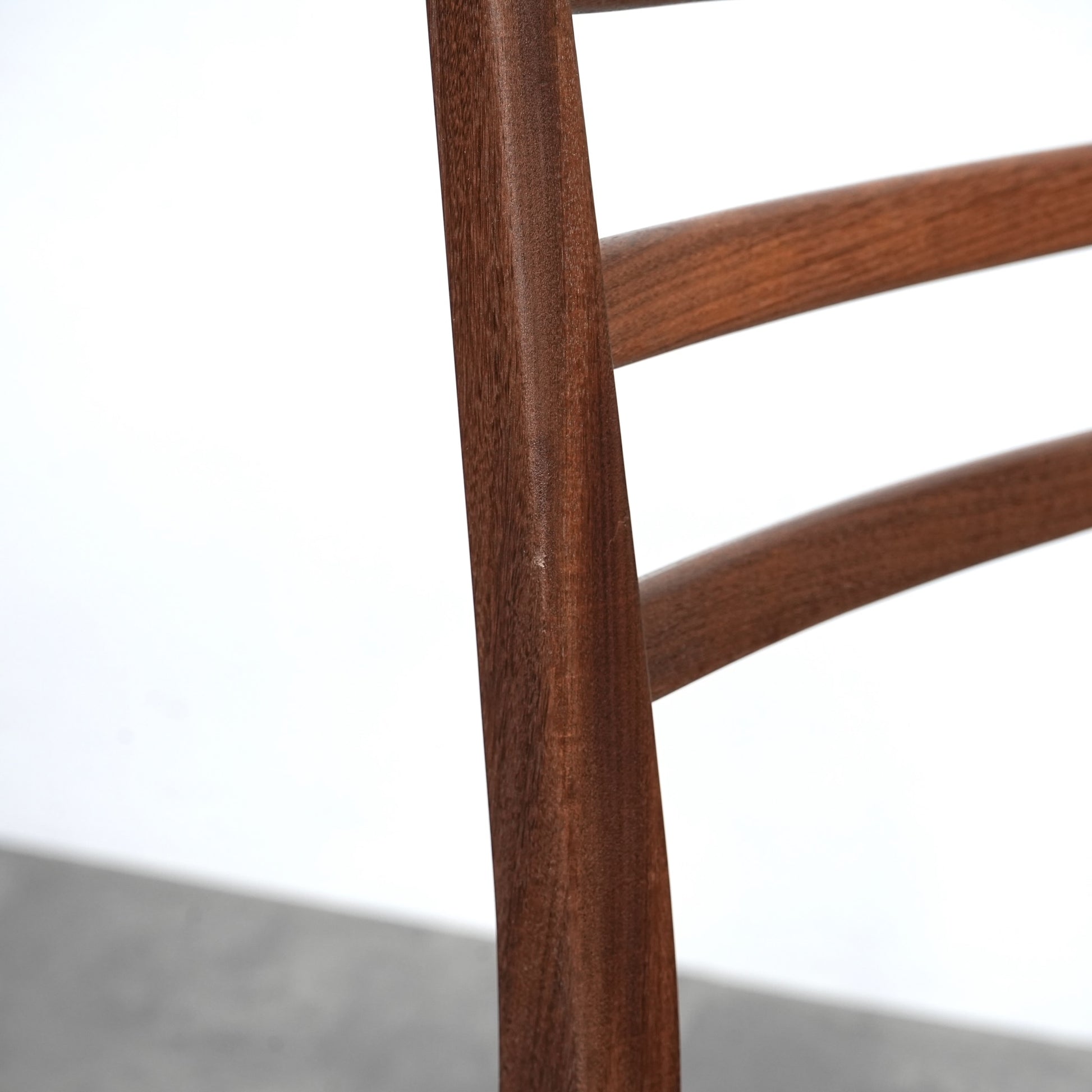 優雅な曲線を描く背もたれはラダーバックと呼ばれるデザインで、ミニマルな佇まいのに良いアクセントとなっています。