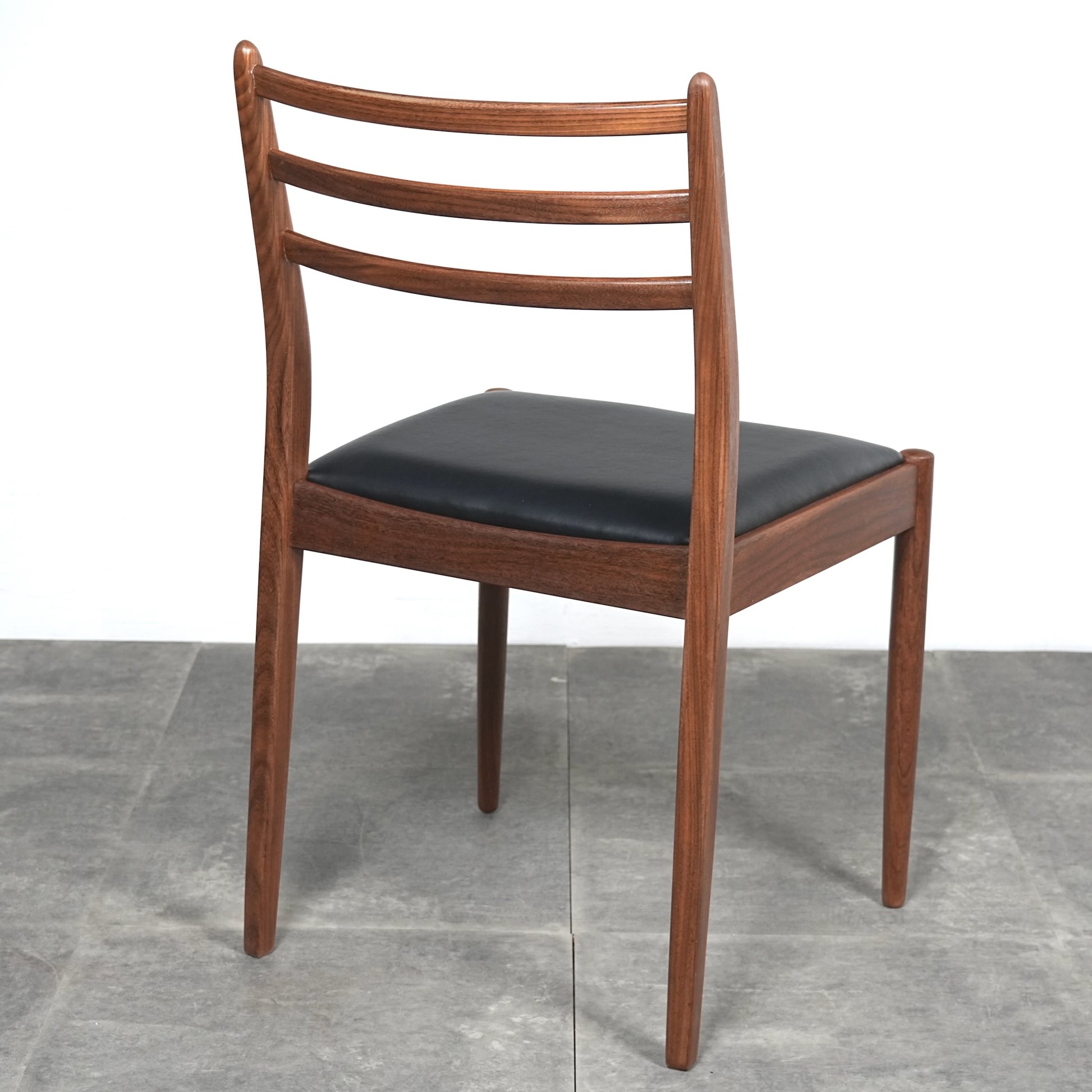 優雅な曲線を描く背もたれはラダーバックと呼ばれるデザインで、ミニマルな佇まいのに良いアクセントとなっています。
