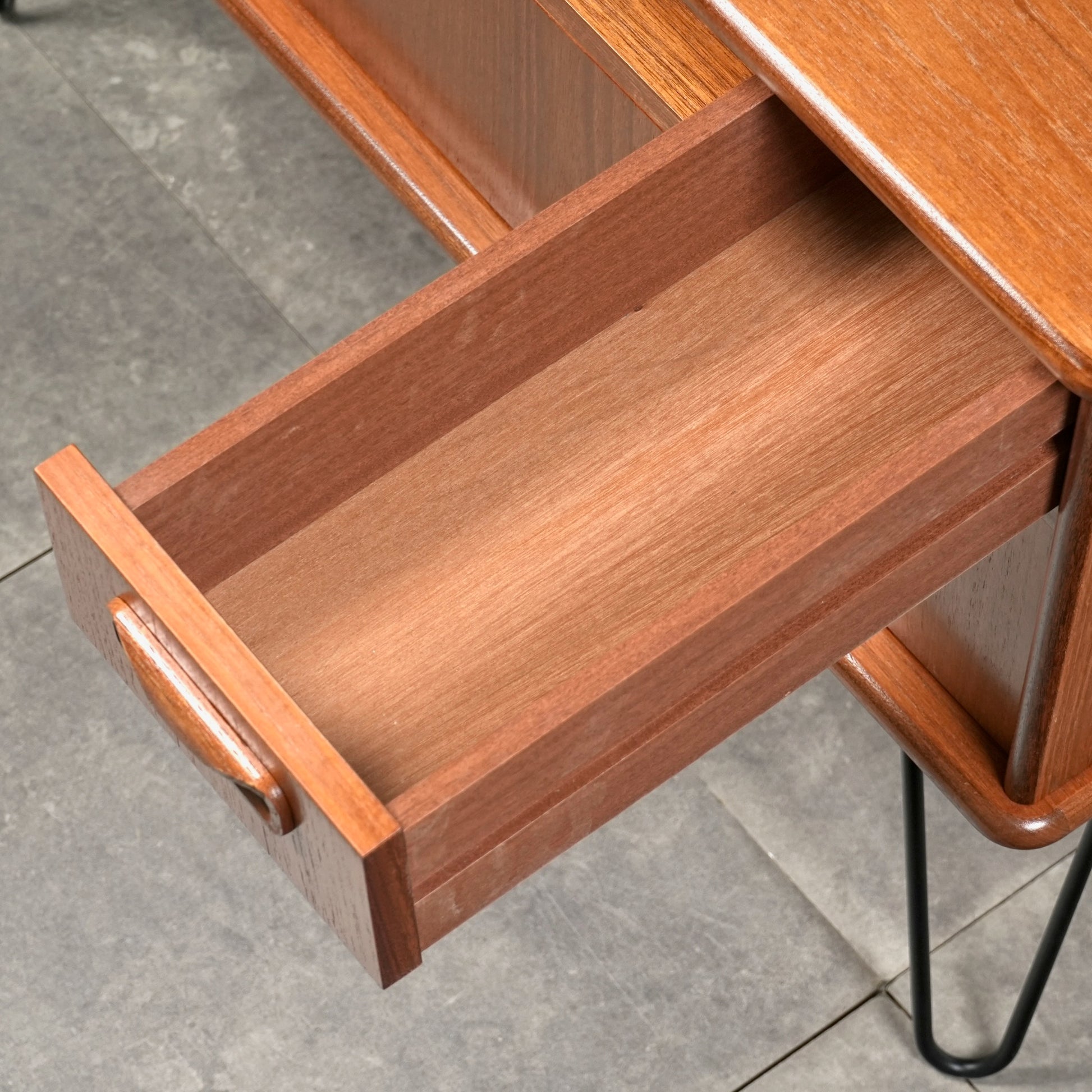 上質なチーク材の木目と質感に加えて、Frescoシリーズの特徴でもある削り出しの可愛らしい取手が良いアクセントになった美しいデザイン。