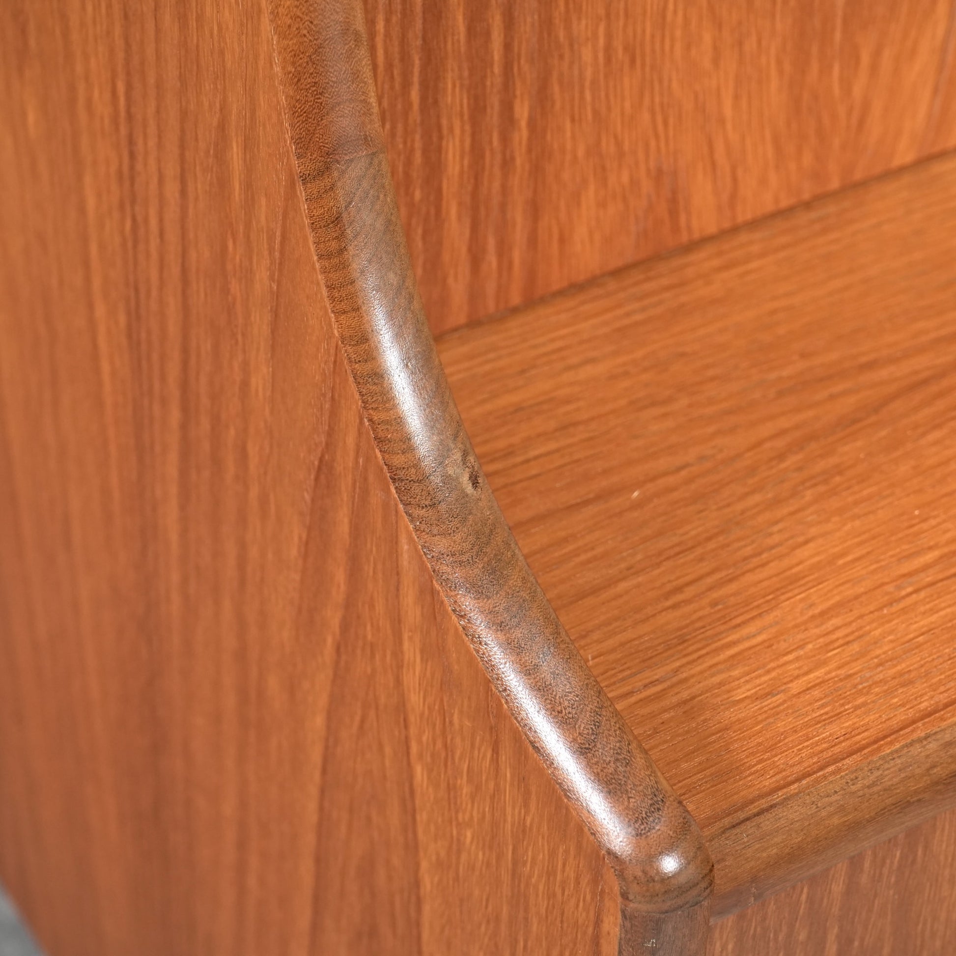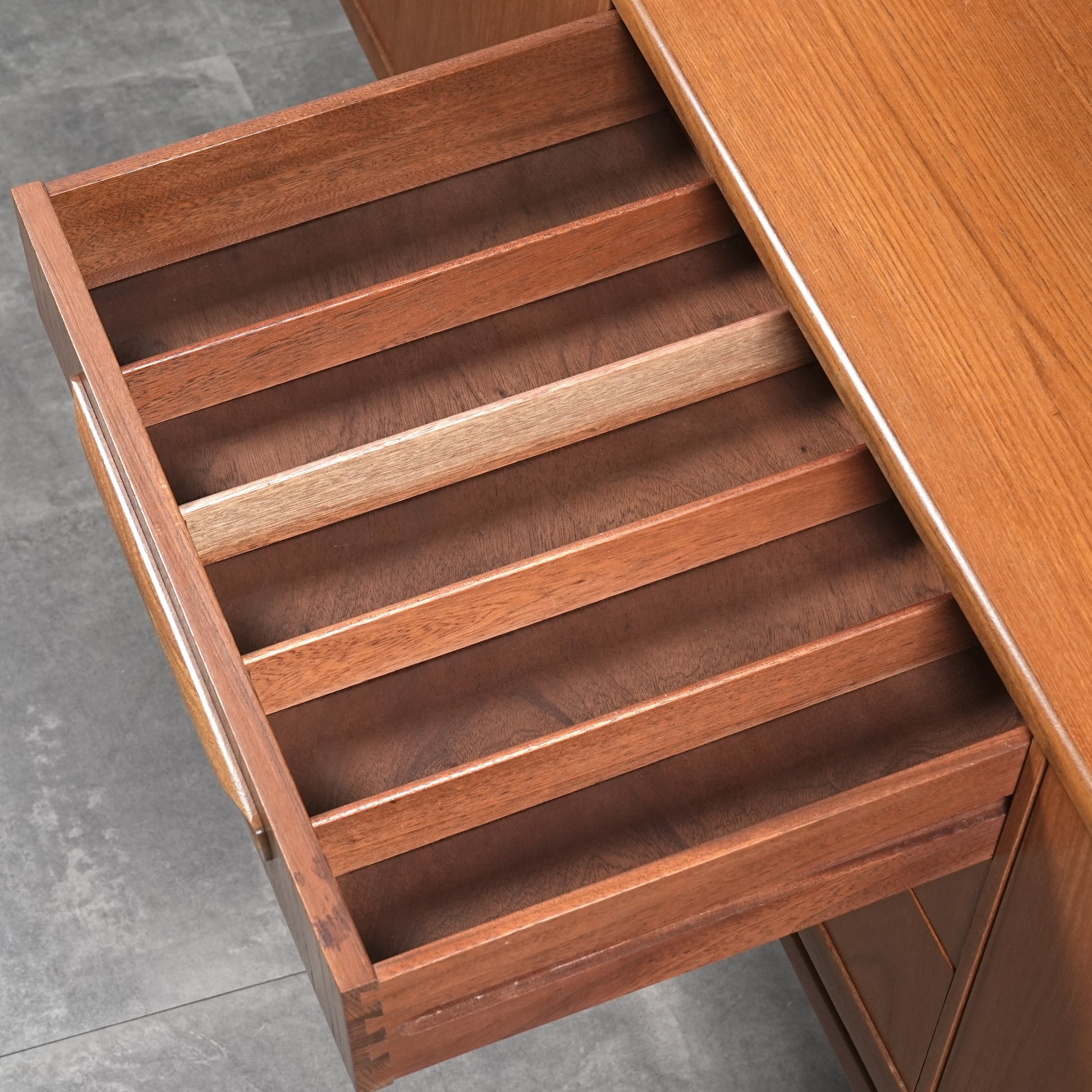 シンメトリー(左右対称)でバランスの良いプロポーションに中に 、良質なチーク材の質感やFrescoシリーズの特徴でもある削り出しの可愛らしい取手が光る、本当に見事なデザインです。
