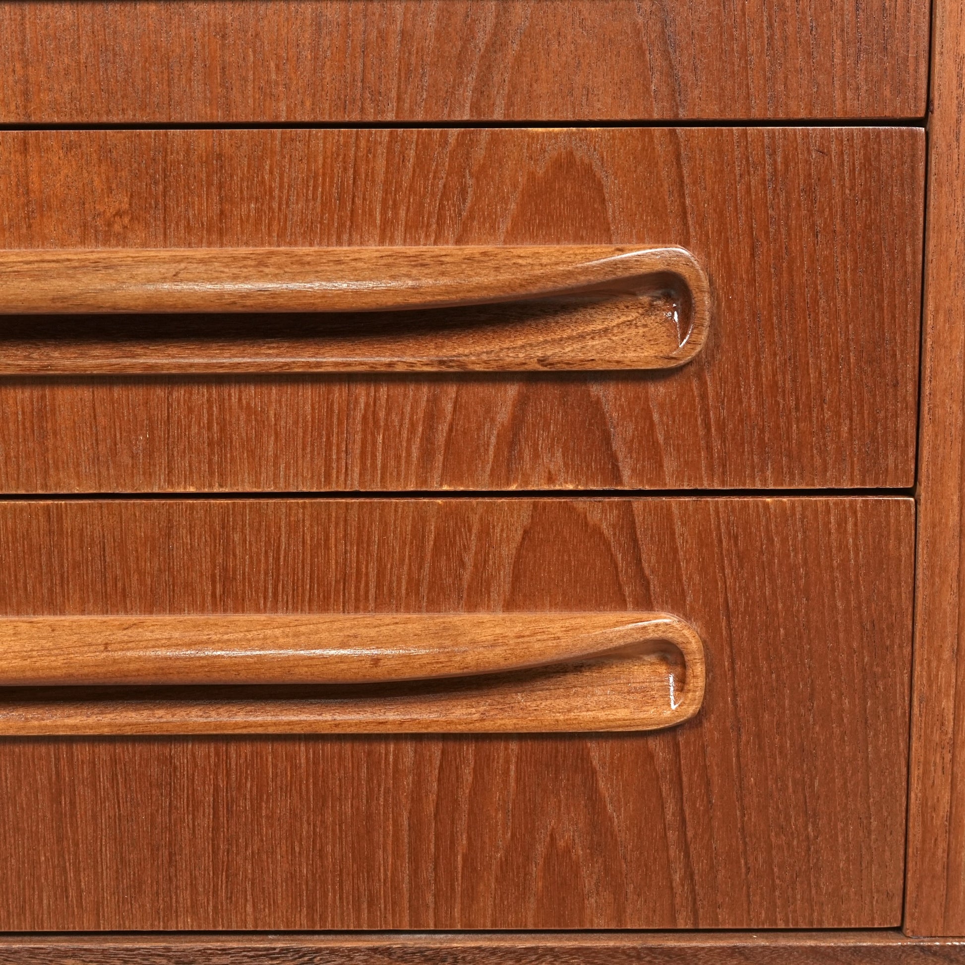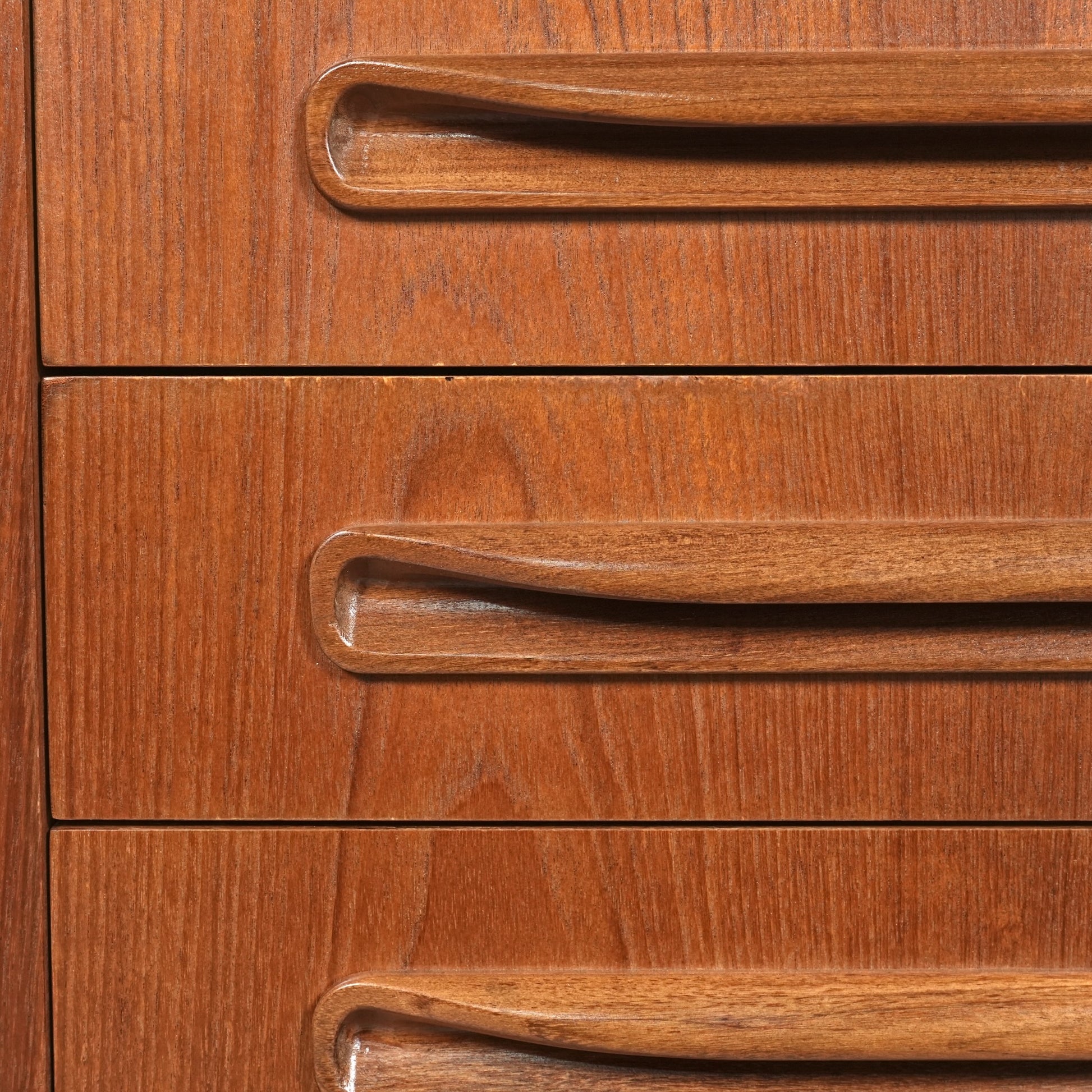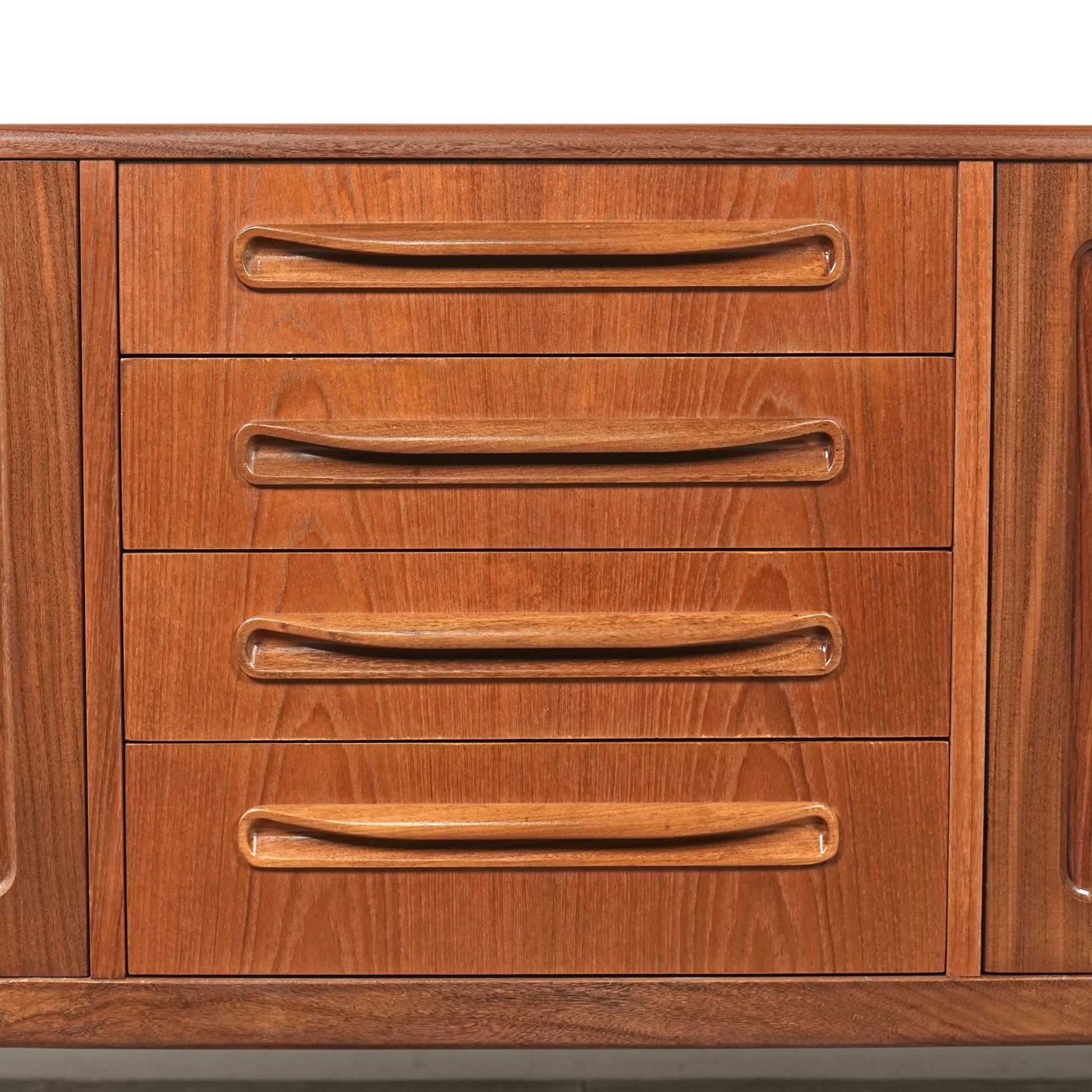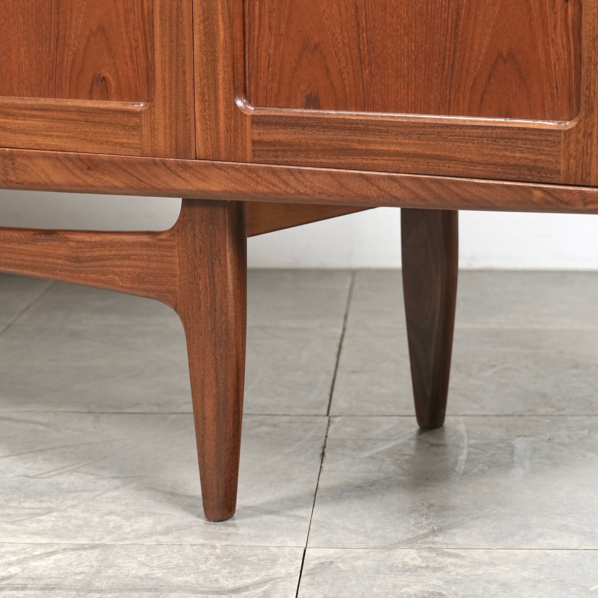 現地ではLong John(ロングジョン)という相性で親しまれている名作サイドボードで、チーク材の木目と質感に加えて、Frescoシリーズの特徴でもある削り出しの可愛らしい取手が良いアクセントになった流石の美しいデザイン。