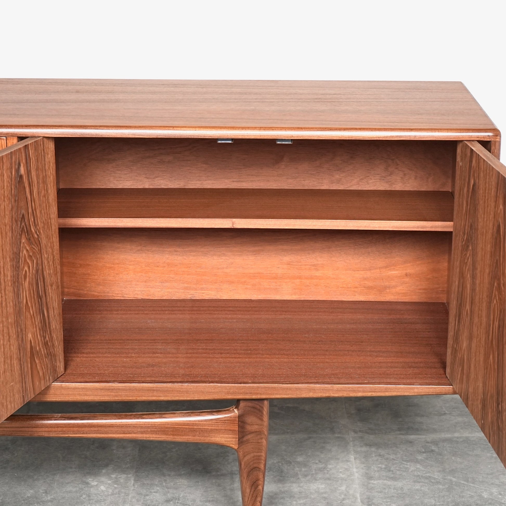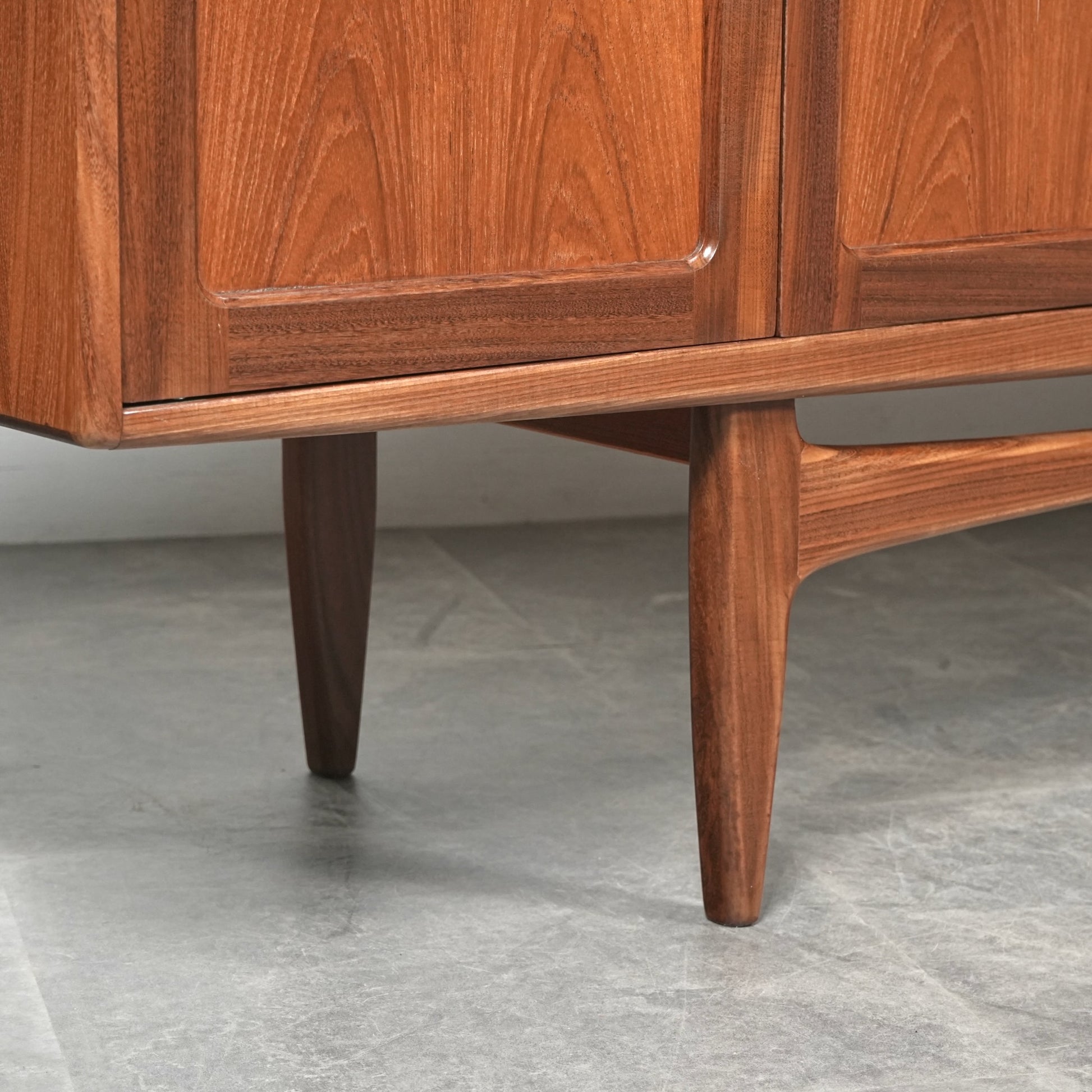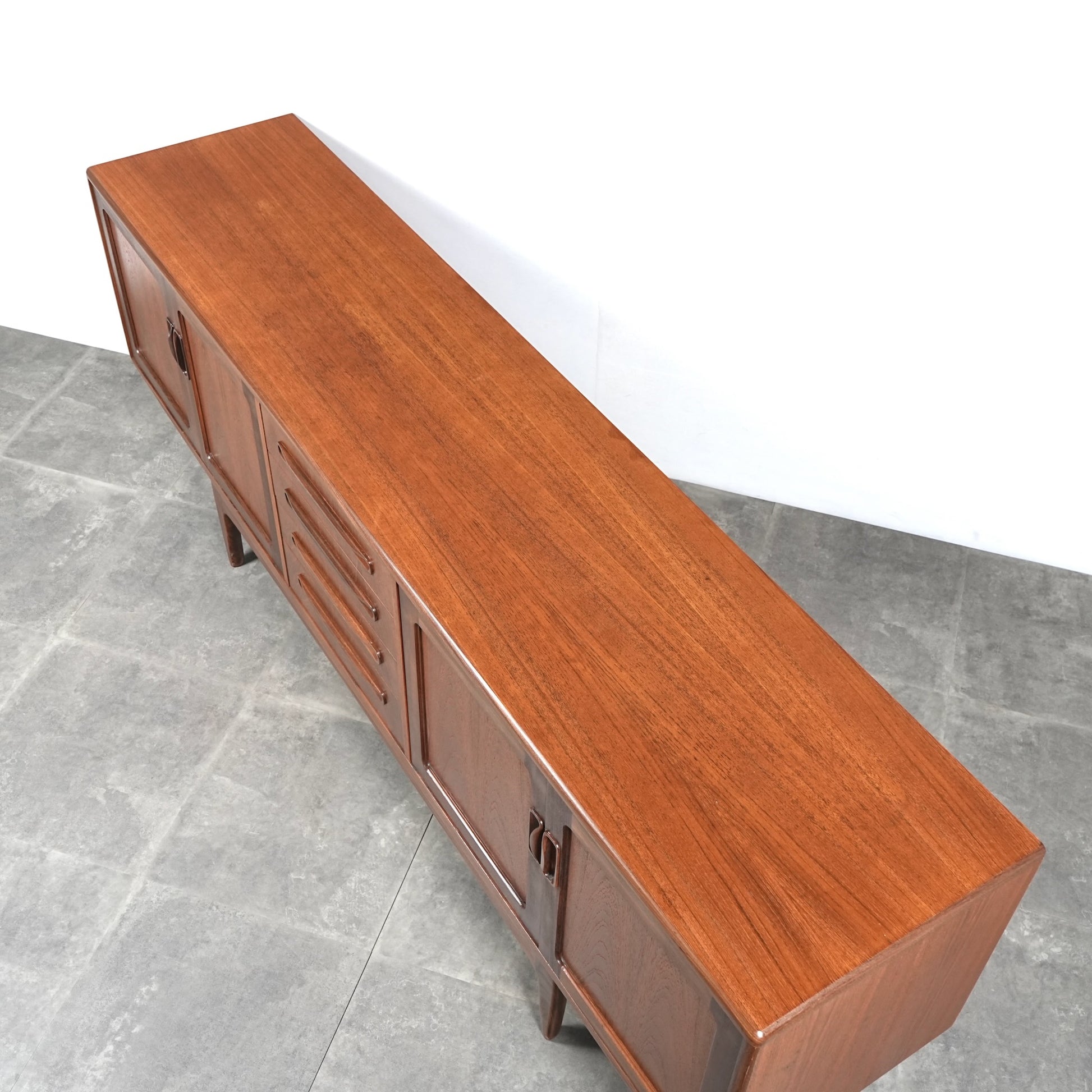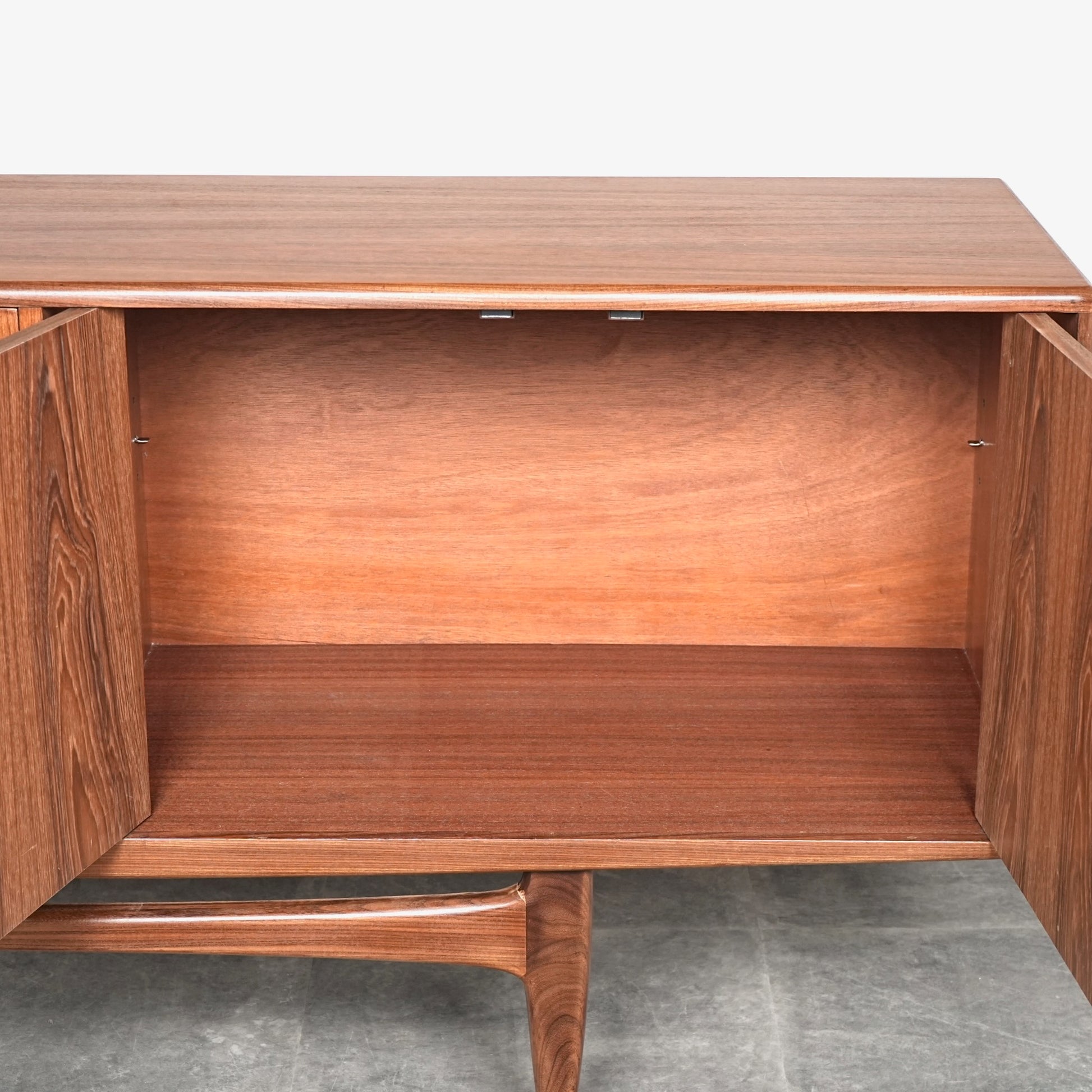 現地ではLong John(ロングジョン)という相性で親しまれている名作サイドボードで、チーク材の木目と質感に加えて、Frescoシリーズの特徴でもある削り出しの可愛らしい取手が良いアクセントになった流石の美しいデザイン。