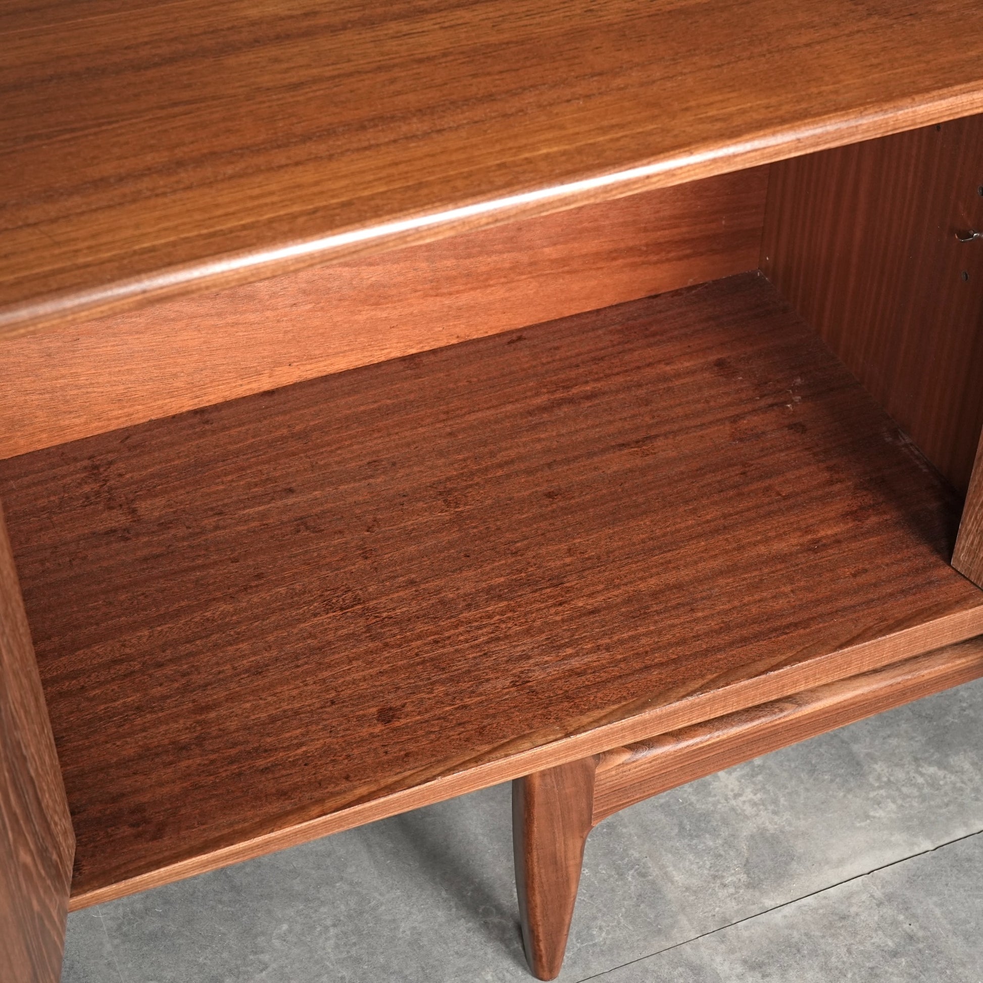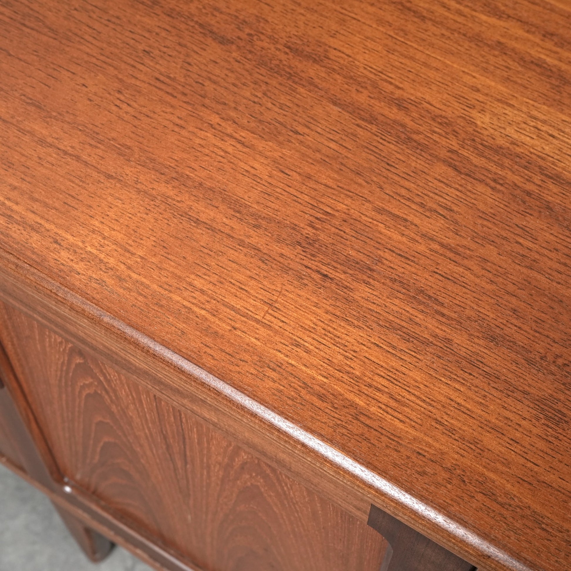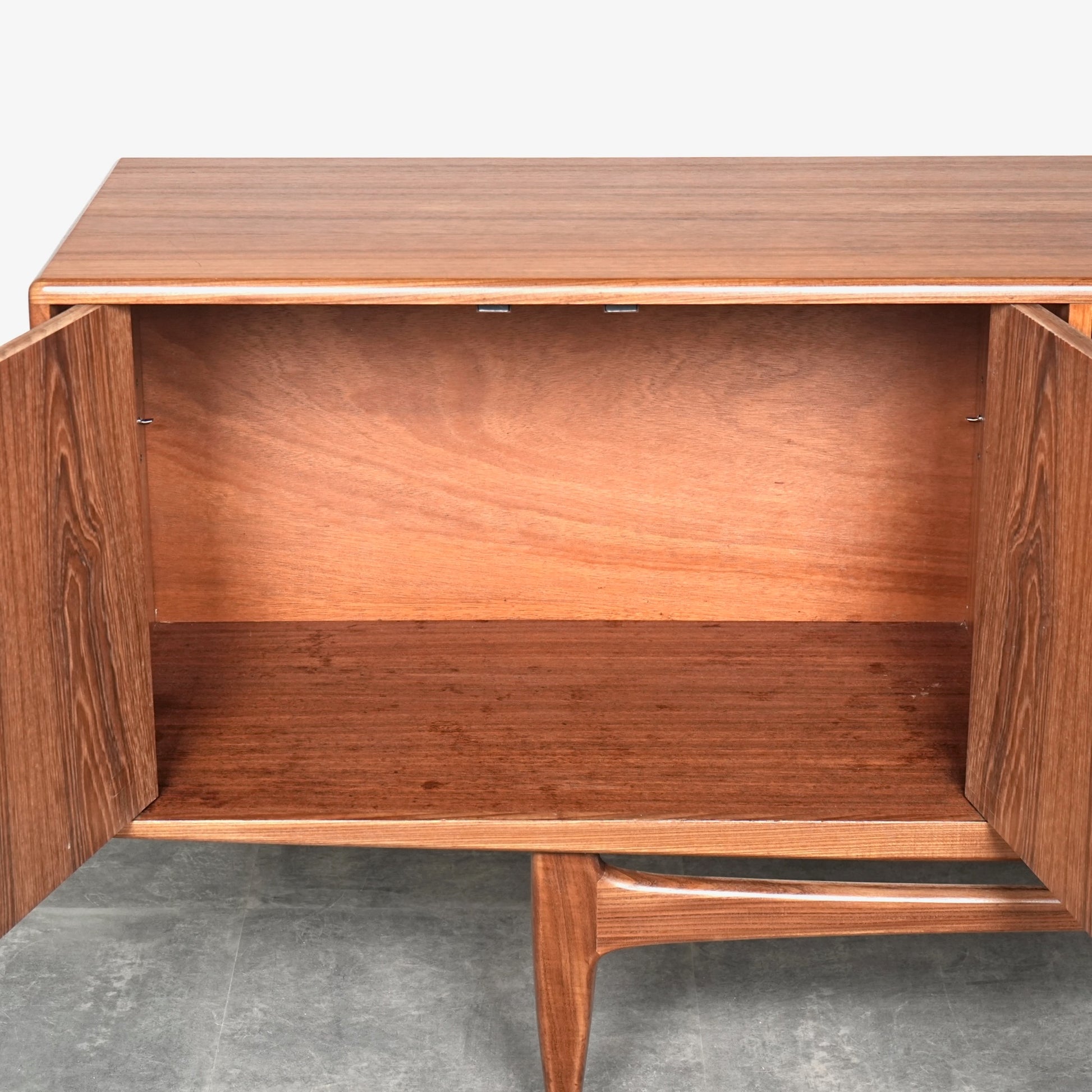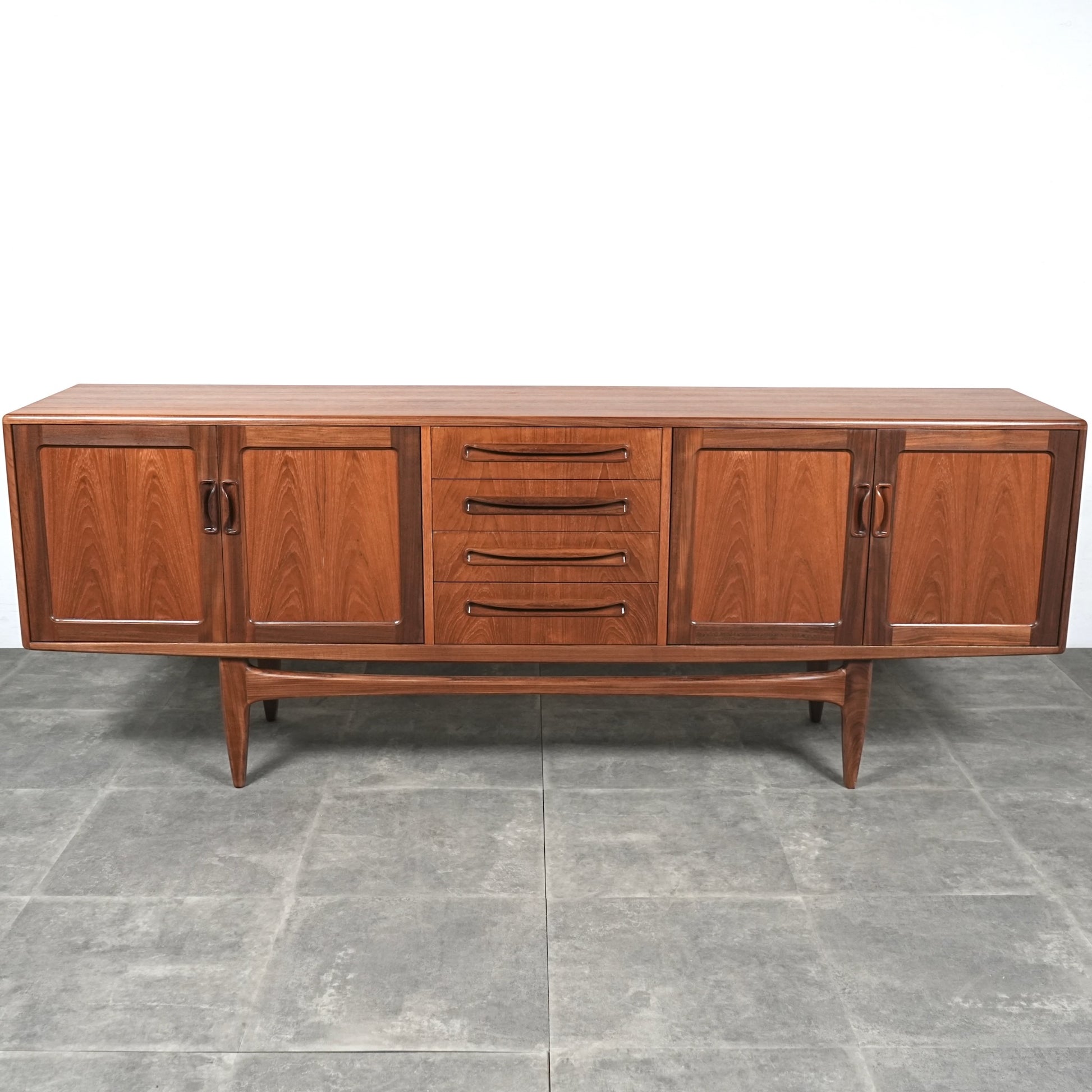 現地ではLong John(ロングジョン)という相性で親しまれている名作サイドボードで、チーク材の木目と質感に加えて、Frescoシリーズの特徴でもある削り出しの可愛らしい取手が良いアクセントになった流石の美しいデザイン。