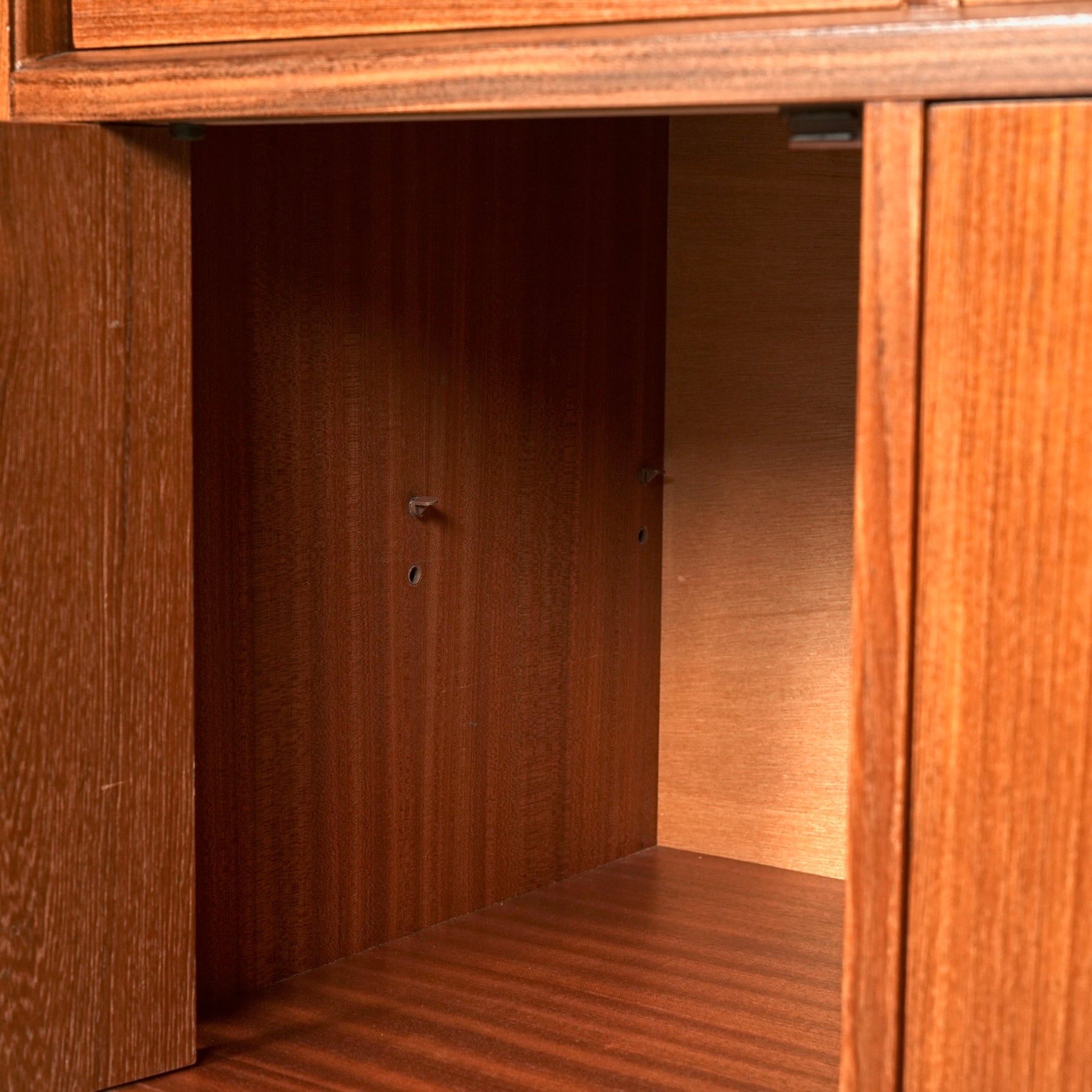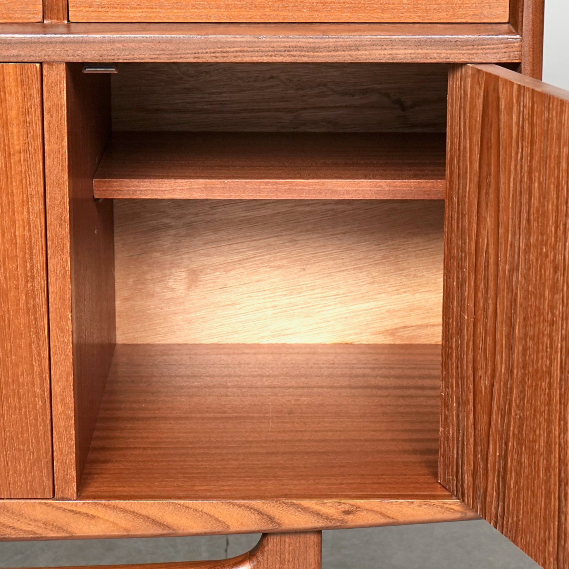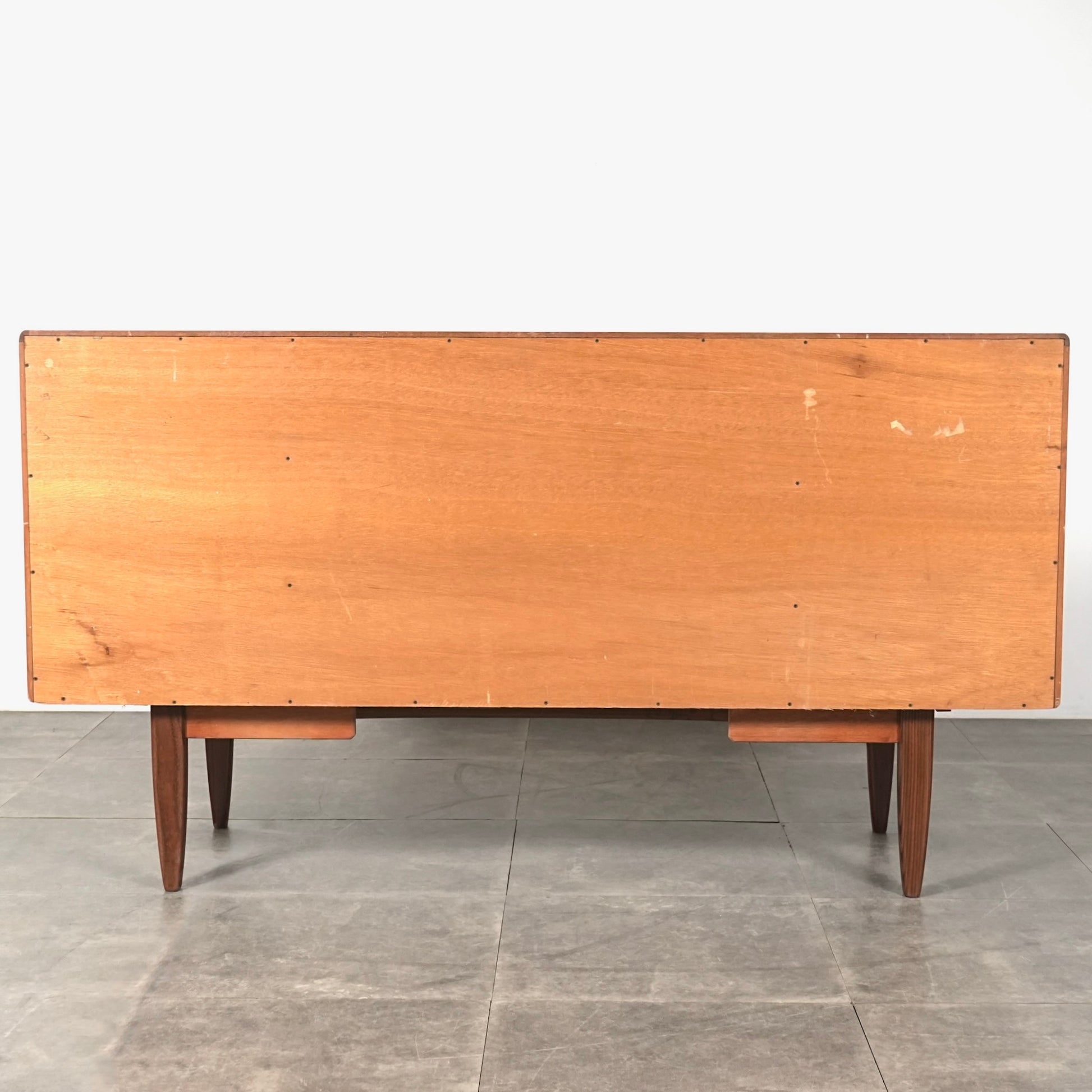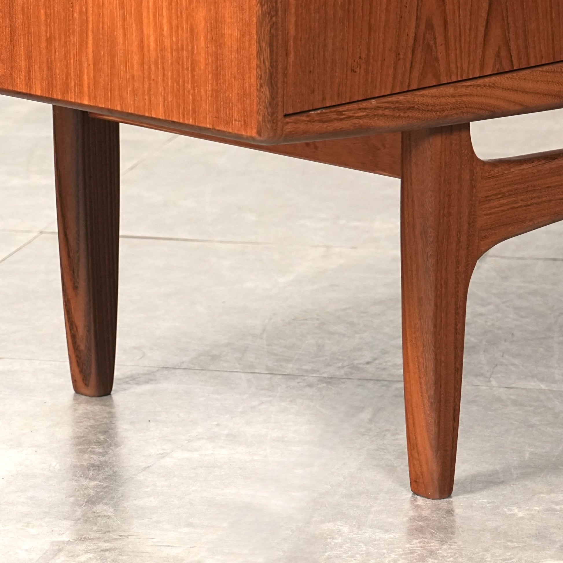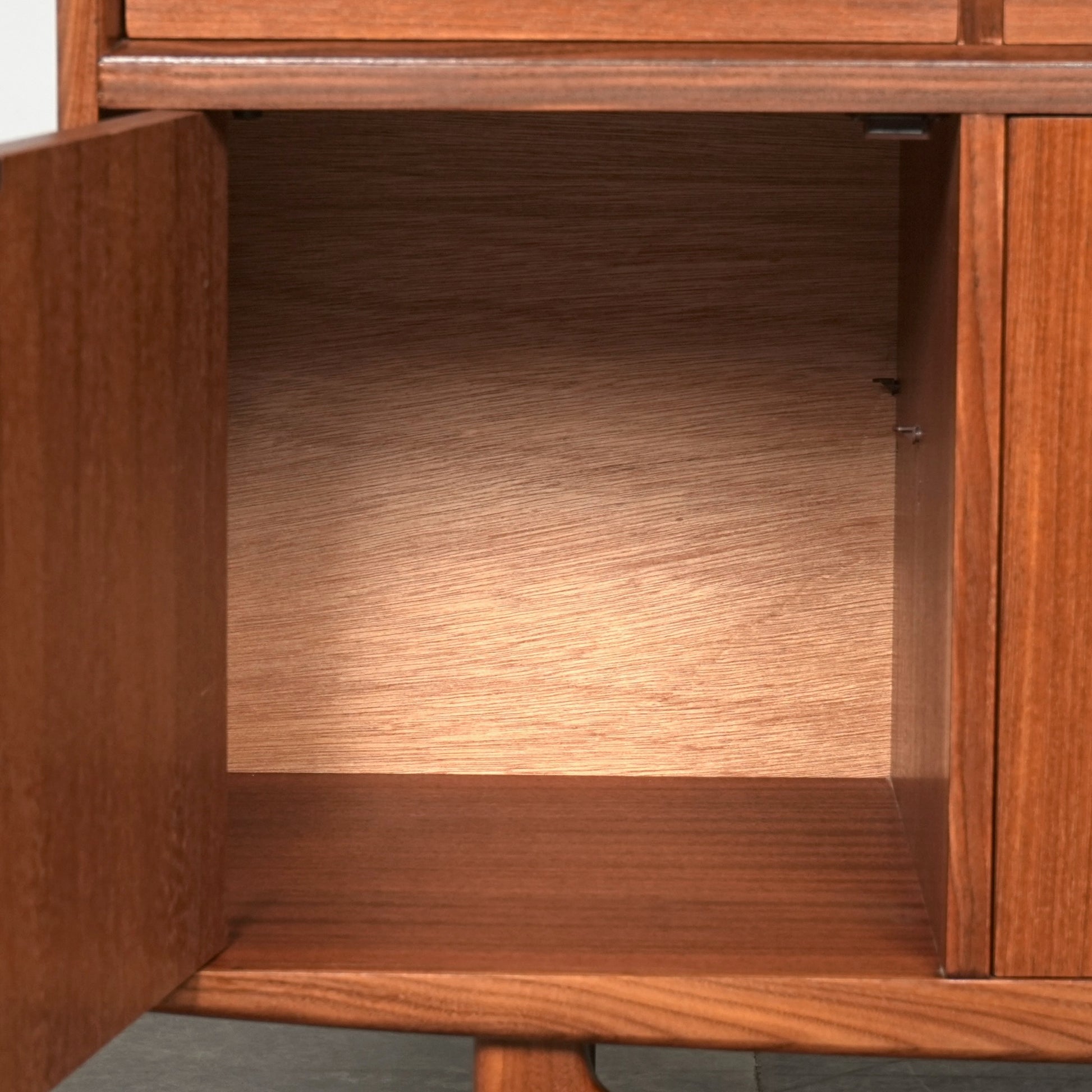 通常のサイドボードよりもコンパクトな嬉しいサイズ感で、チーク材の木目と質感に加えてFrescoシリーズの特徴でもある削り出しの可愛らしい取手が良いアクセントになった流石の美しいデザイン。