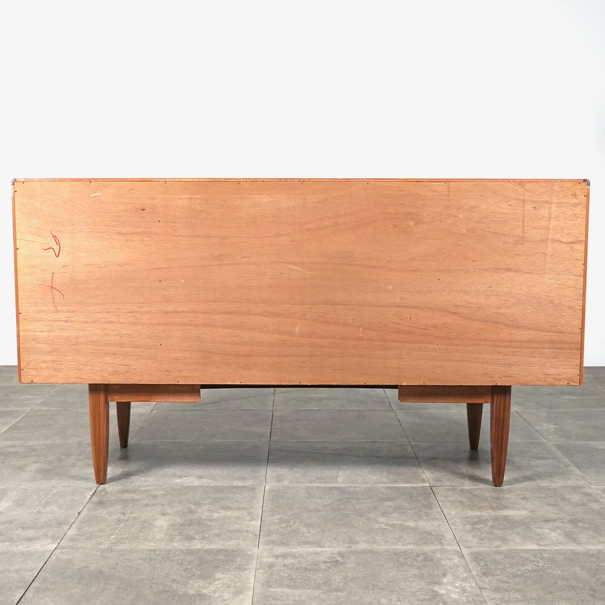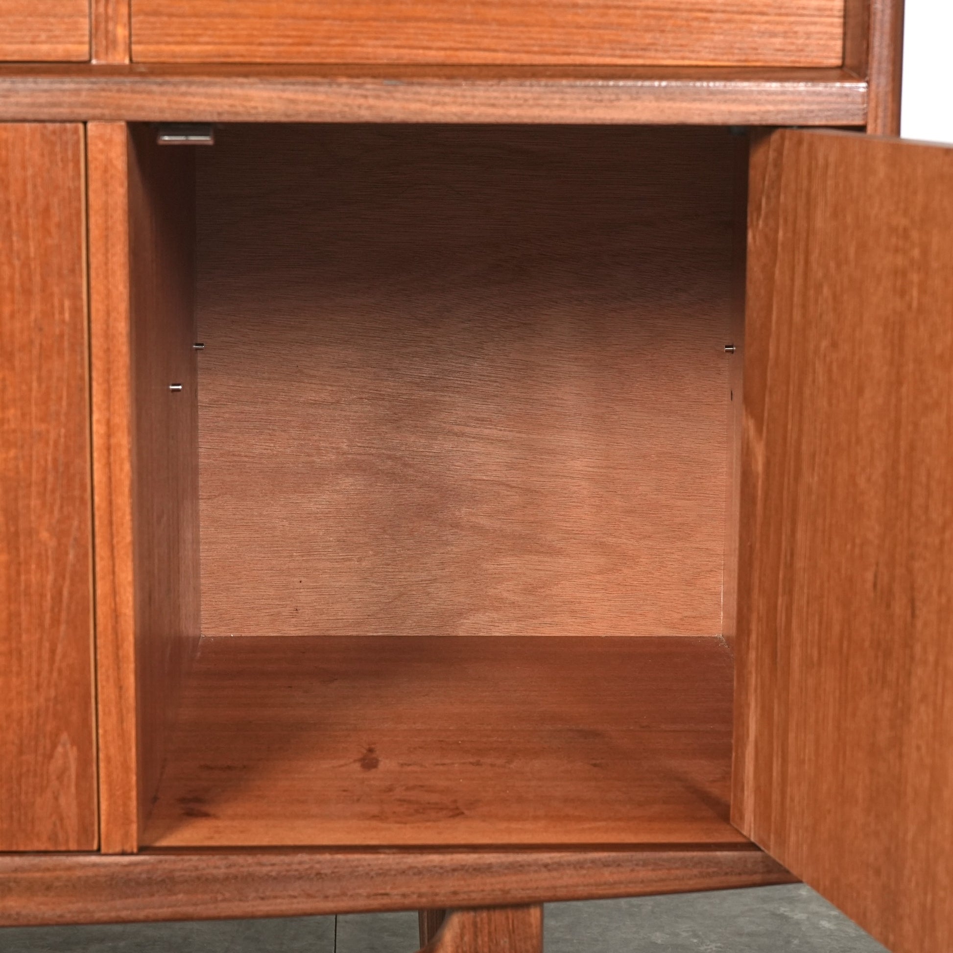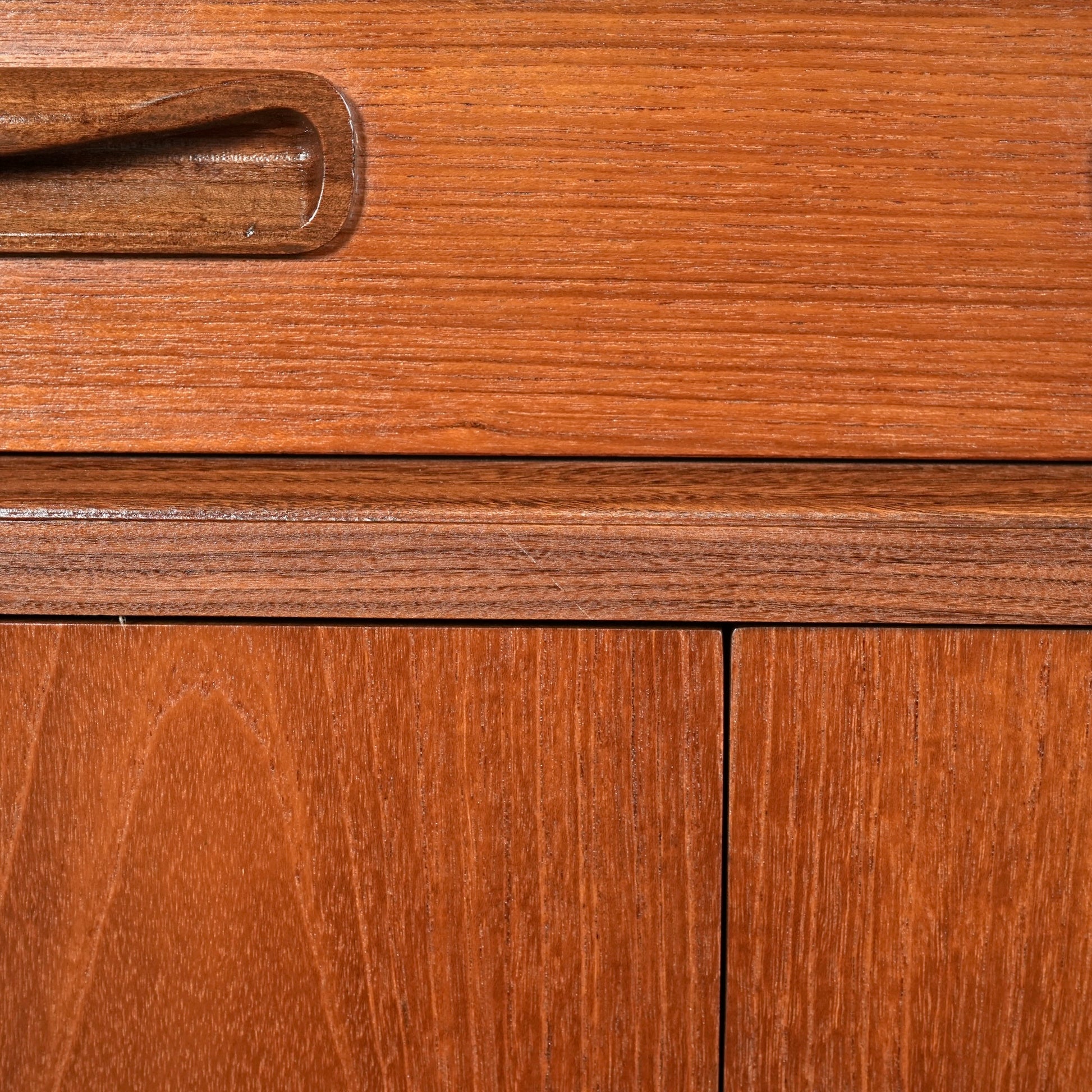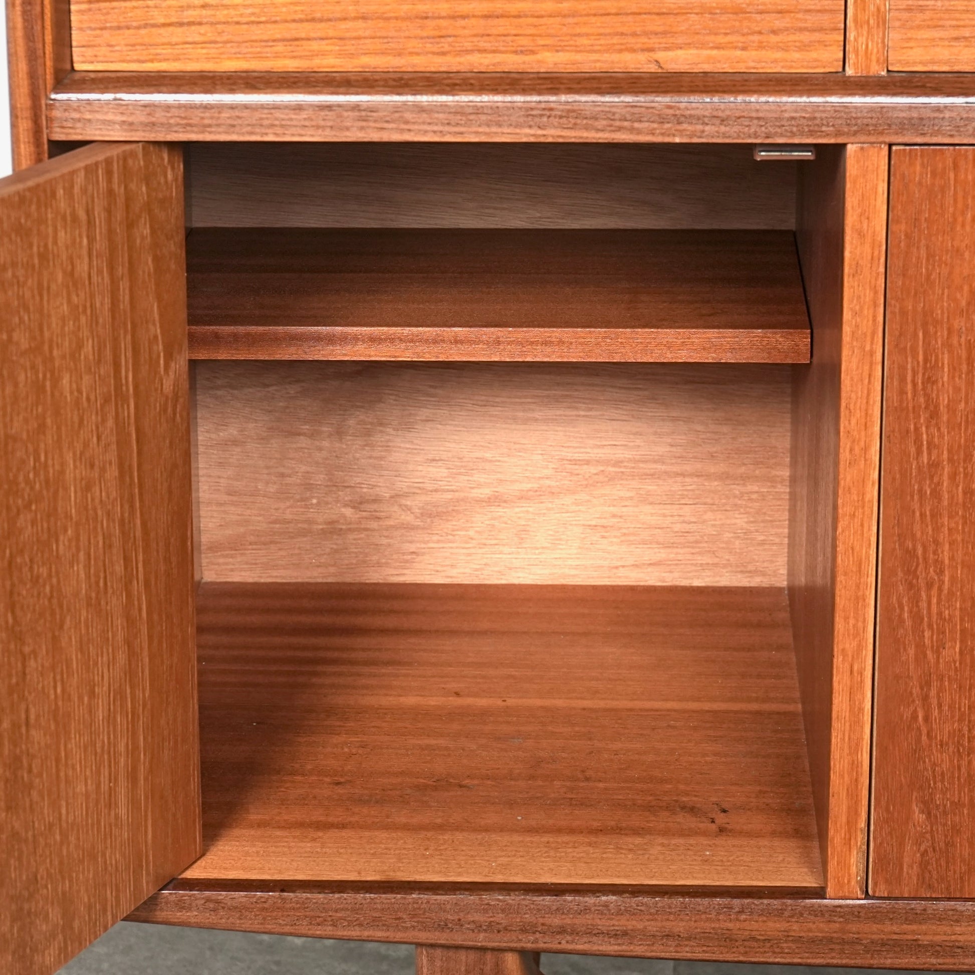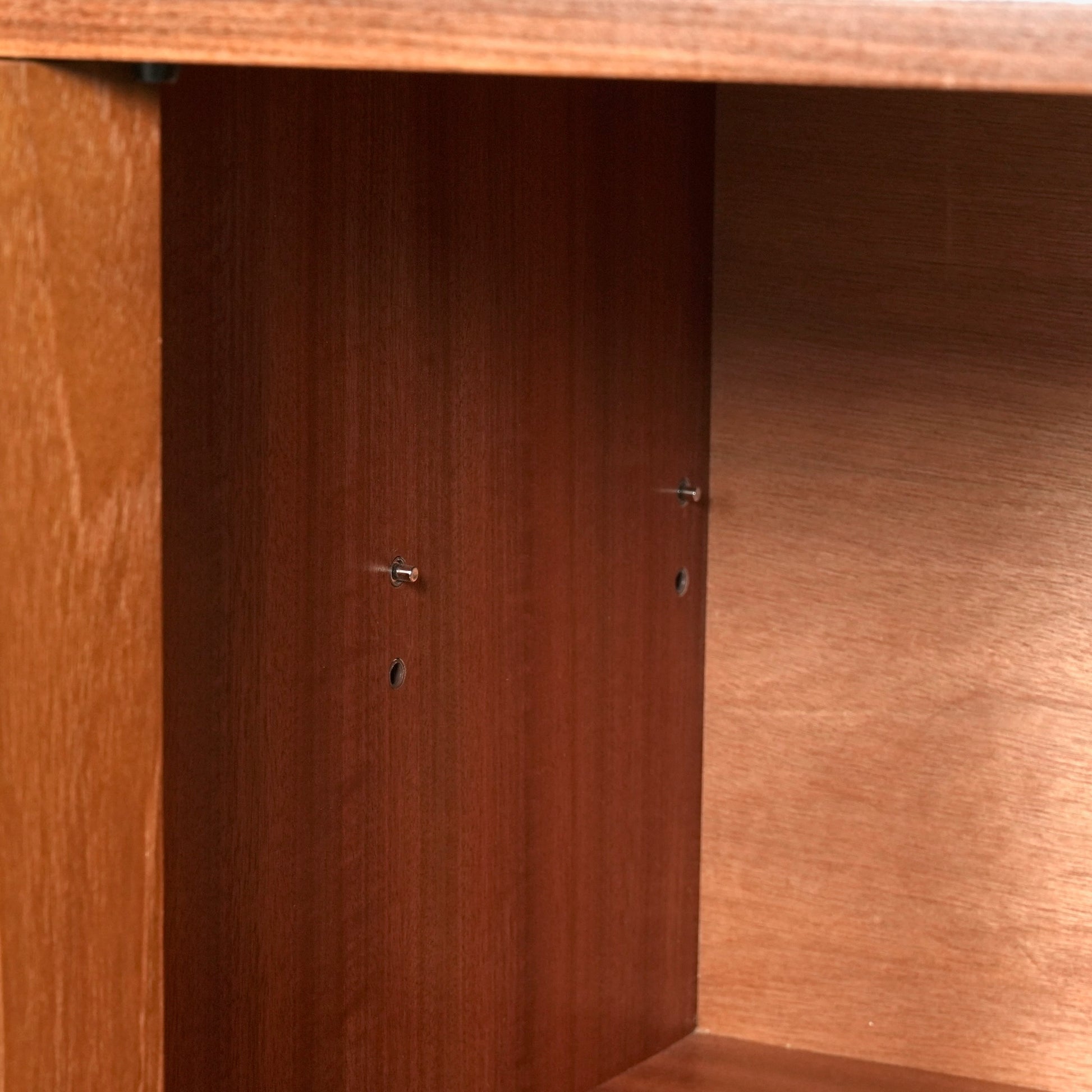 通常のサイドボードよりもコンパクトな嬉しいサイズ感で、チーク材の木目と質感に加えてFrescoシリーズの特徴でもある削り出しの可愛らしい取手が良いアクセントになった流石の美しいデザイン。