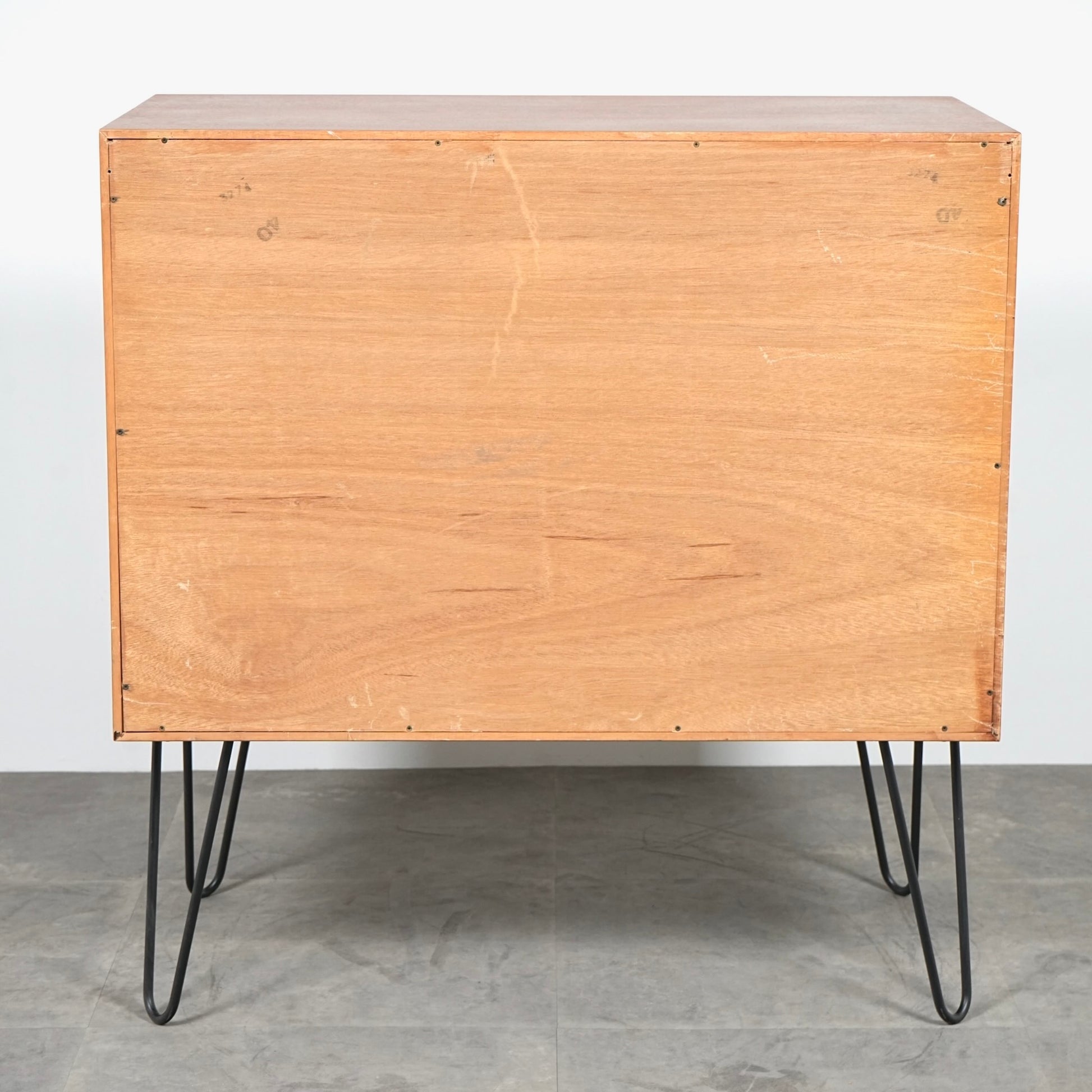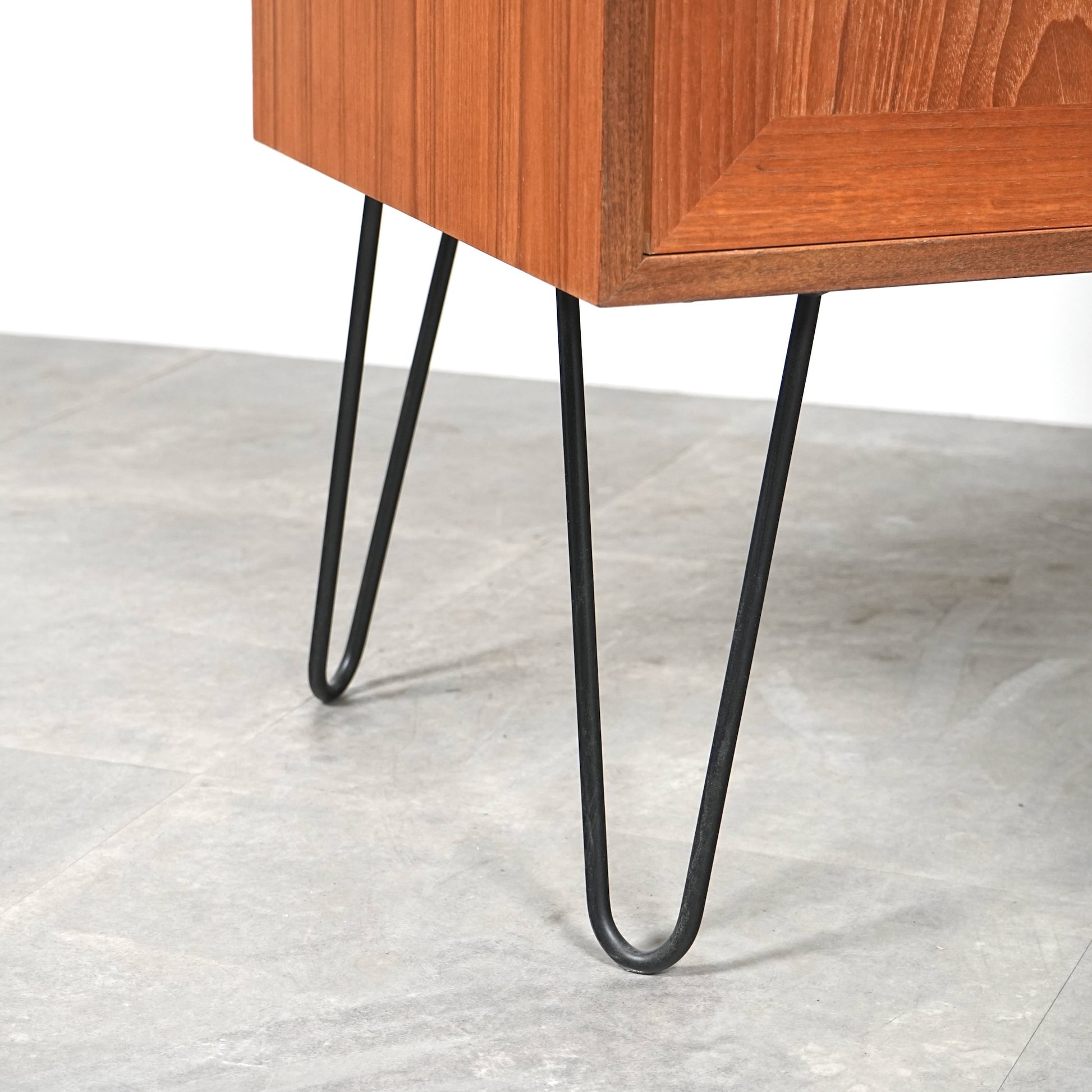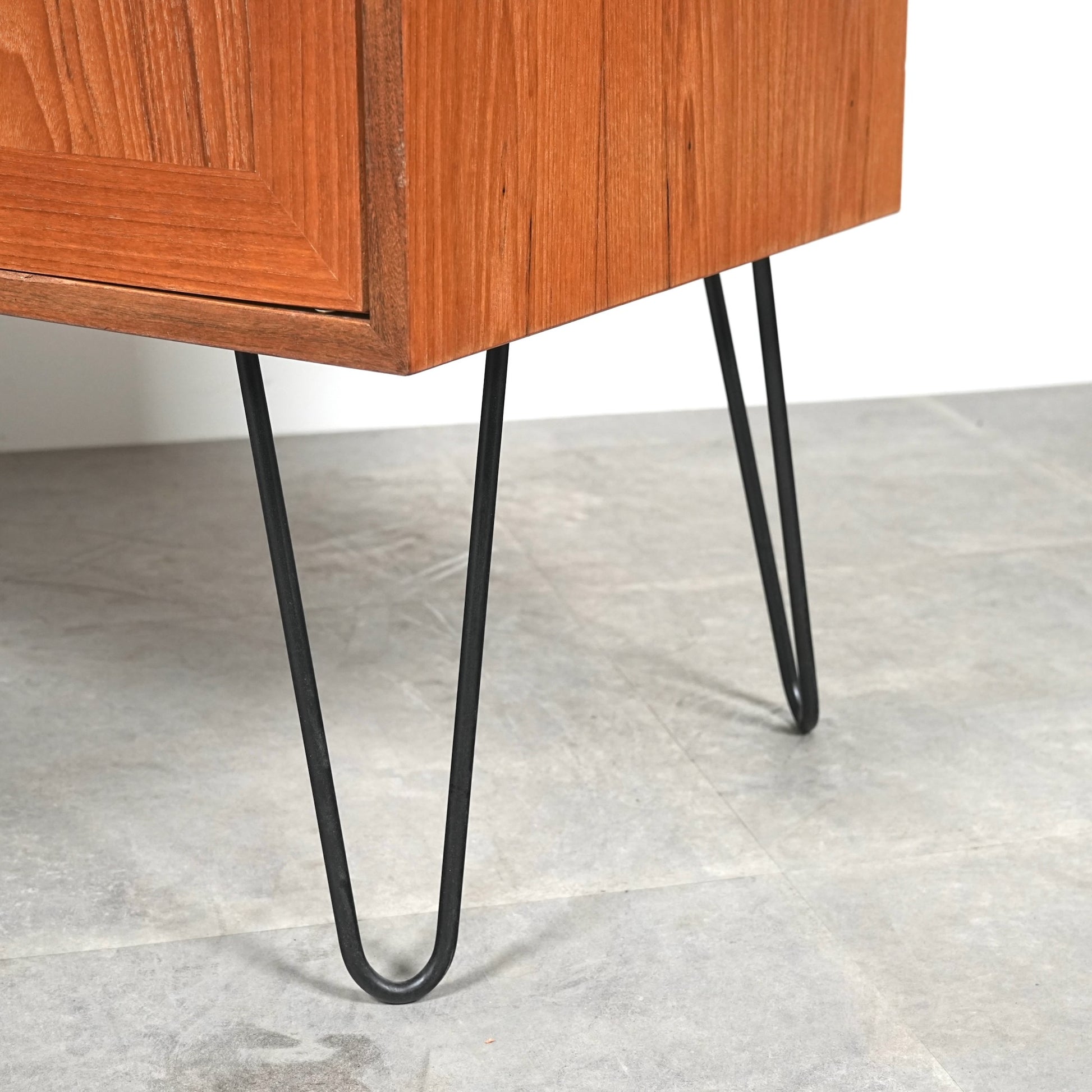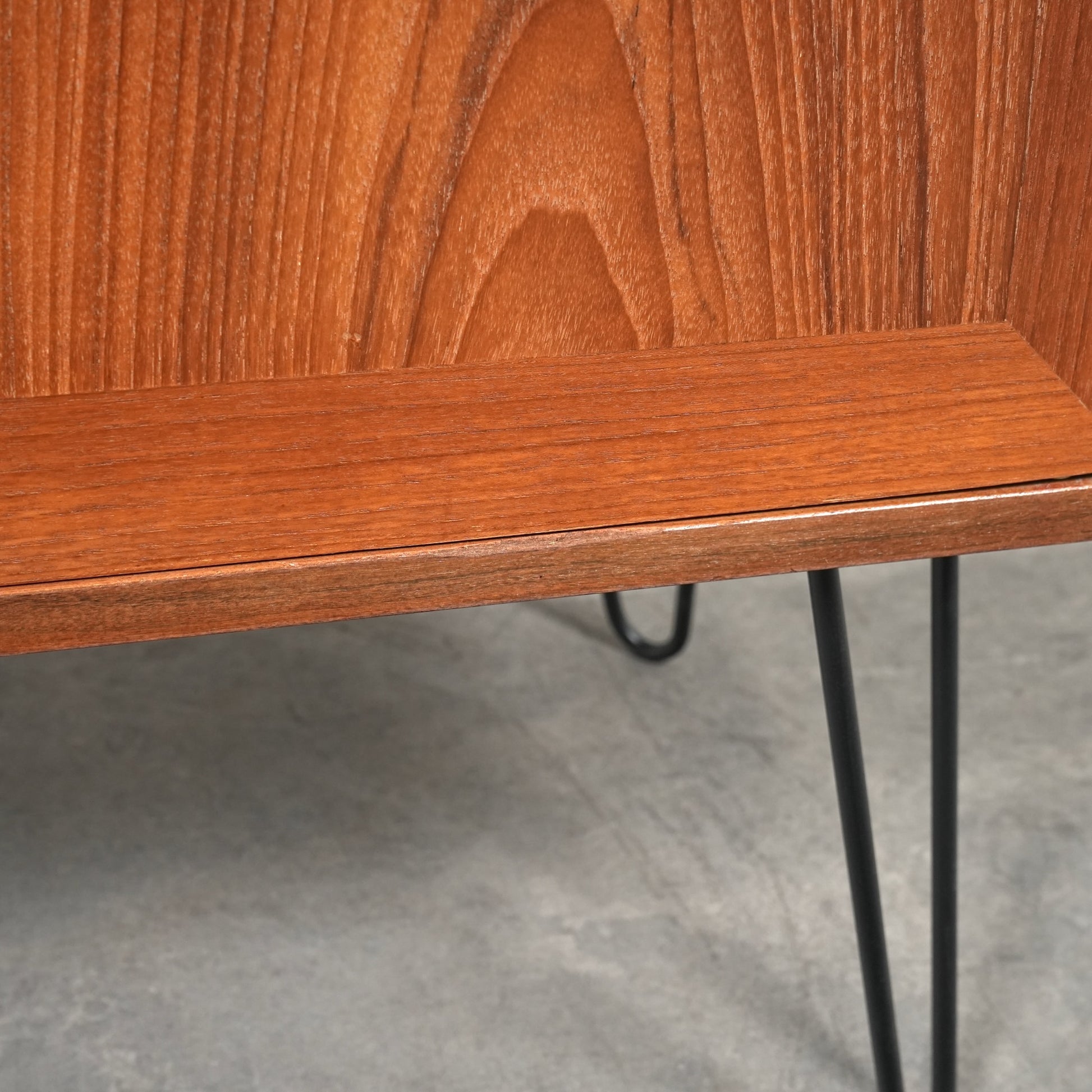 TIME HYPEでは構造面のレストアに加えて、素材の魅力を引き出すよう丁寧に再塗装まで実施して磨き上げ、脚部はヘアピンレッグにカスタムして仕上げました。