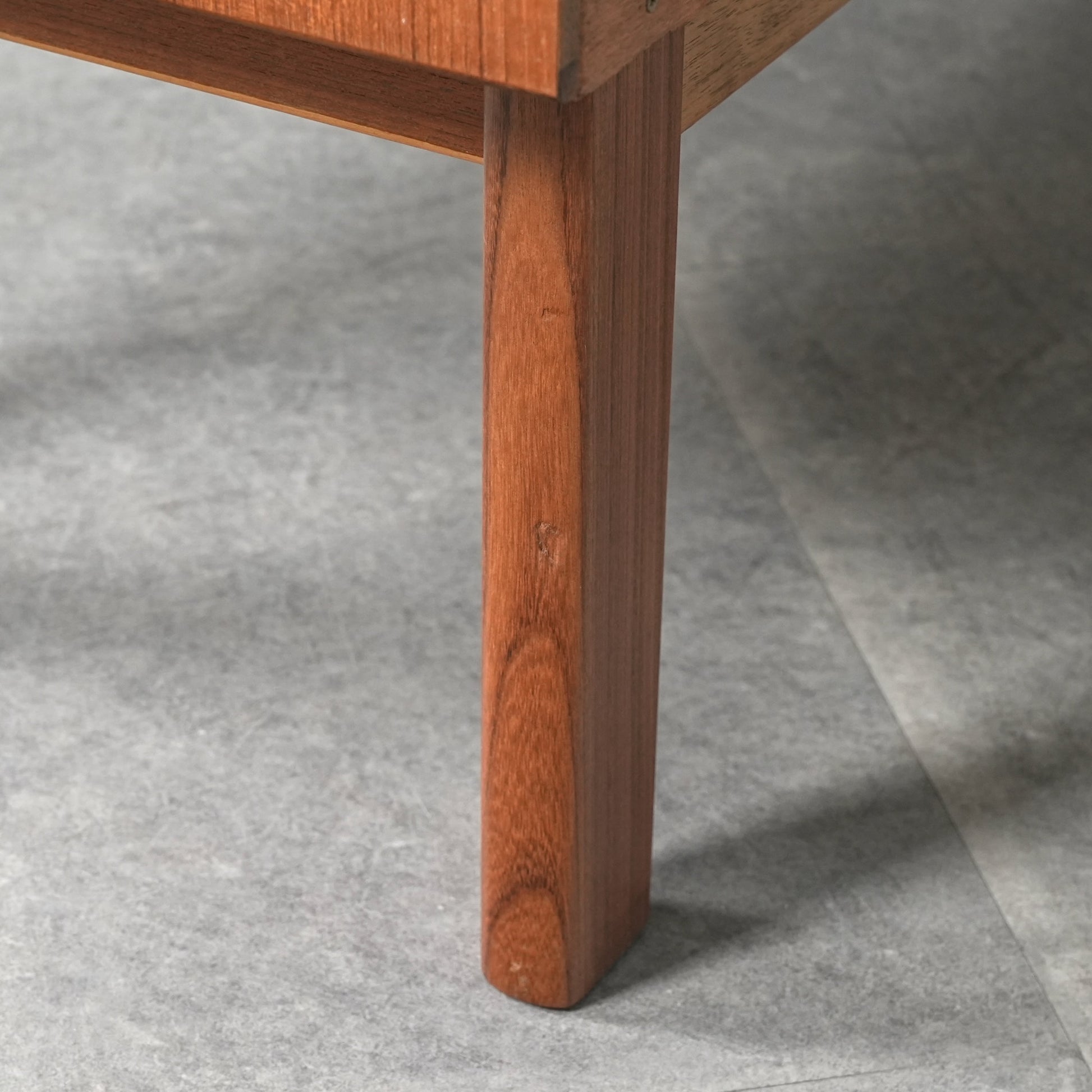 高品質なチーク材の温かみある質感と美しい木目に加えて、直線的なデザインの中に可愛らしい取手や扉の意匠など、気の利いたアクセントがバランス良く配置されています。