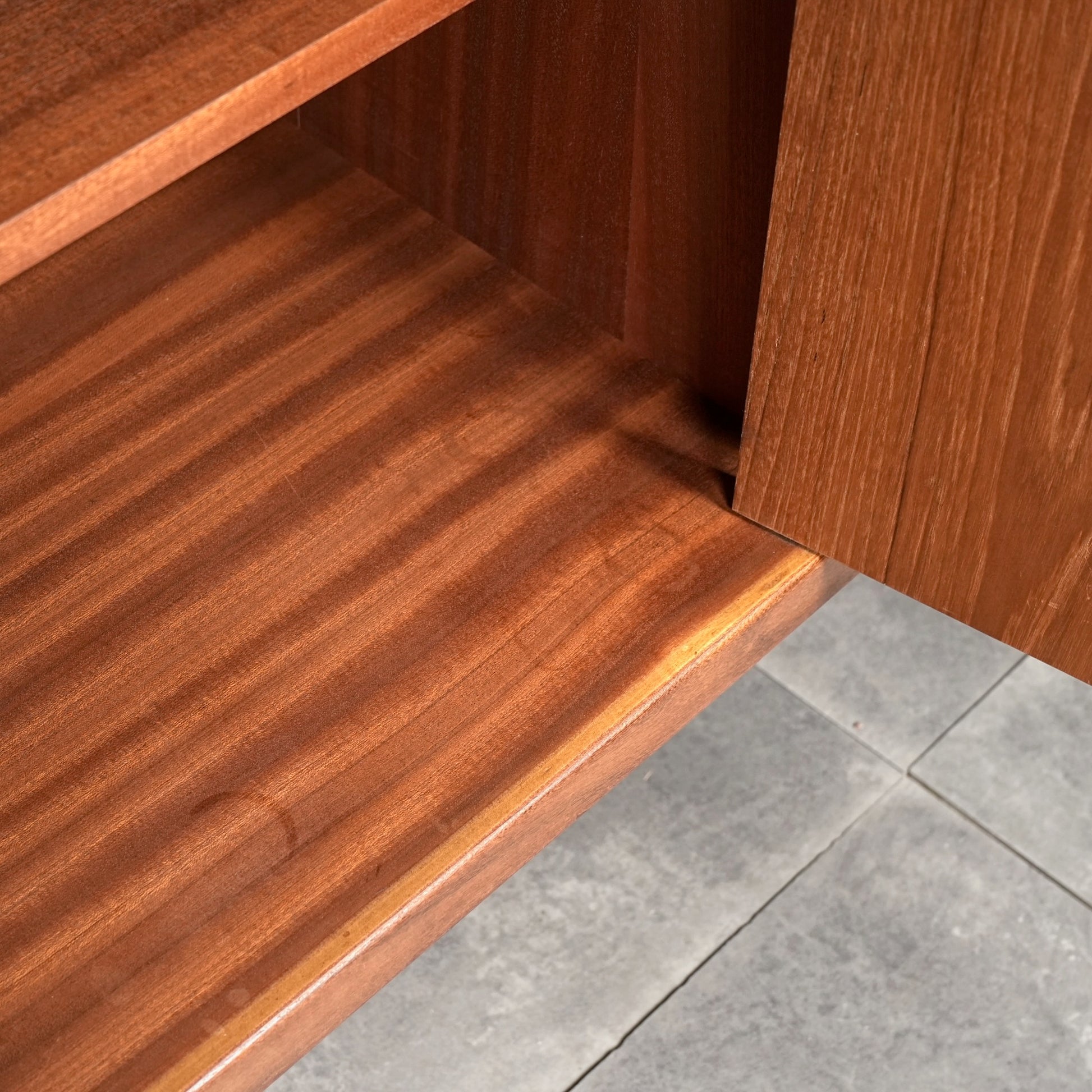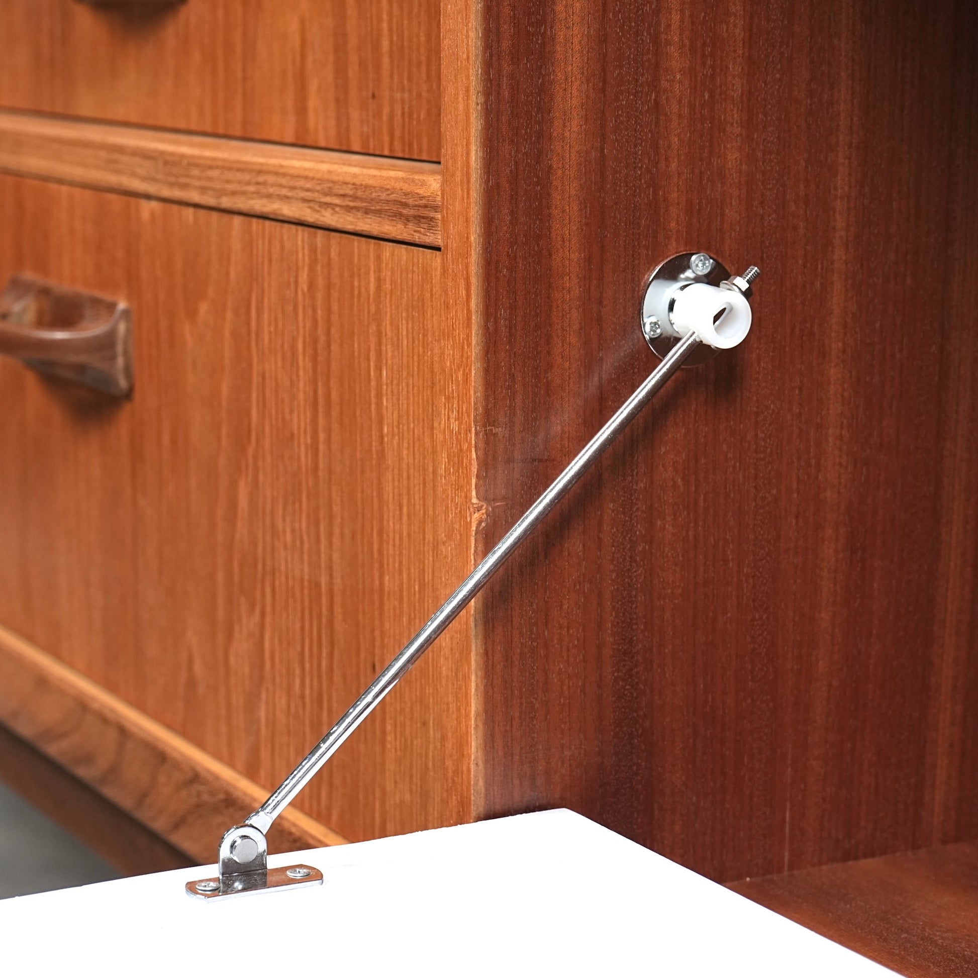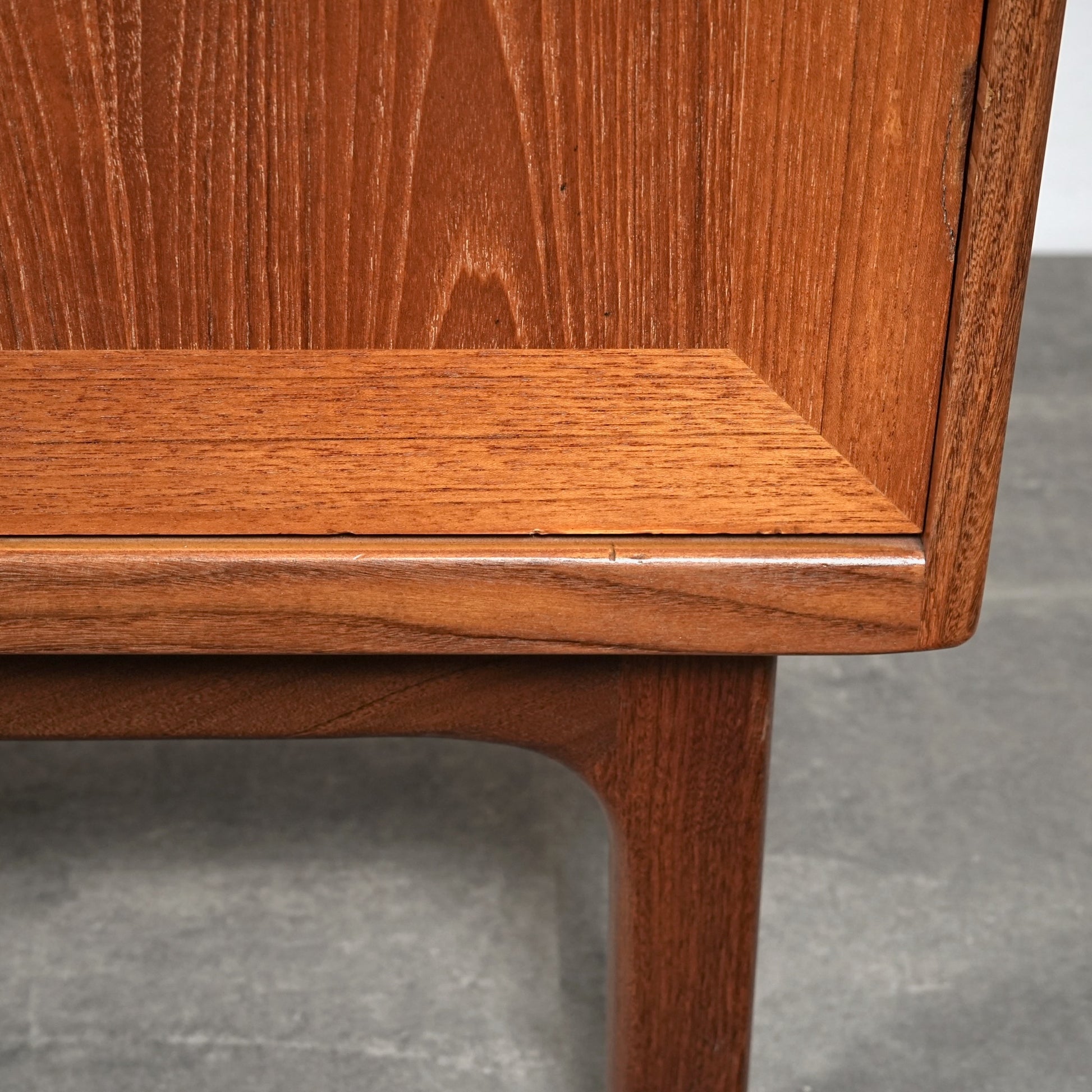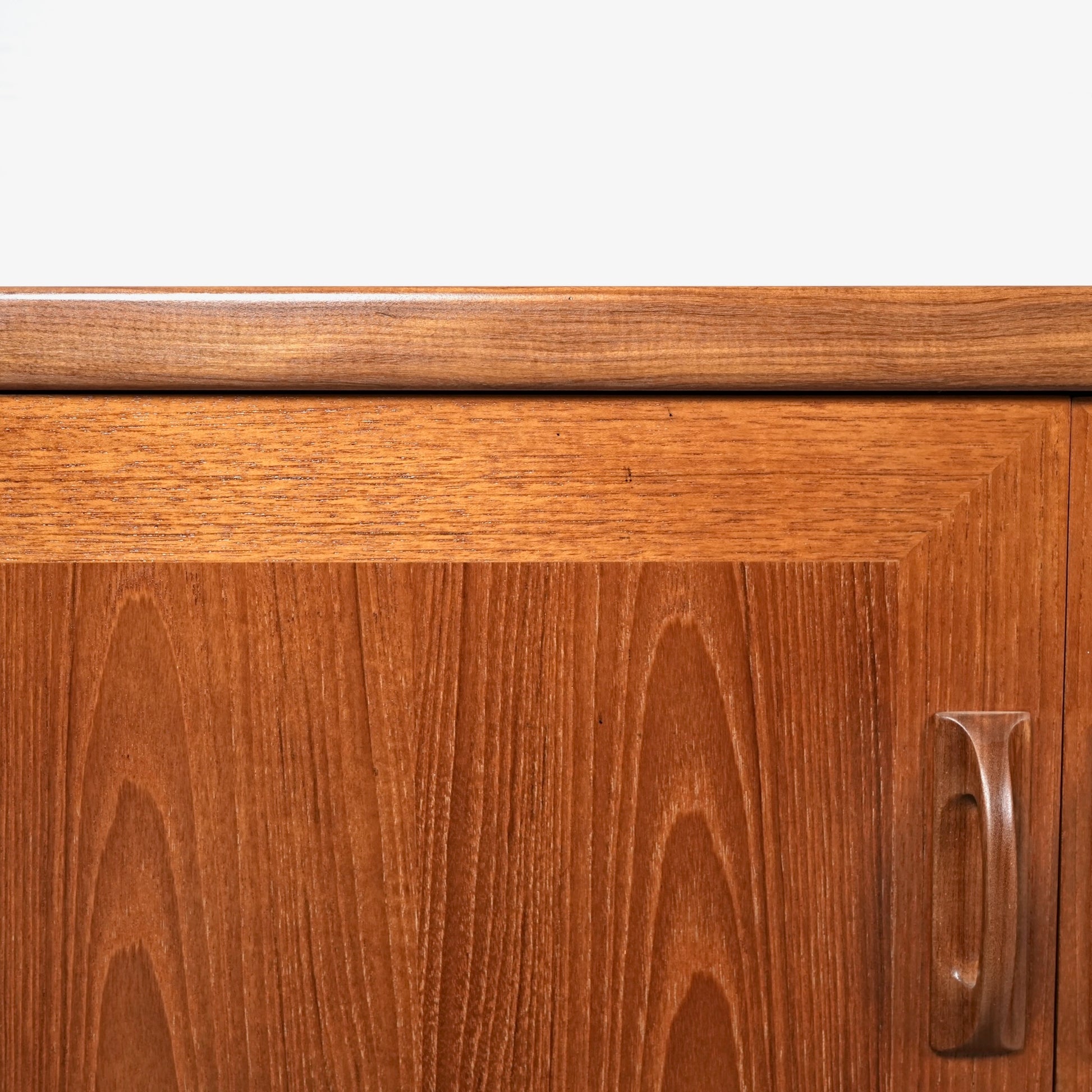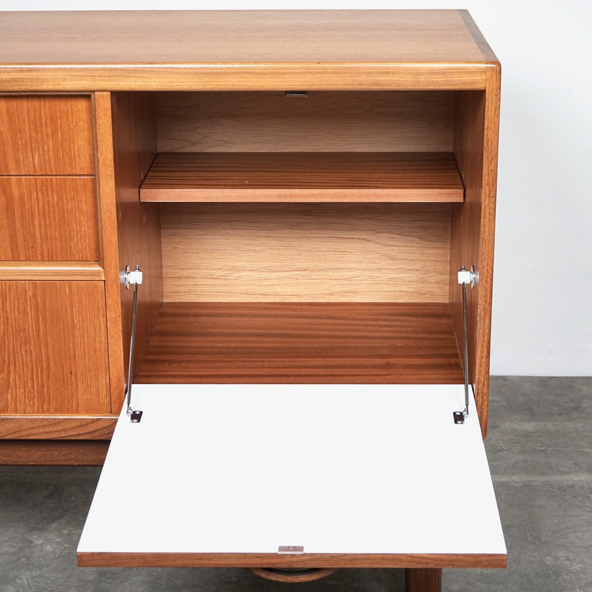 ヴィンテージファンには説明不要とも言える名作アイテムの1つとして認知されており、高品質なチーク材の温かみある質感と美しい木目に加えて、直線的なデザインの中に可愛らしい取手や扉の意匠など、気の利いたアクセントがバランス良く配置された逸品です。