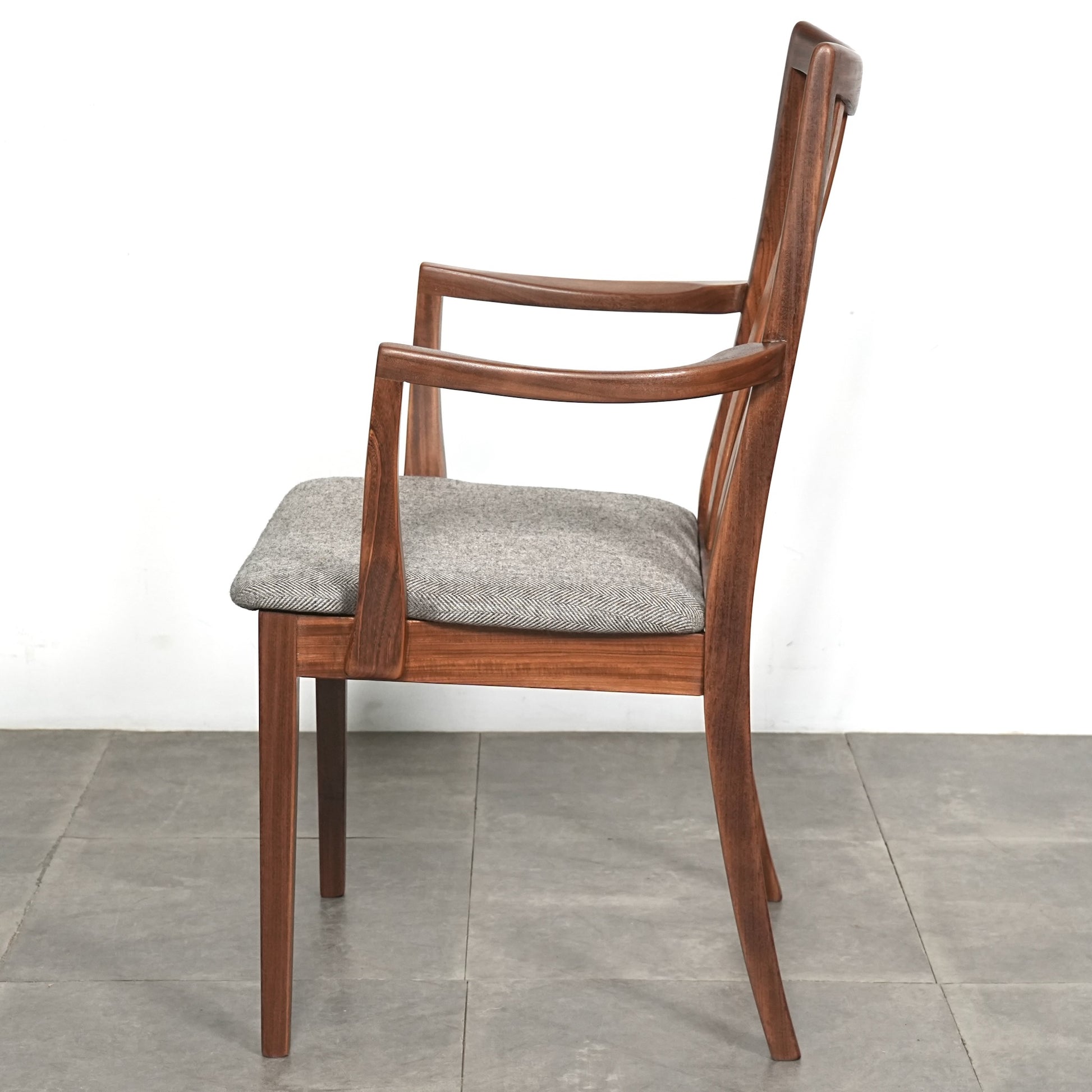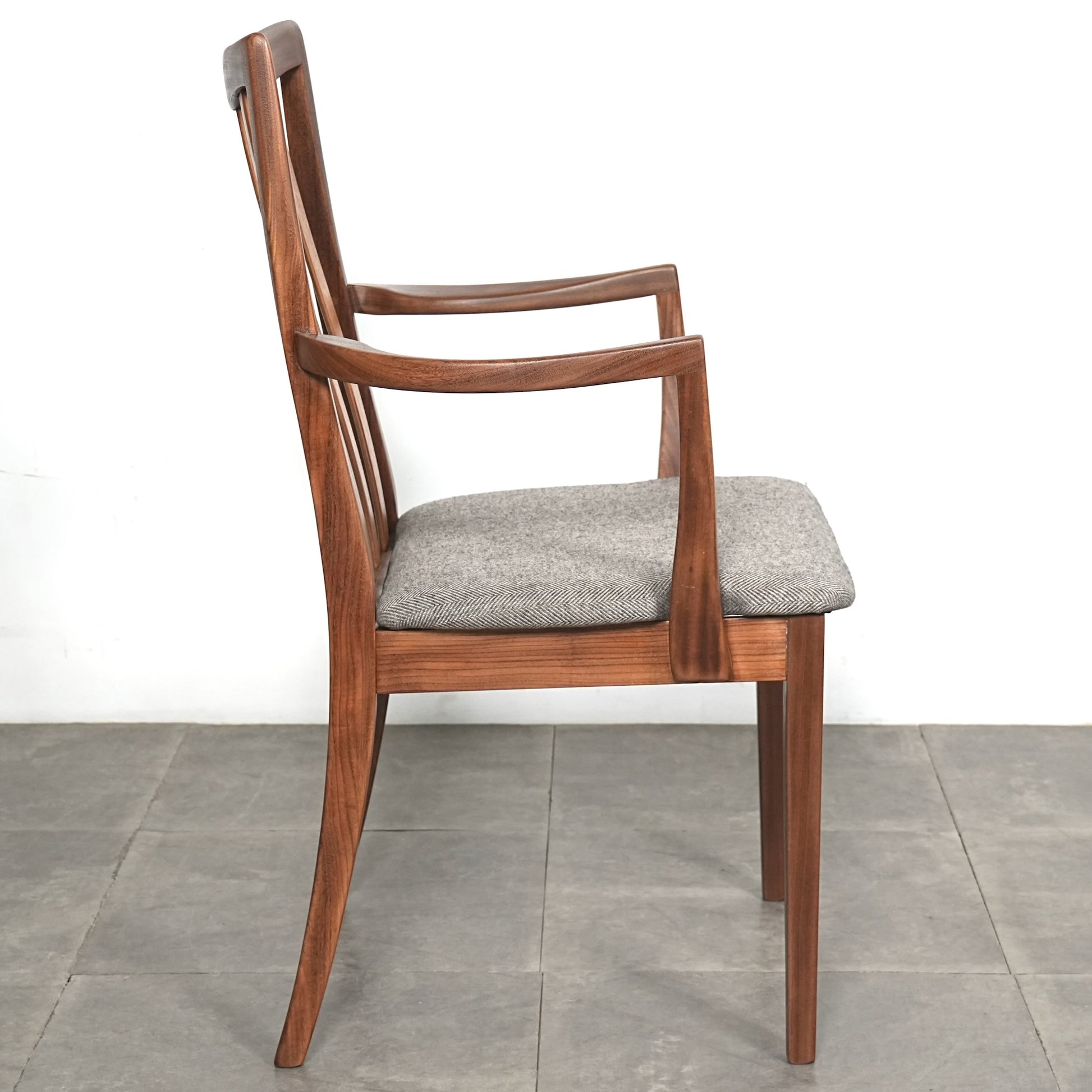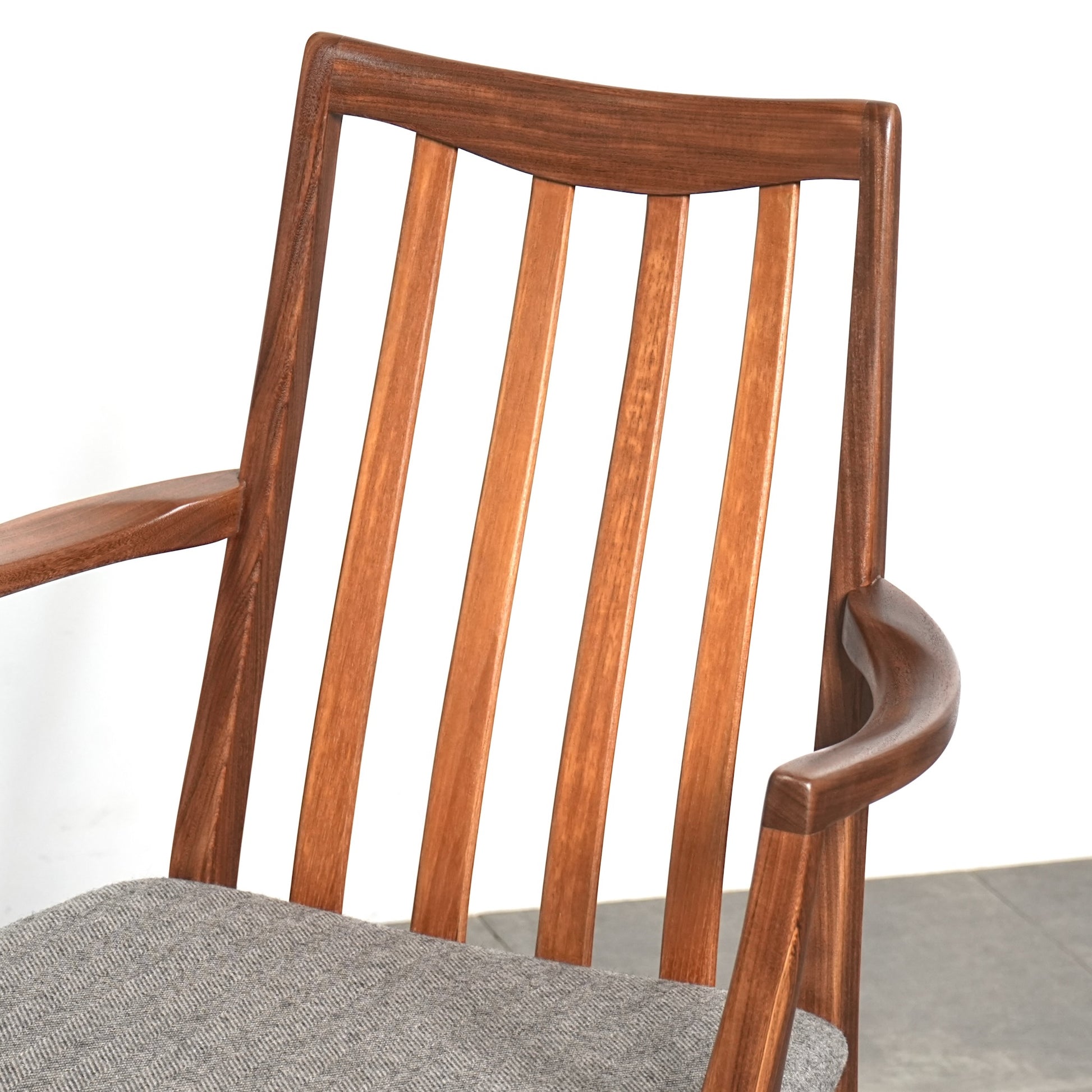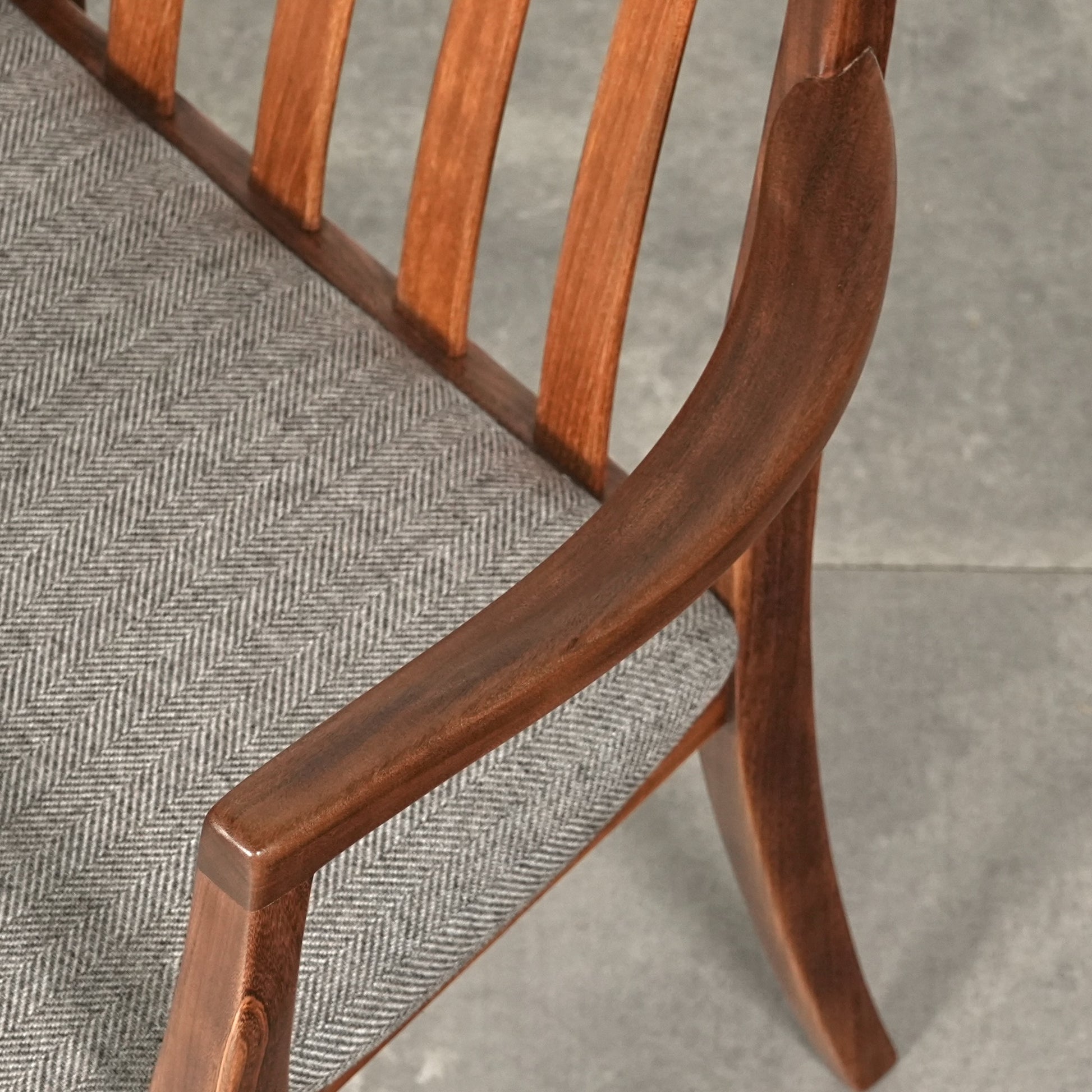 シンプルなデザインだからこそ際立つ上質なチークの質感や、背もたれの美しいラインが印象的です。