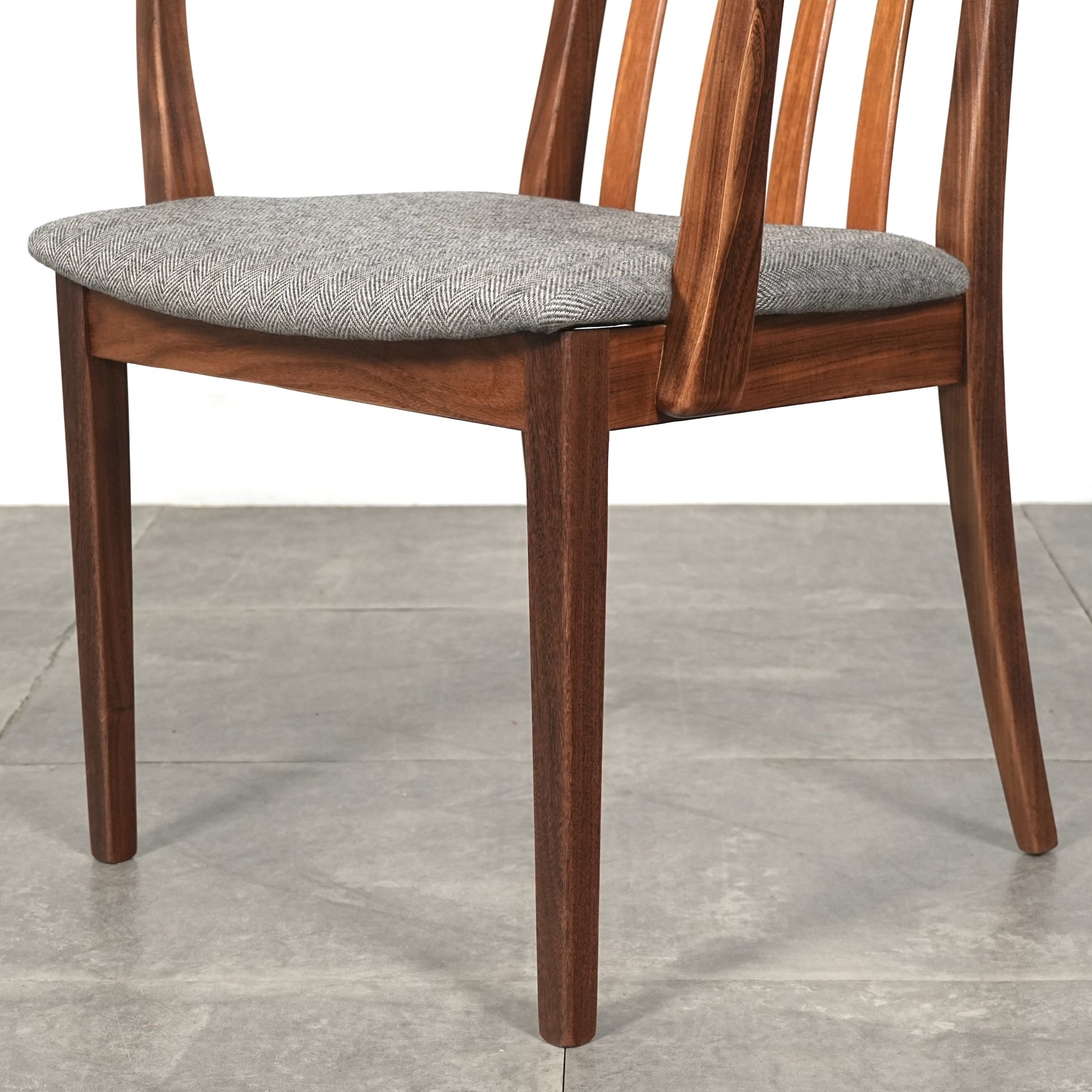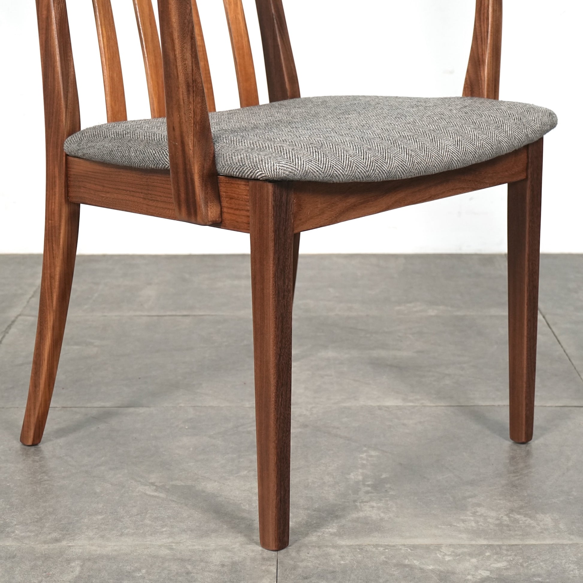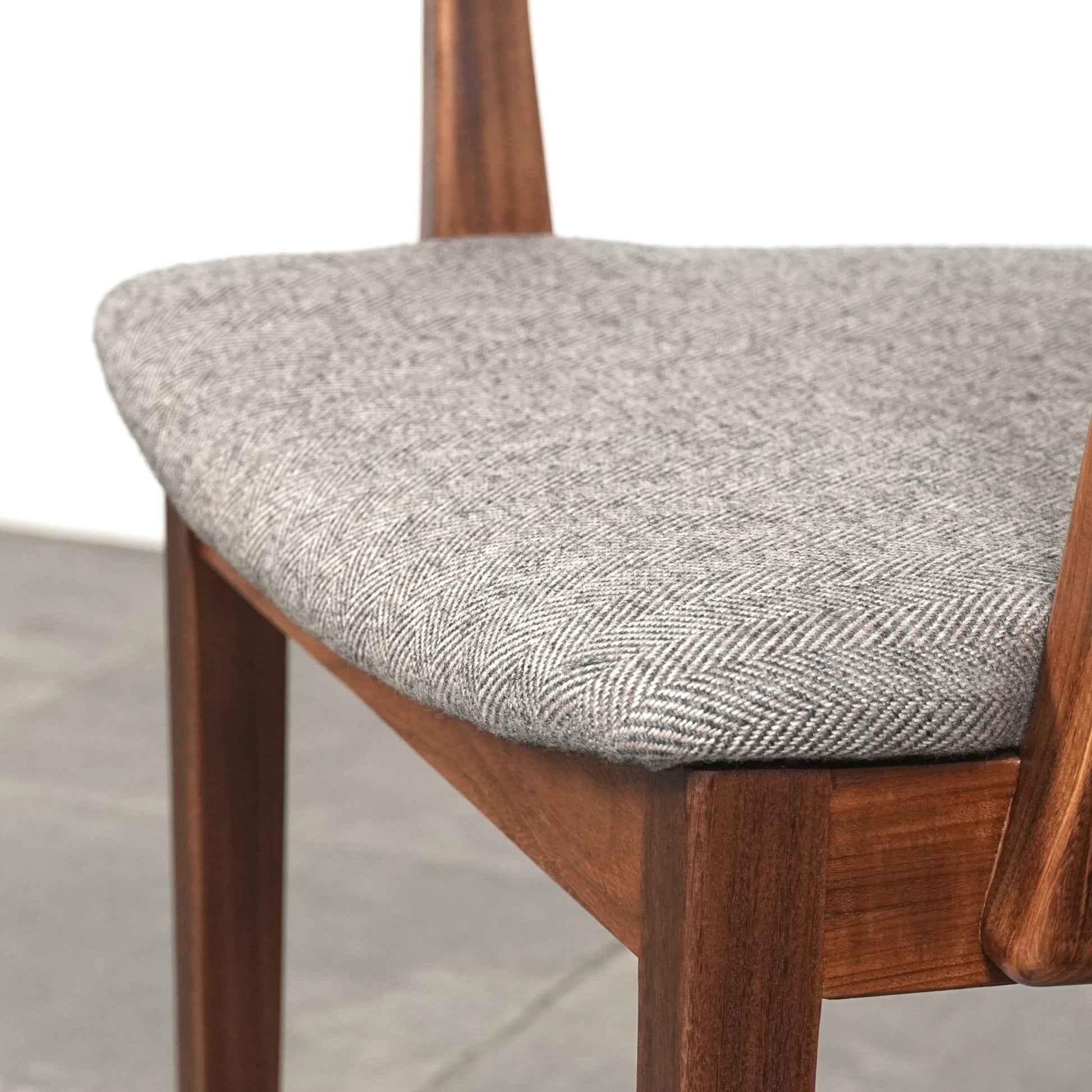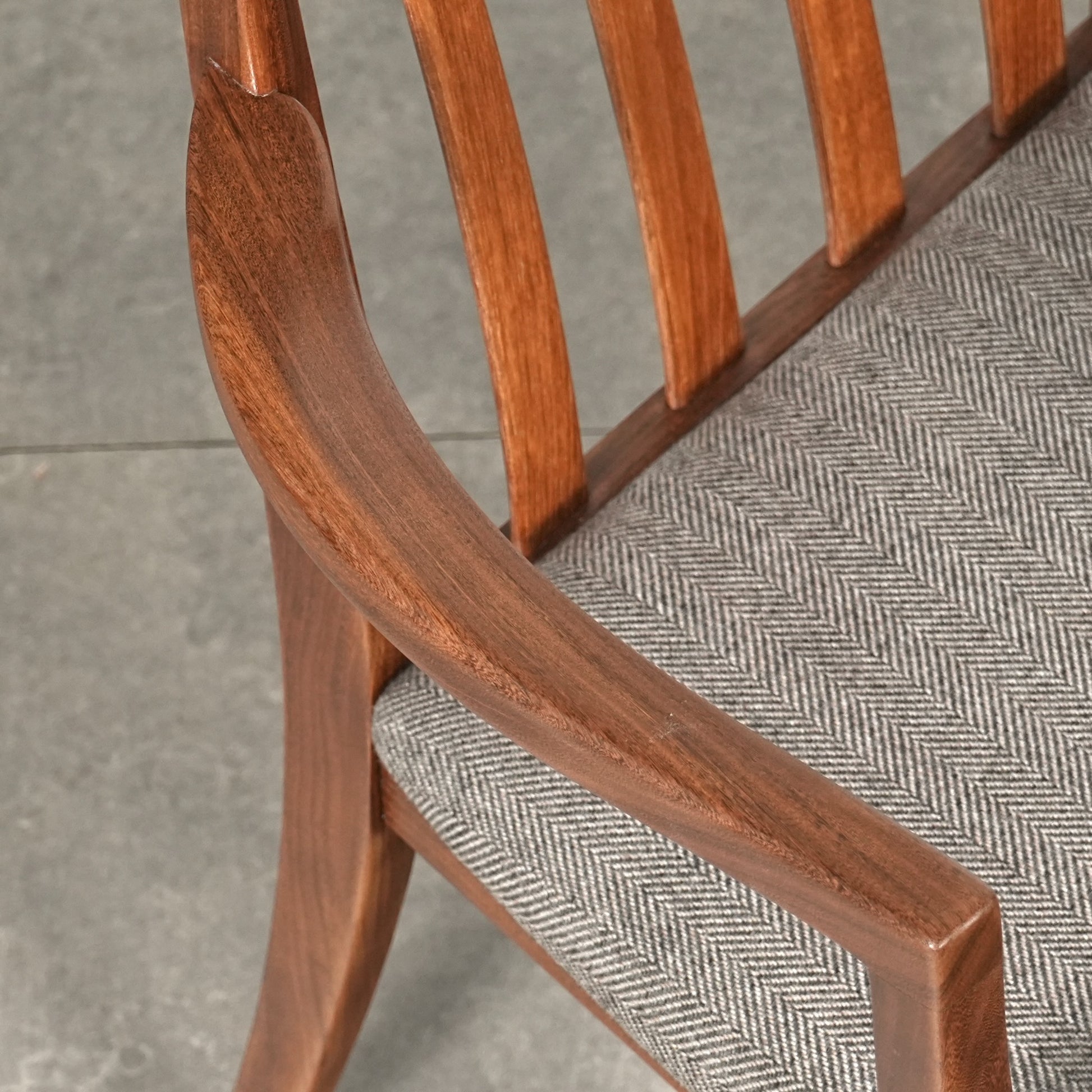 シンプルなデザインだからこそ際立つ上質なチークの質感や、背もたれの美しいラインが印象的です。