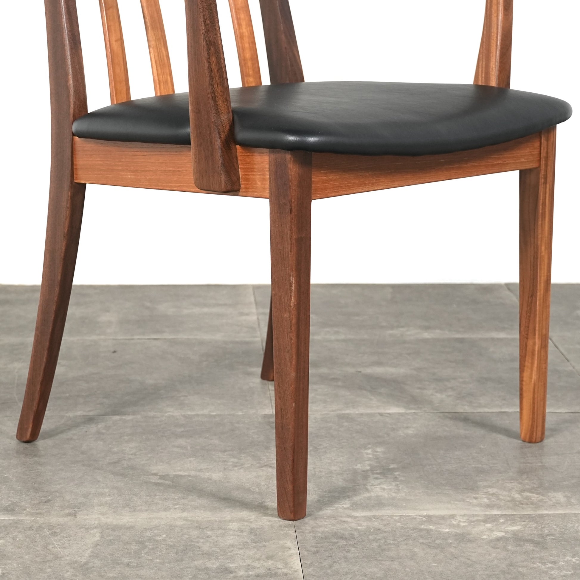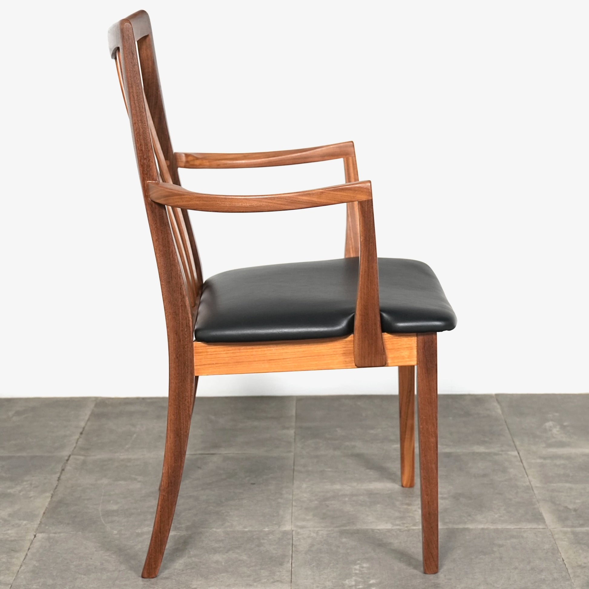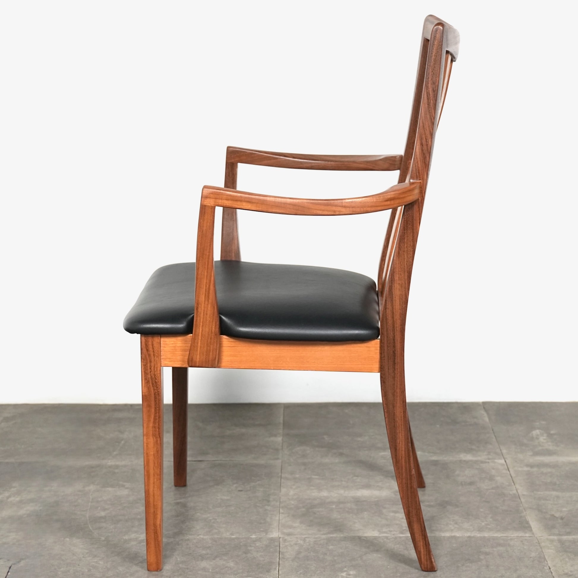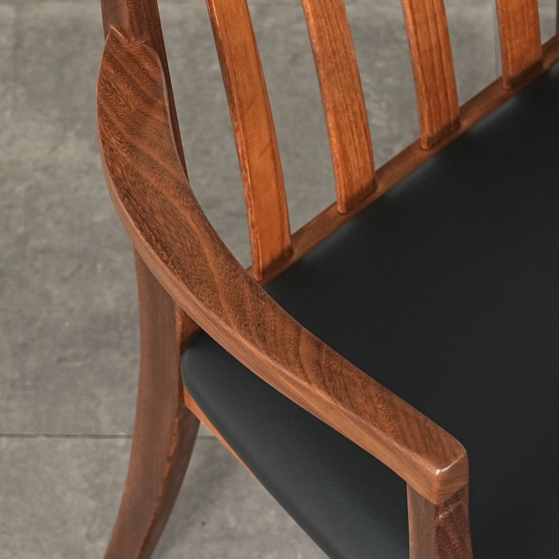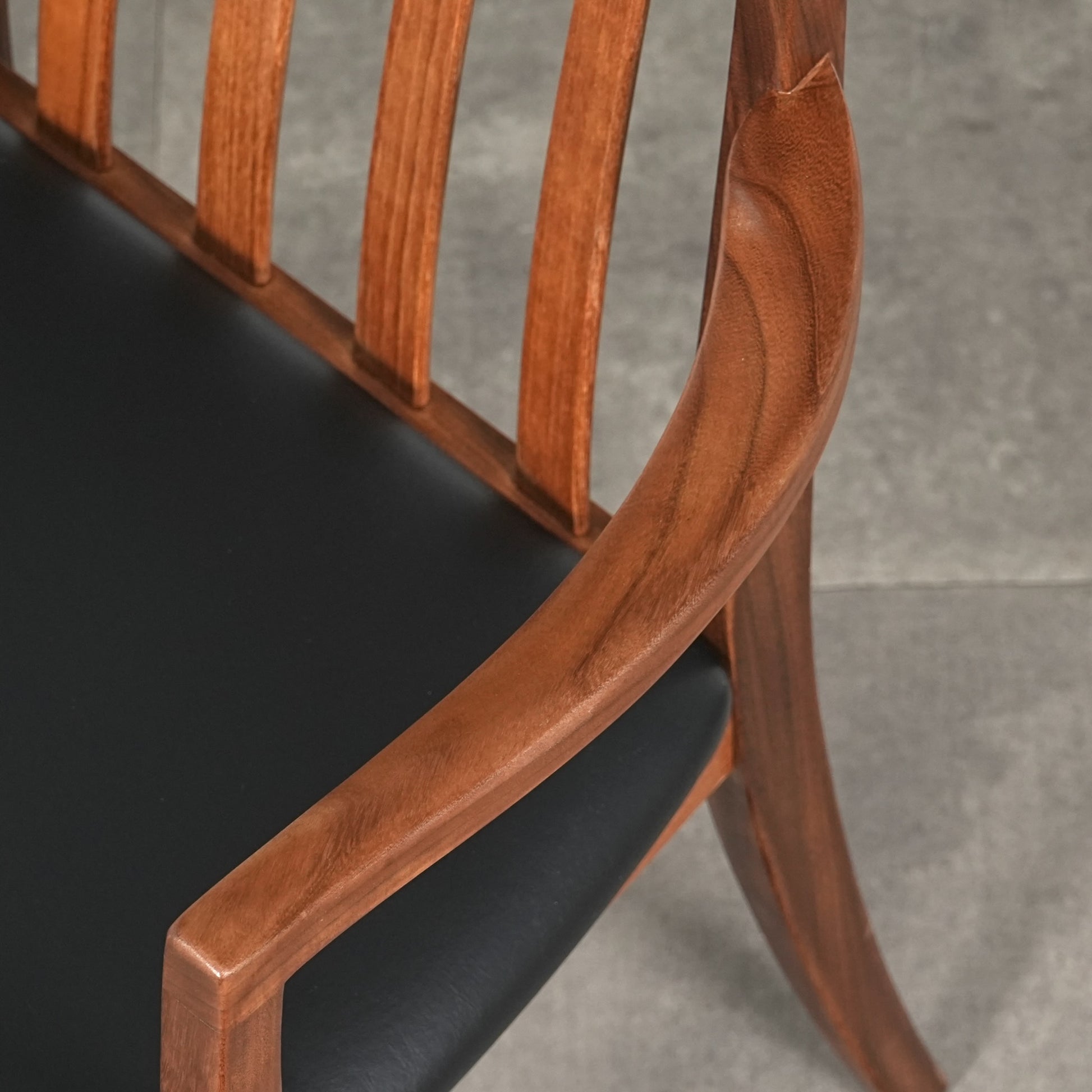 シンプルなデザインだからこそ際立つ上質なチークの質感や、背もたれの美しいラインが印象的です。