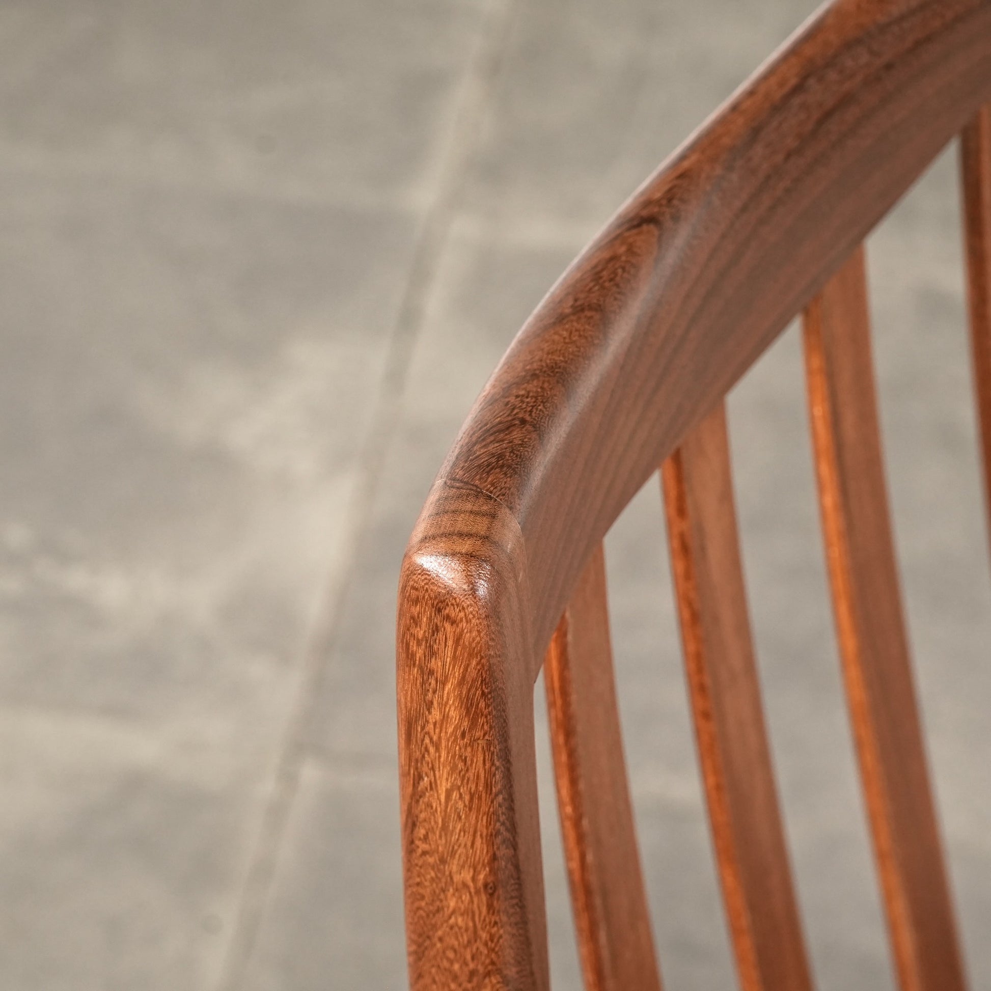 シンプルなデザインだからこそ際立つ上質なチークの質感や、背もたれの美しいラインが印象的です。