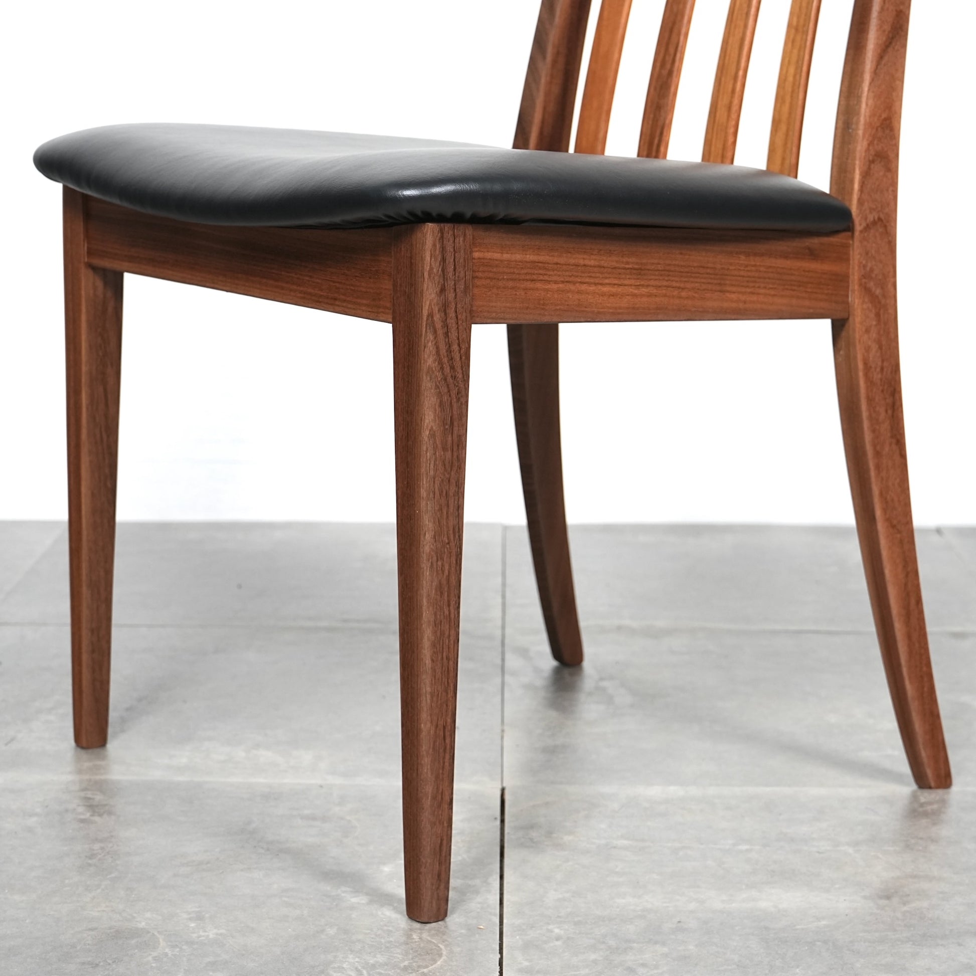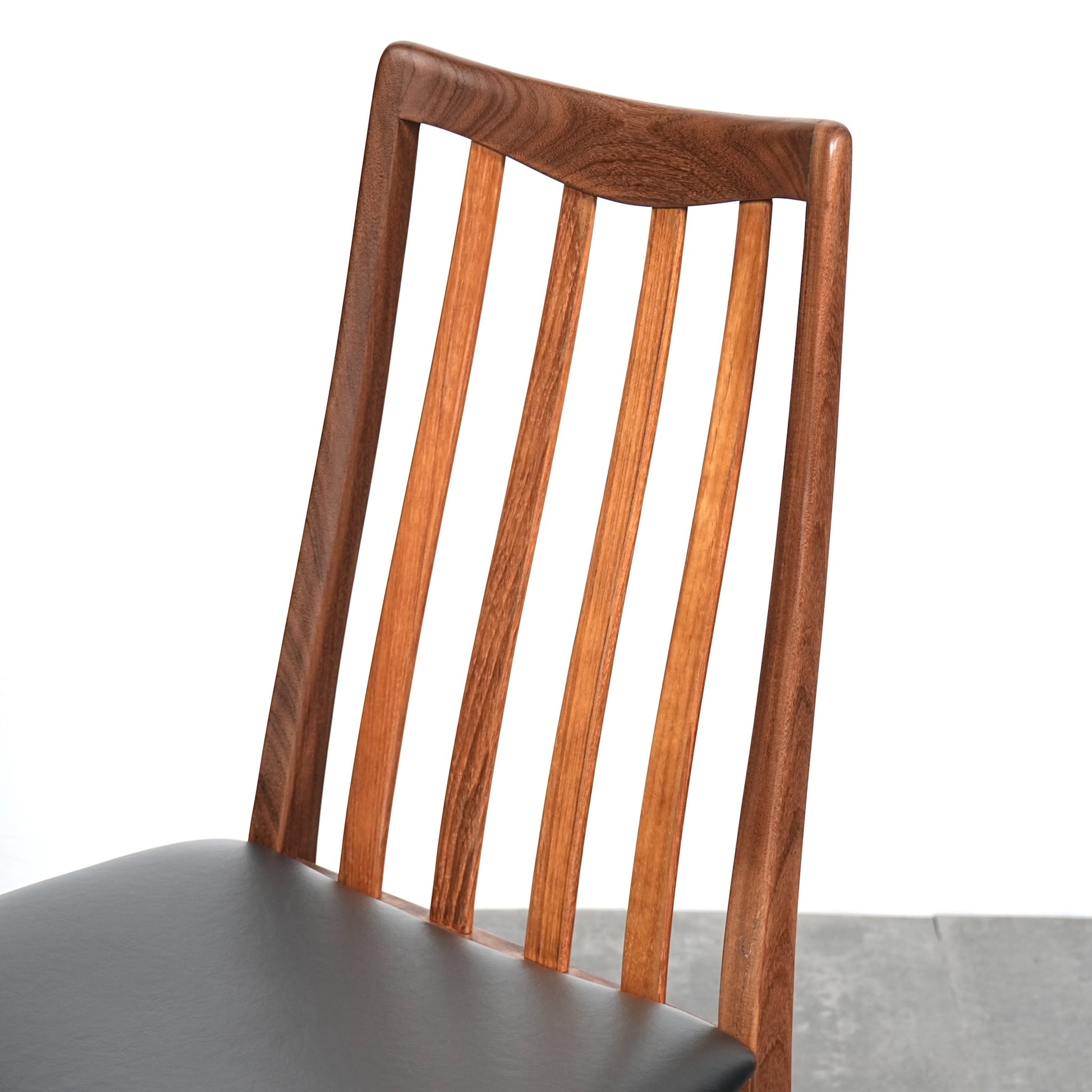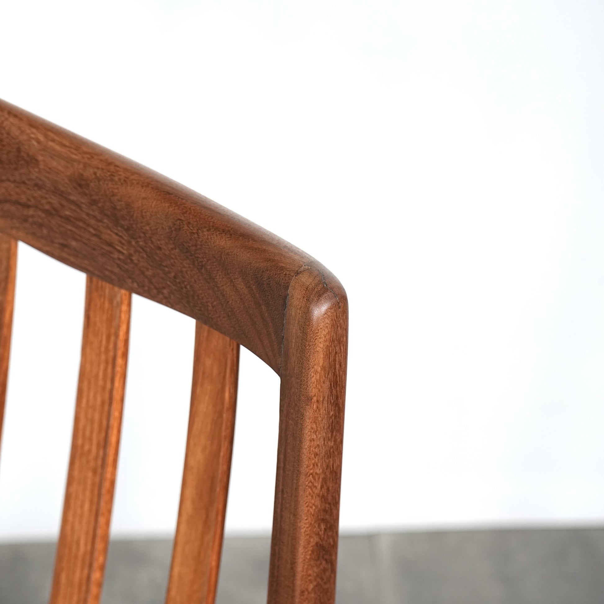 シンプルなデザインだからこそ際立つ上質なチークの質感や、背もたれの美しいラインが印象的です。