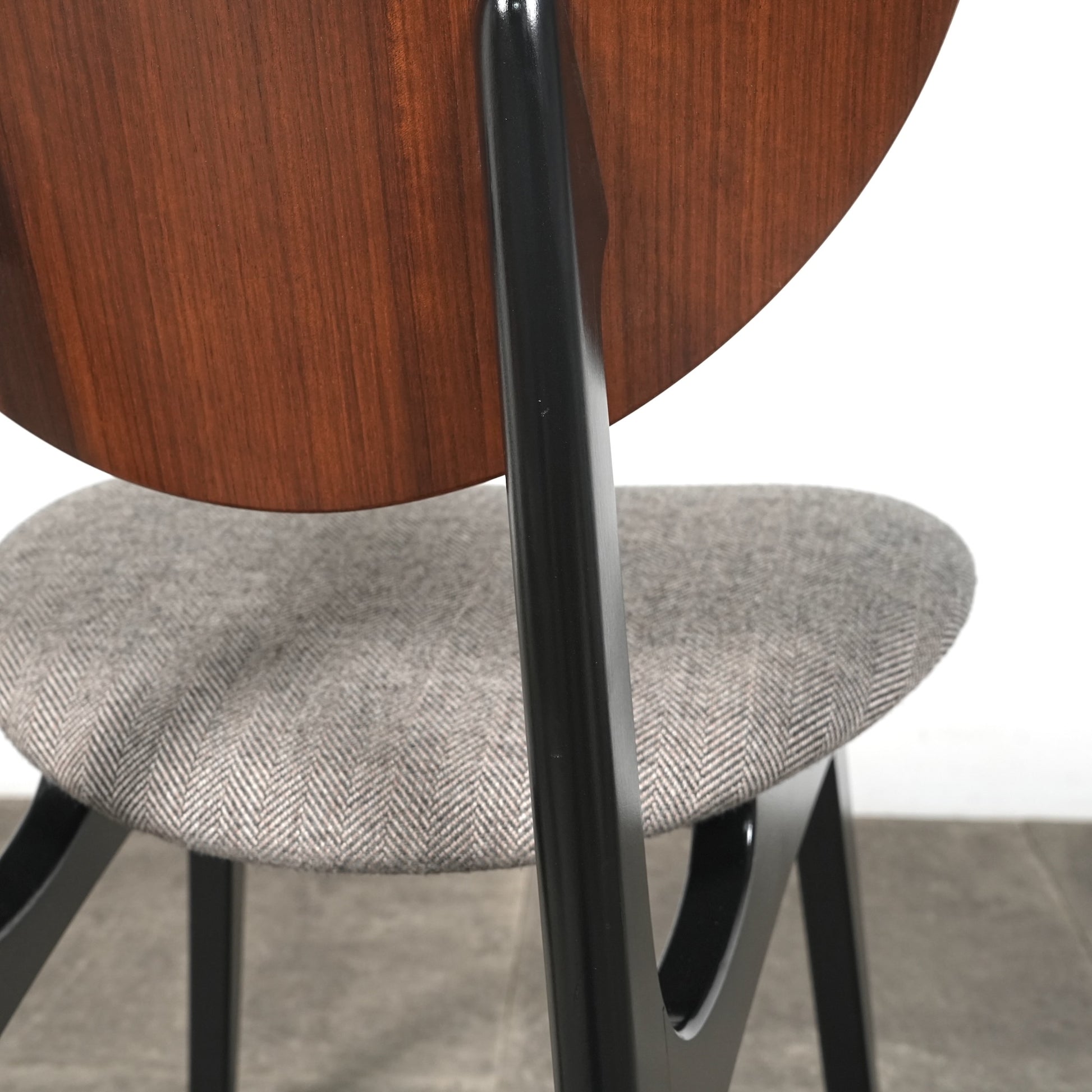 こちらの美しいダイニングチェアもシリーズの特徴であるトラー材×黒脚の絶妙な組み合わせ、そして唯一無二の高いデザイン性が光る逸品です。