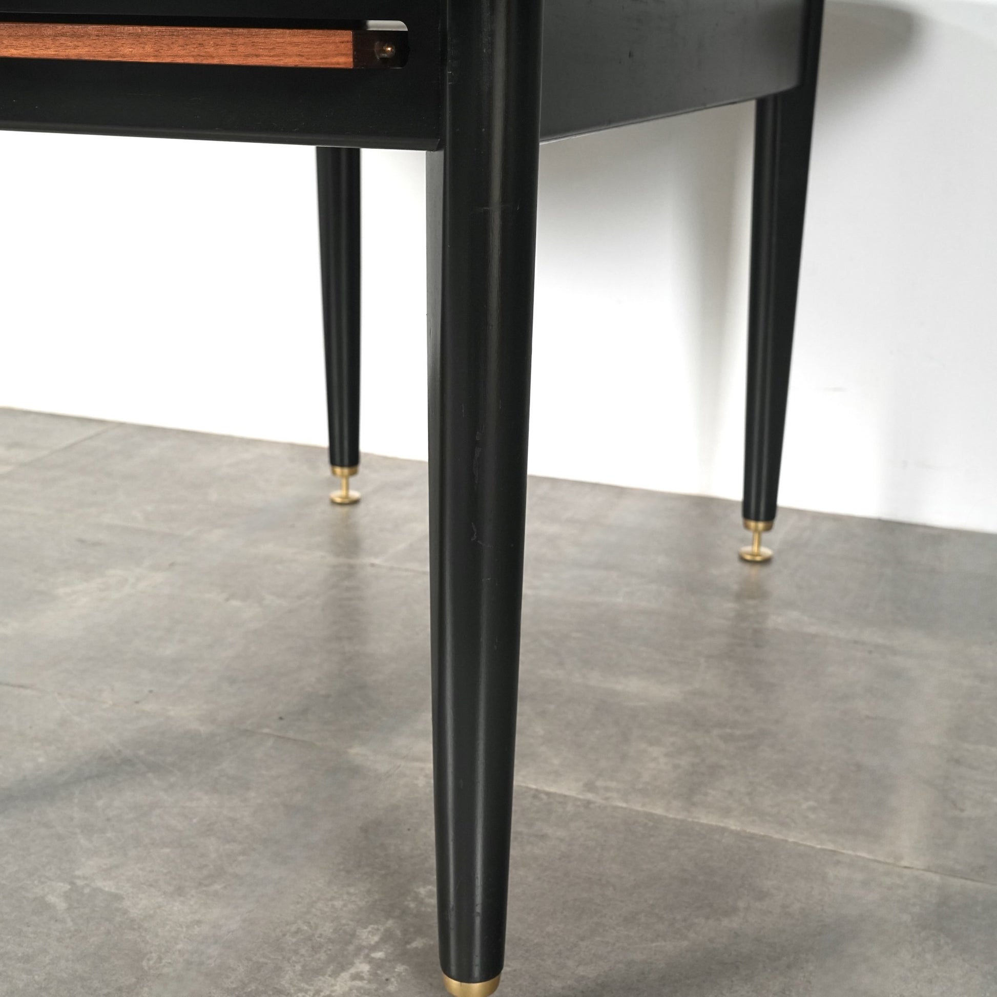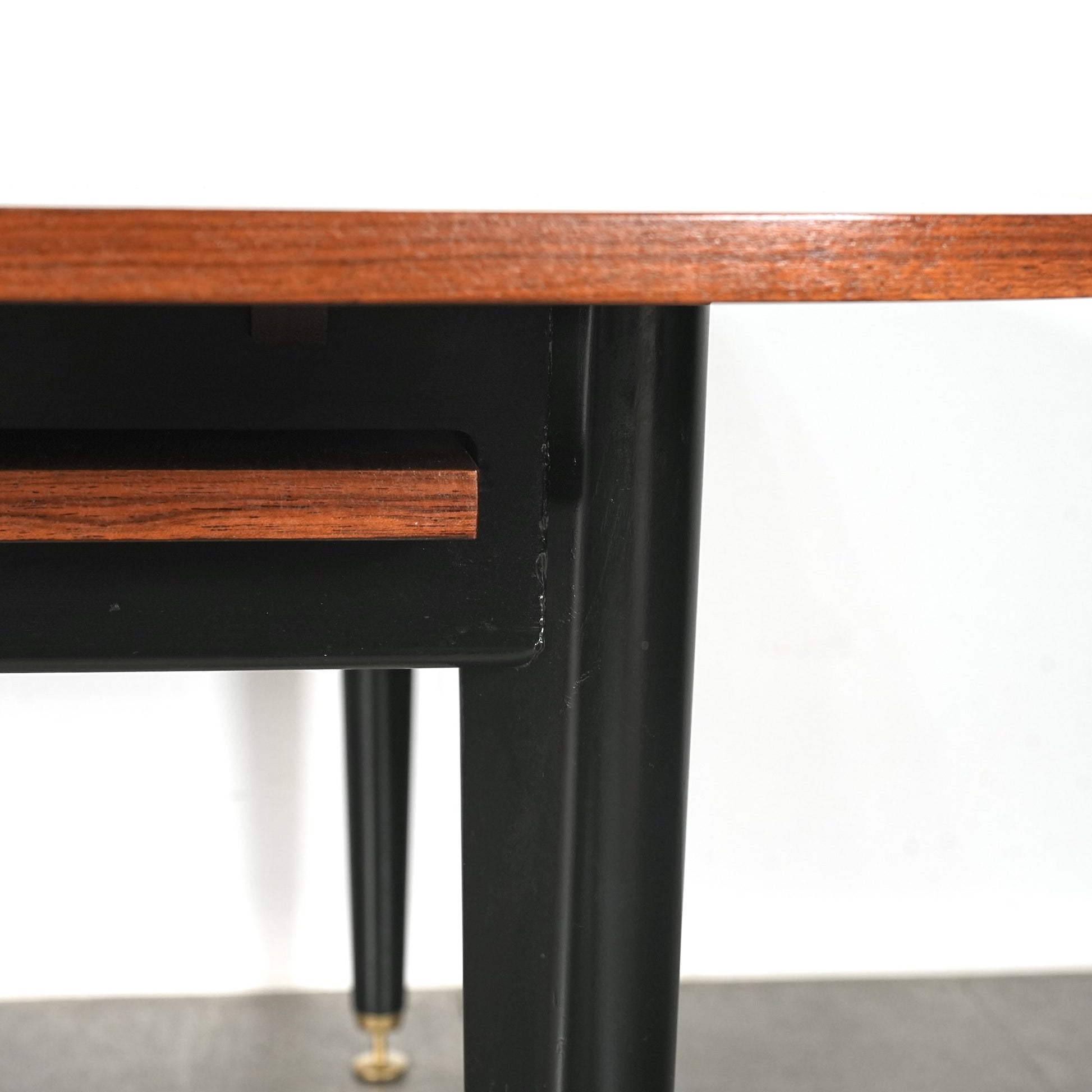 1950年代後半に発表されたTola&Blackシリーズはトラー材特有のユニークな木目と色味に加えて、黒色に塗装された脚部や金色の金具(真鍮メッキ)のバランスが秀逸なアイテムばかり。