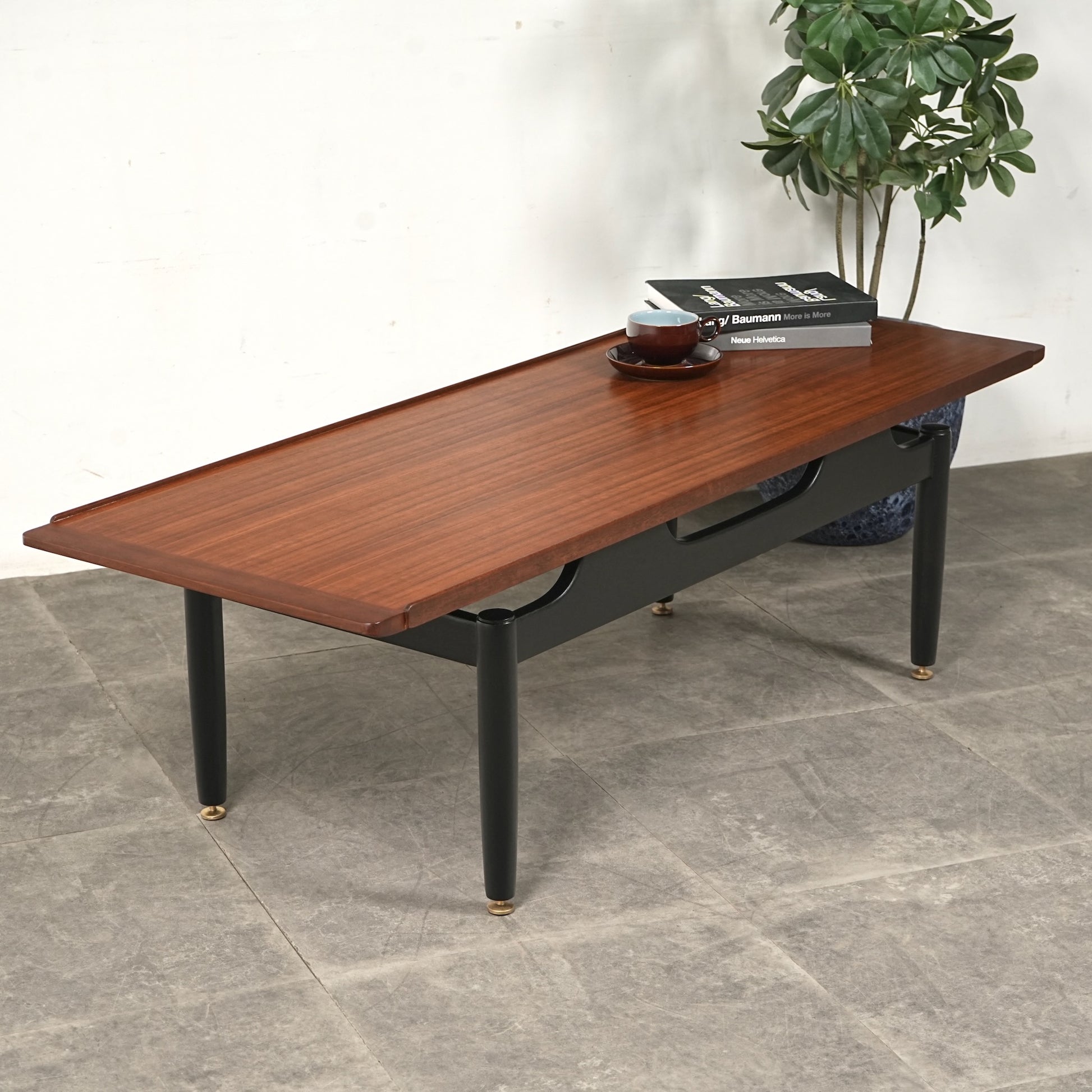 1950年代後半に発表されたTola&Blackシリーズはトラー材特有のユニークな木目と色味に加えて、黒色に塗装された脚部や金色の金具(真鍮メッキ)のバランスが秀逸なアイテムばかり。