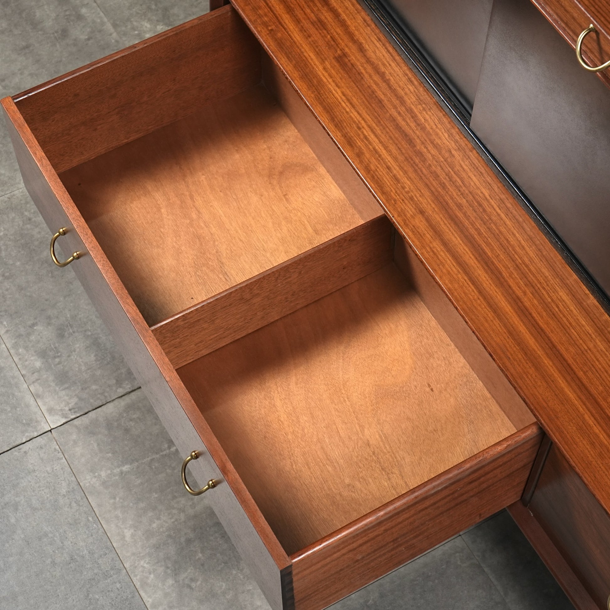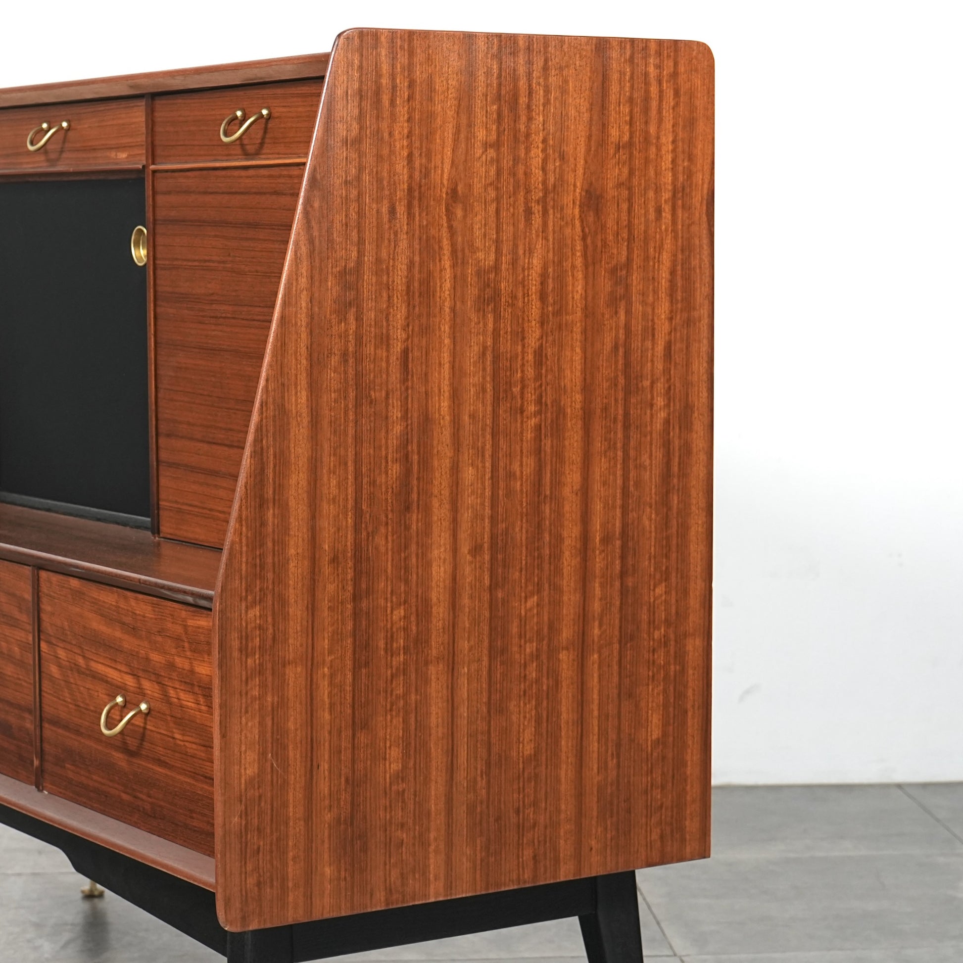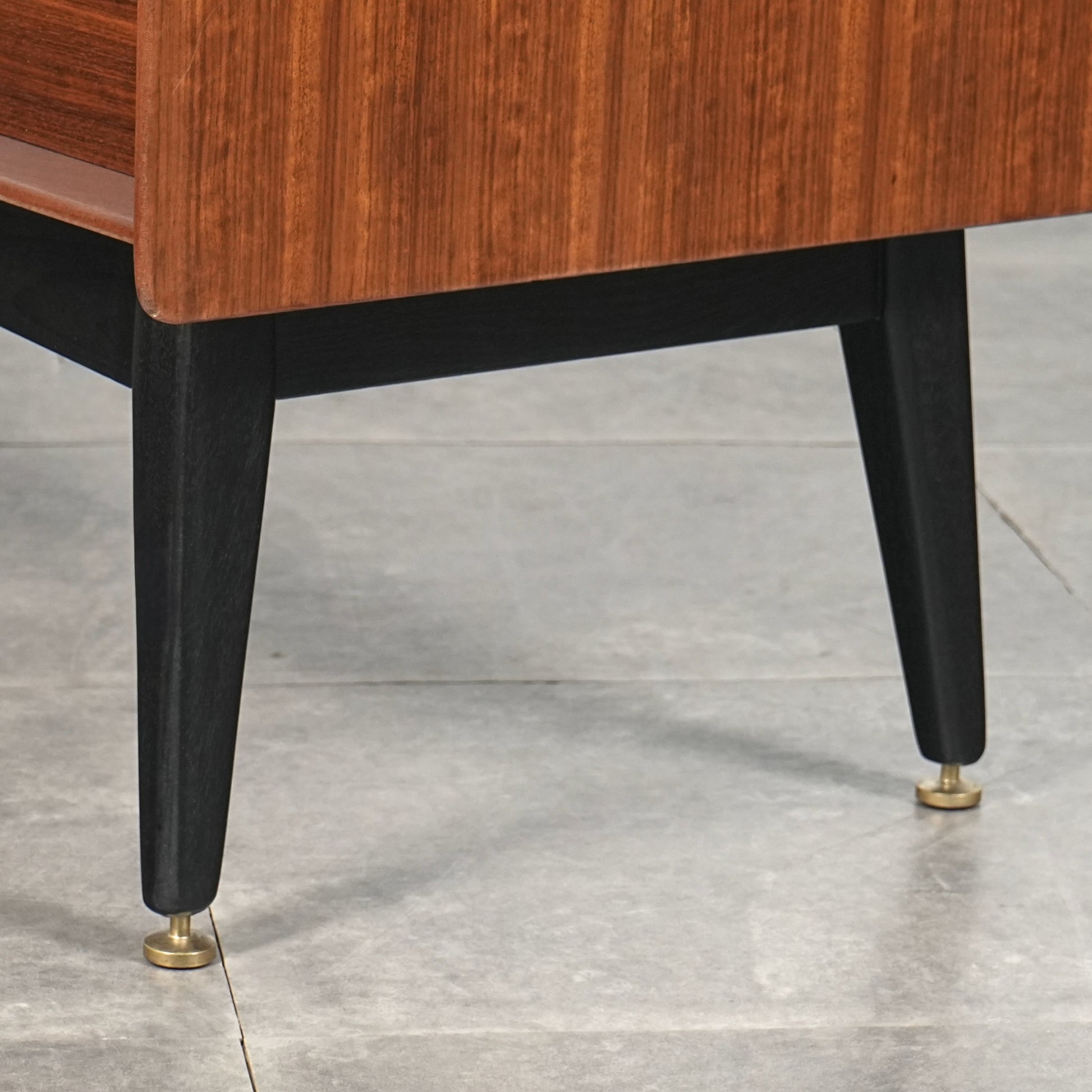 1950年代後半に発表されたTola&Blackシリーズはトラー材特有のユニークな木目と色味に加えて、黒色に塗装された脚部や金色の金具(真鍮メッキ)のバランスが秀逸なアイテムばかり。
