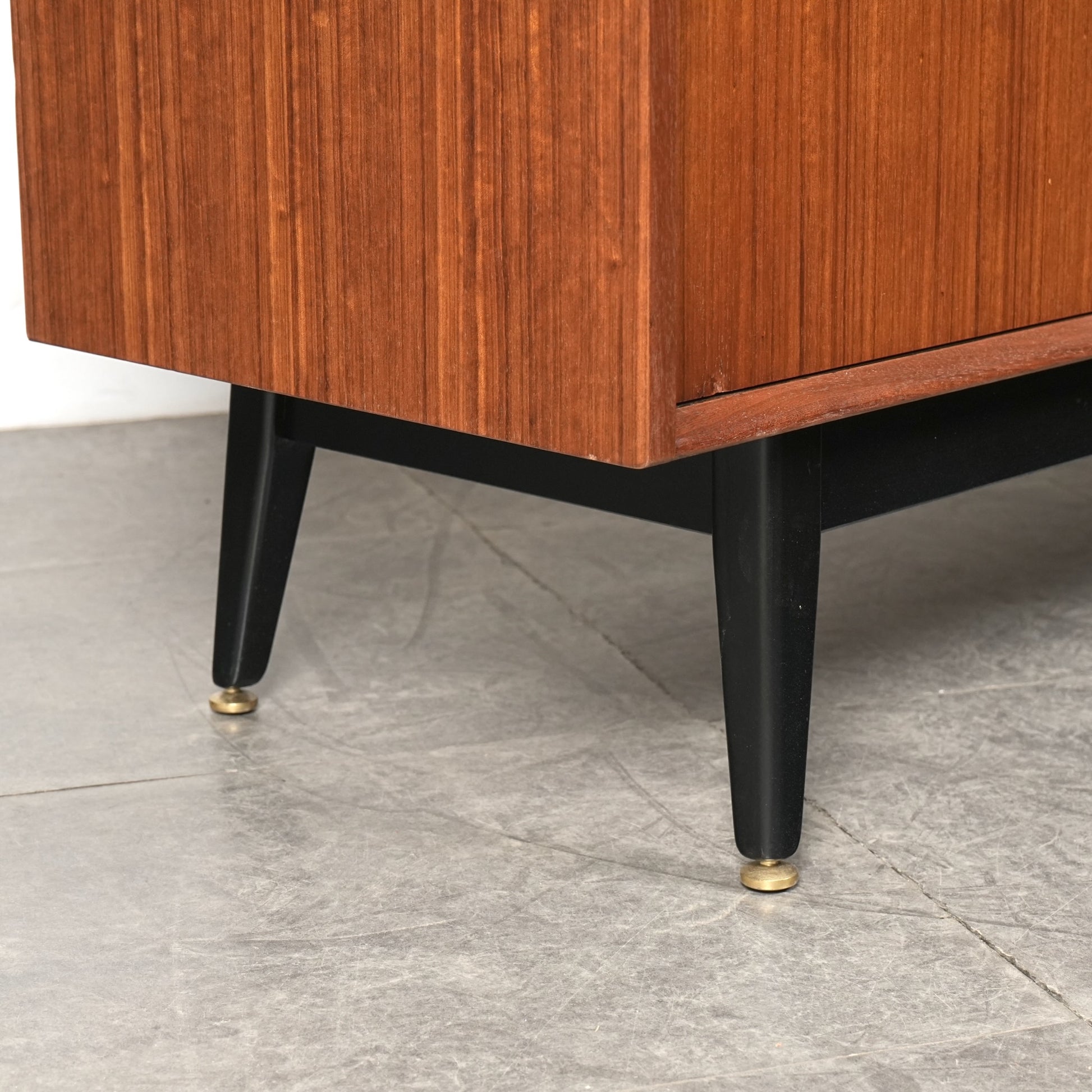 1950年代後半に発表されたTola&Blackシリーズはトラー材特有のユニークな木目と色味に加えて、黒色に塗装された脚部や金色の金具(真鍮メッキ)のバランスが秀逸なアイテムばかり。