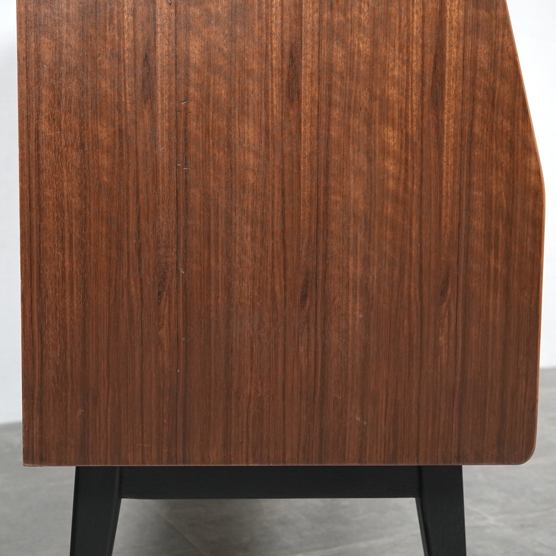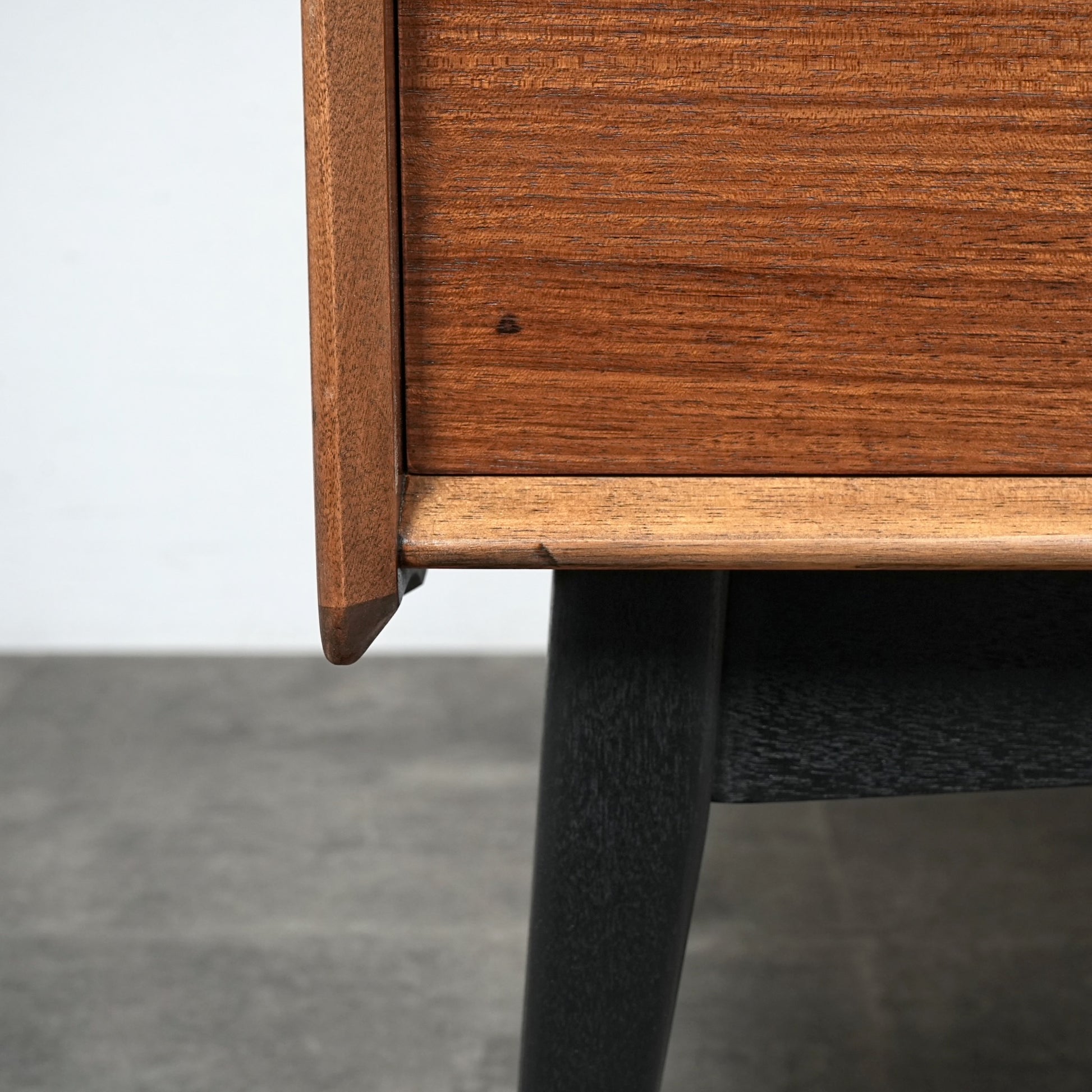1950年代後半に発表されたTola&Blackシリーズはトラー材特有のユニークな木目と色味に加えて、黒色に塗装された脚部や金色の金具(真鍮メッキ)のバランスが秀逸なアイテムばかり。