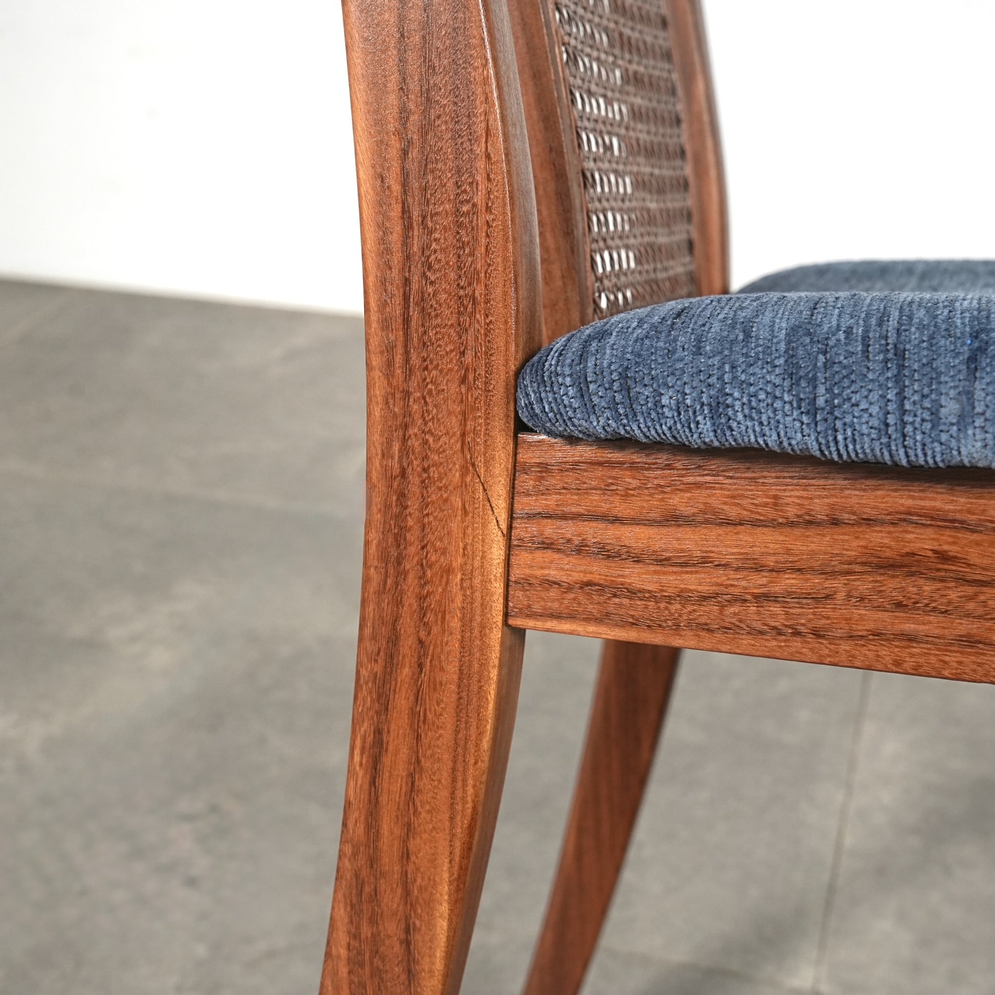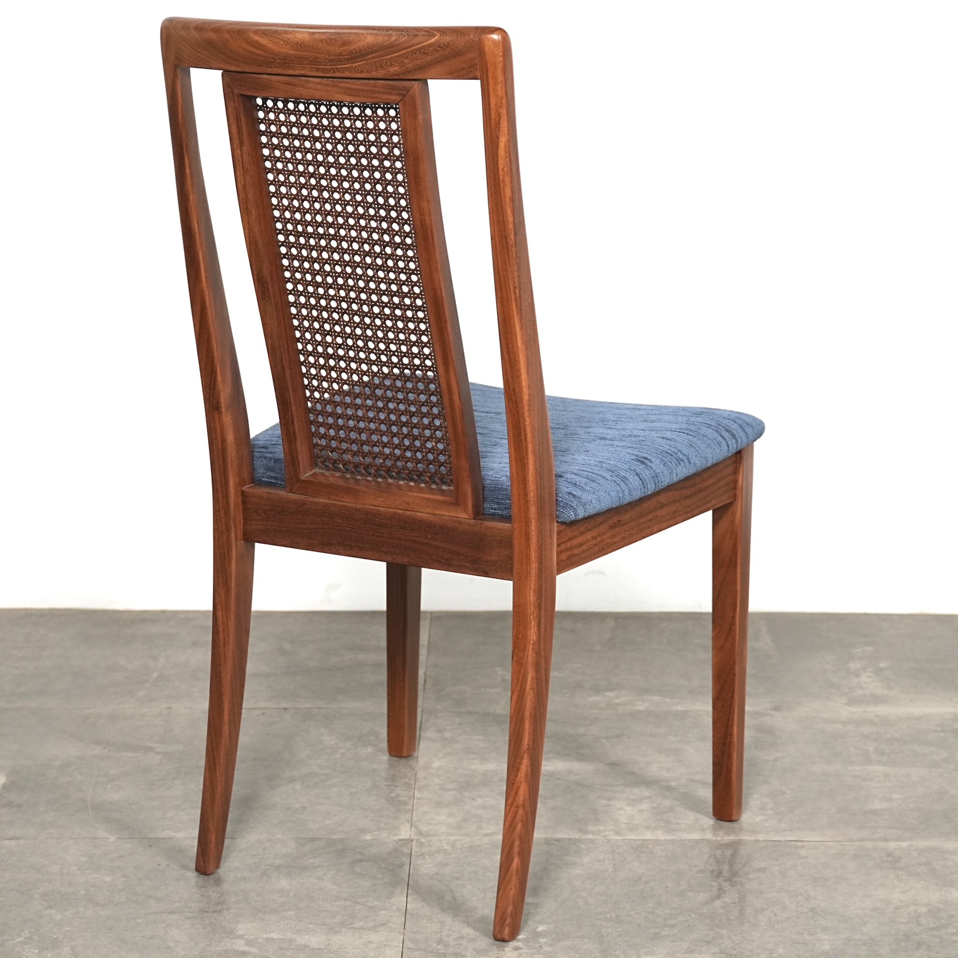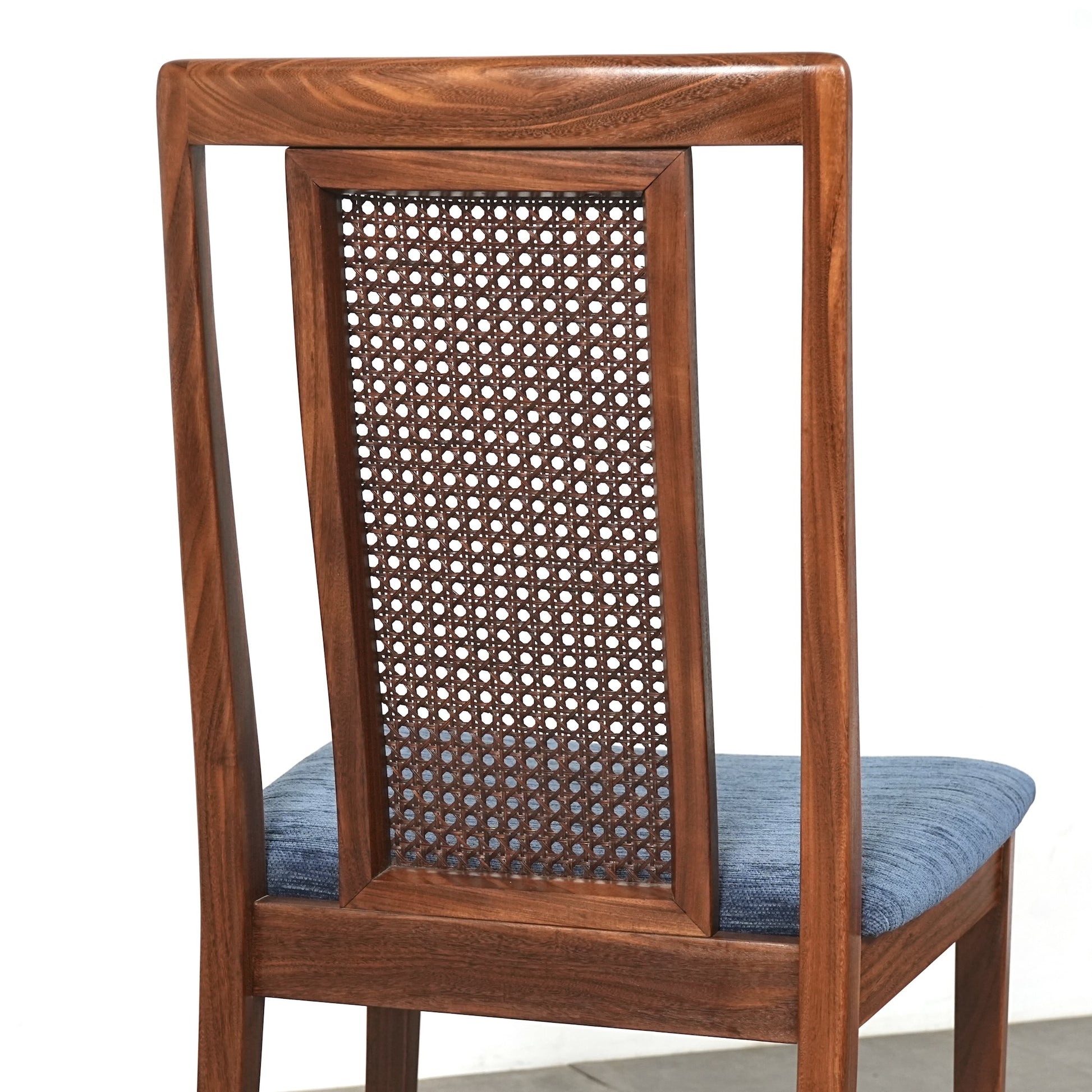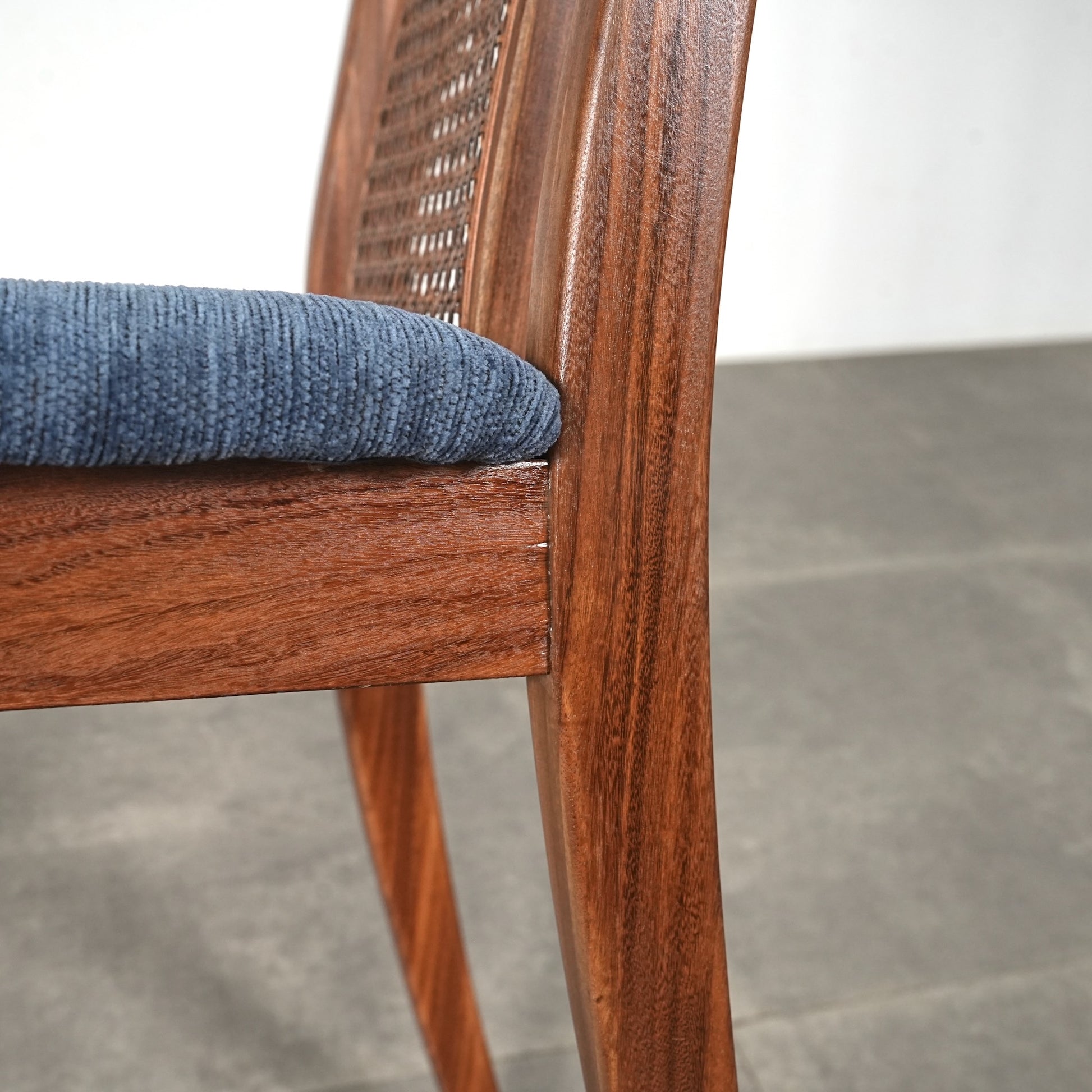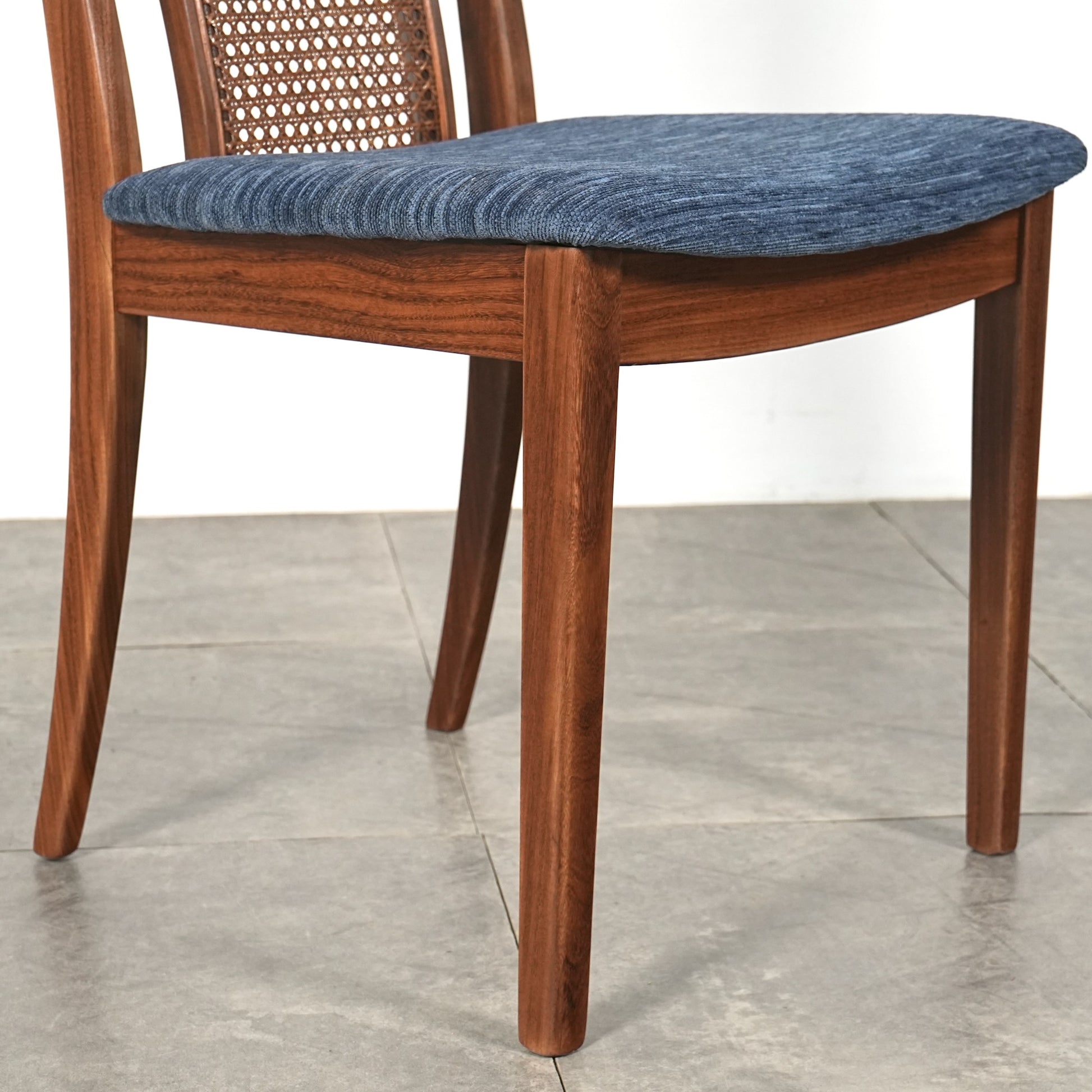 シンプルなデザインだからこそ際立つ上質なチークの質感や、背もたれに編み込まれたラタンの異素材感が良いアクセントとなった秀逸なバランスです。